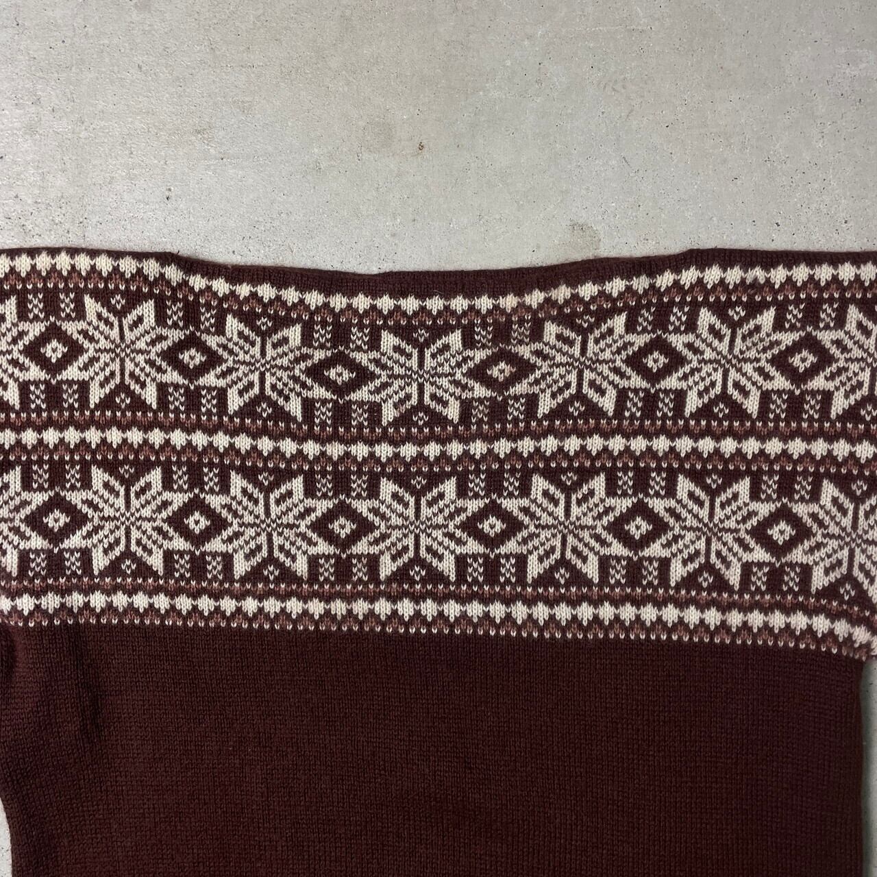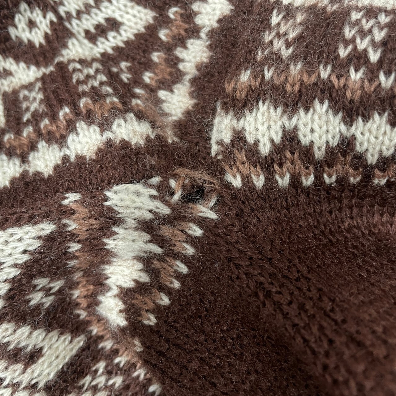 ■UNKNOWN ボートネック フェアアイル柄 ニットセーター レディースS相当 古着 茶色【ニットセーター】/ブラウン 【サイズ】表記 不明 ※計測値をご確認ください。 着丈…58 身幅…47.5 肩幅…50 袖丈…55 【生産国】不明 【素材】不明 【状態】小穴が数か所、御座います。 画像にてご確認ください。 【c251126154】 ※古着は洗濯、検品などのケアを行っております。(新品・デッドストックは洗濯していません。) ※モニターの発色により実物と異なる場合がございます。予めご了承ください。 ※ 海外直輸入USED品になります。