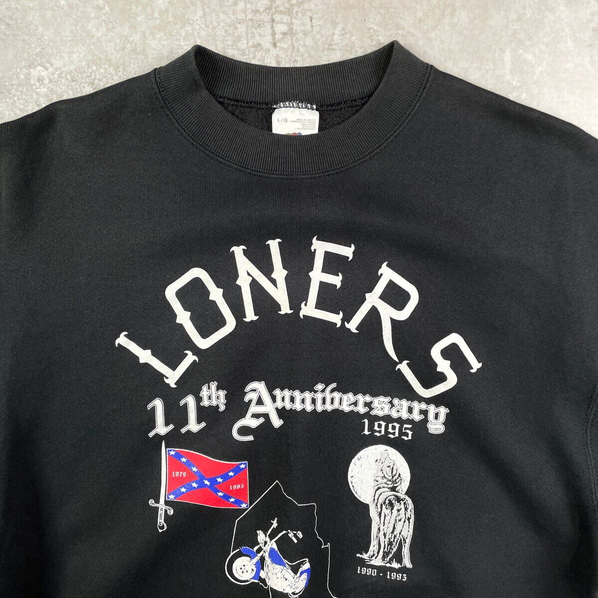 ■90年代 LONERS アニバーサリープリント スウェットシャツ メンズL 古着 90s ヴィンテージ VINTAGE トレーナー オオカミ 黒色【スウェット】/ブラック 【ブランド】FRUIT OF THE LOOM フルーツオブザルーム 【サイズ】表記 L ※計測値をご確認ください。 着丈…63.5 身幅…60 肩幅…60 袖丈…56.5 【生産国】カナダ製 【素材】コットン50% ポリエステル50% 【状態】多少の使用感は御座いますが、目立ったダメージや汚れは御座いません。 画像にてご確認ください。 【c251125113】 ※古着は洗濯、検品などのケアを行っております。(新品・デッドストックは洗濯していません。) ※モニターの発色により実物と異なる場合がございます。予めご了承ください。 ※ 海外直輸入USED品になります。