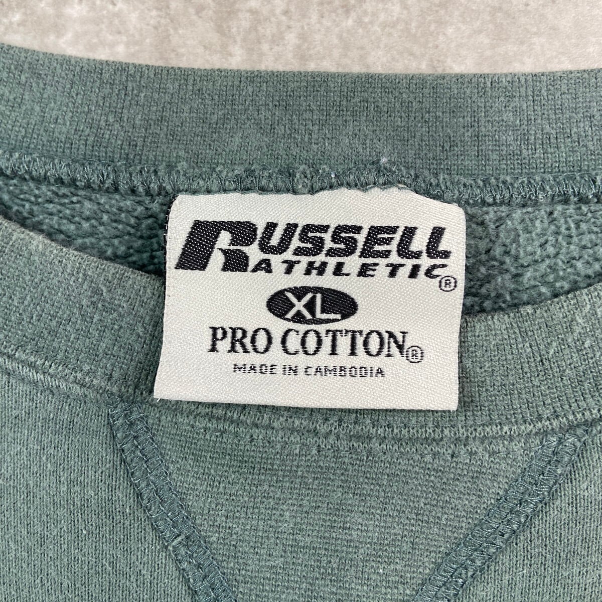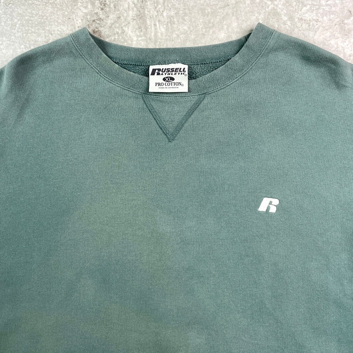 ■RUSSELL PRO COTTON ラッセル プロコットン ワンポイントロゴ刺? メンズ2XL相当 古着 アメカジ トレーナー 裏起毛 ビッグサイズ 大きいサイズ ピスタチオグリーン【スウェット】/グリーン 【ブランド】RUSSELL PRO COTTON 【サイズ】表記 XL(実寸メンズ2XL相当) ※計測値をご確認ください。 着丈…68 身幅...72 肩幅…67.5 袖丈…63.5 【生産国】カンボジア製 【素材】コットン90% ポリエステル10% 【状態】全体的に若干の色褪せがあります。 フロント腹部に薄汚れがございます。 画像にてご確認ください。 【c251120114】 ※古着は洗濯、検品などのケアを行っております。(新品・デッドストックは洗濯していません。) ※モニターの発色により実物と異なる場合がございます。予めご了承ください。 ※ 海外直輸入USED品になります。