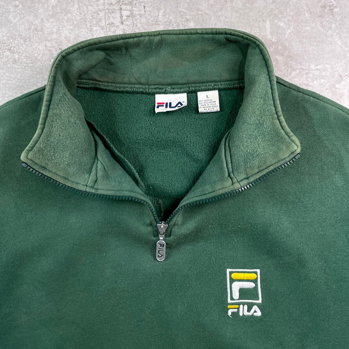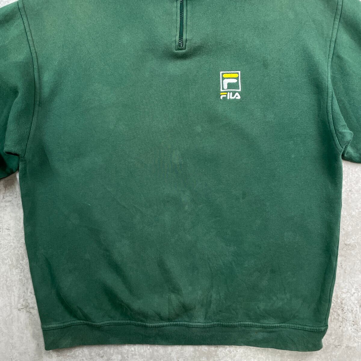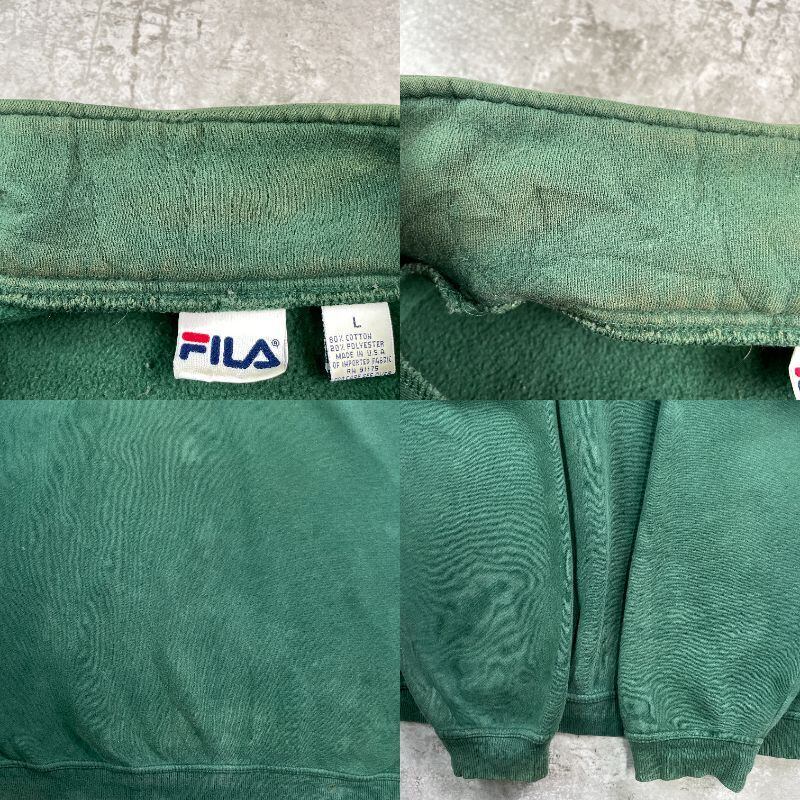 ■90年代 USA製 FILA フィラ ハーフジップ スウェットシャツ メンズL 古着 90s VINTAGE ヴィンテージ ワンポイントロゴ刺? プルオーバー フェードグリーン【スウェット】/グリーン 【ブランド】FILA フィラ 【サイズ】表記 L ※計測値をご確認ください。 着丈…72 身幅…63 肩幅…61 袖丈…58 【生産国】USA製 【素材】コットン80%、ポリエステル20% 【状態】全体的に使用感によるフェードがございます。 所々に若干のシミ汚れがあります。 画像にてご確認ください。 【c251119109】 ※古着は洗濯、検品などのケアを行っております。(新品・デッドストックは洗濯していません。) ※モニターの発色により実物と異なる場合がございます。予めご了承ください。 ※ 海外直輸入USED品になります。