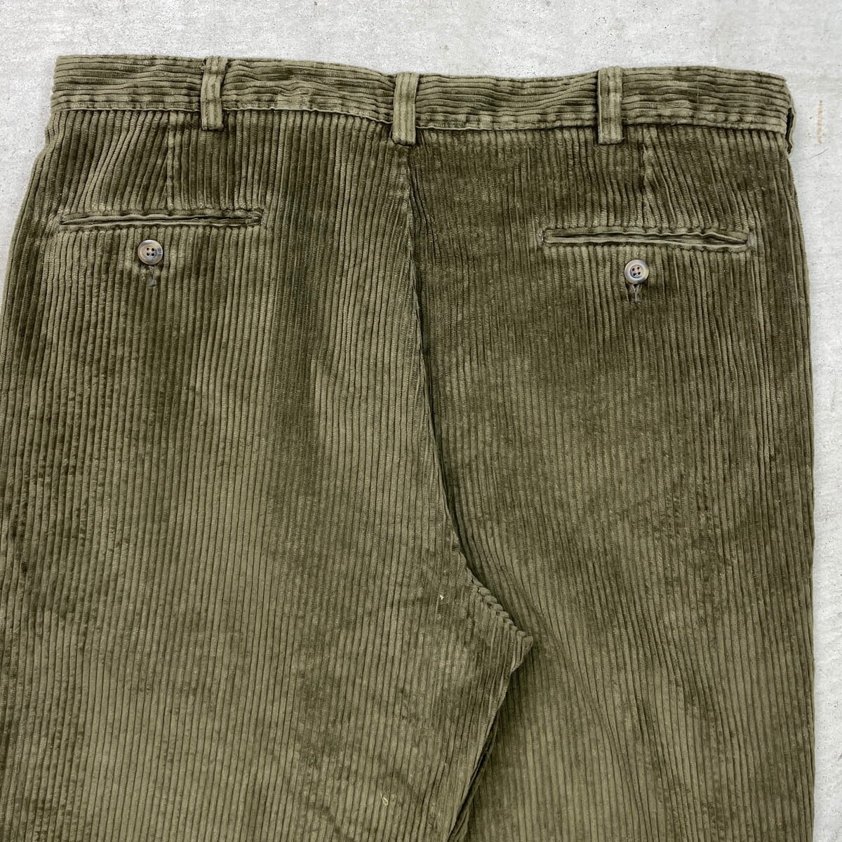 ■Haggar ワイドテーパード コーデュロイパンツ 2タック 太畝 メンズW36 古着 ツータック オリーブグリーン【コーデュロイパンツ】/カーキグリーン 【ブランド】Haggar 【サイズ】表記 W36 L31 ※計測値をご確認ください。 ウエスト(平置き×2)…92 ワタリ幅…37 股上…32 股下…75 裾幅…23 【生産国】メキシコ製 【素材】コットン93%、ポリエステル17% 【状態】多少の使用感ございますが、目立った汚れやダメージなくまだまだ長く愛用していただけます。 画像にてご確認ください。 【c251118110】 ※古着は洗濯、検品などのケアを行っております。(新品・デッドストックは洗濯していません。) ※モニターの発色により実物と異なる場合がございます。予めご了承ください。 ※ 海外直輸入USED品になります。
