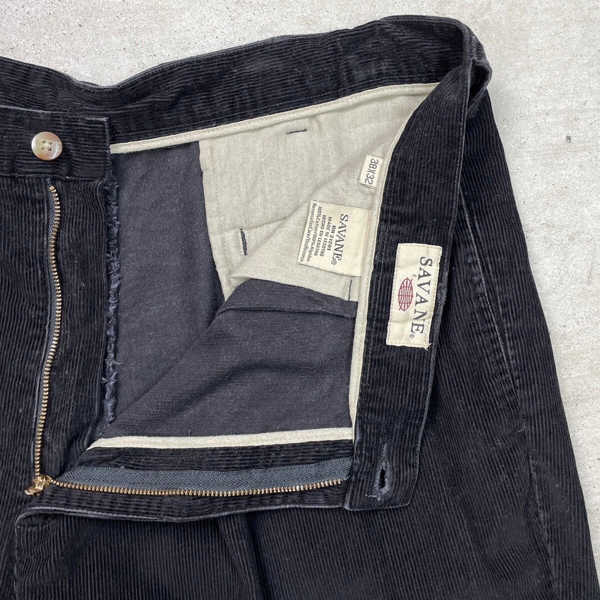 ■SAVANE ワイドテーパード コーデュロイパンツ 2タック 細畝 メンズW38 古着 ツータック ビッグサイズ 大きいサイズ 黒色【コーデュロイパンツ】/ブラック 【ブランド】SAVANE 【サイズ】表記 W38 L32 ※計測値をご確認ください。 ウエスト(平置き×2)…96 ワタリ幅…40.5 股上…33 股下…79.5 裾幅…23 【生産国】レソト製 【素材】コットン100% 【状態】使用感はありますが、目立ったダメージや汚れはございません。 画像にてご確認ください。 【c251118109】 ※古着は洗濯、検品などのケアを行っております。(新品・デッドストックは洗濯していません。) ※モニターの発色により実物と異なる場合がございます。予めご了承ください。 ※ 海外直輸入USED品になります。