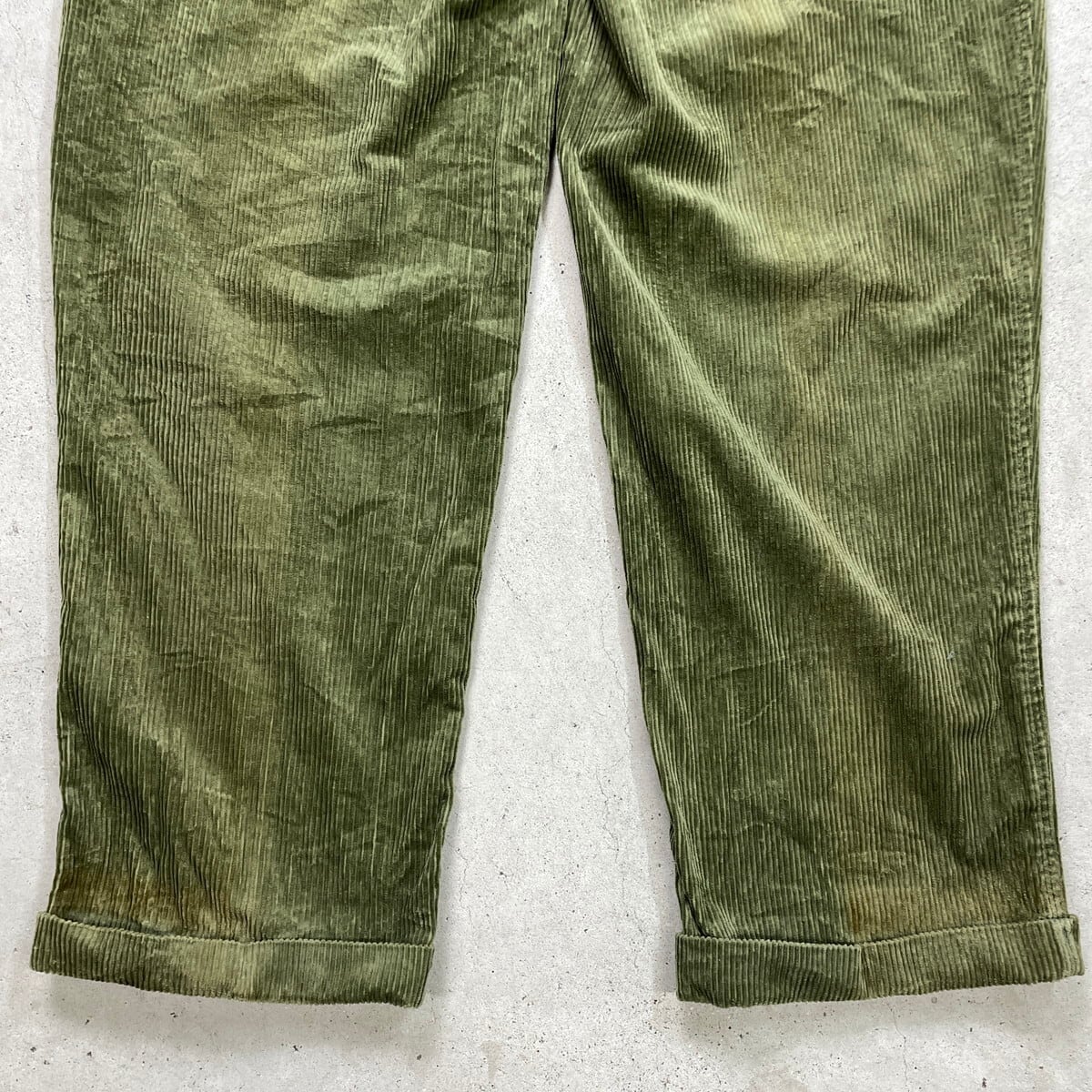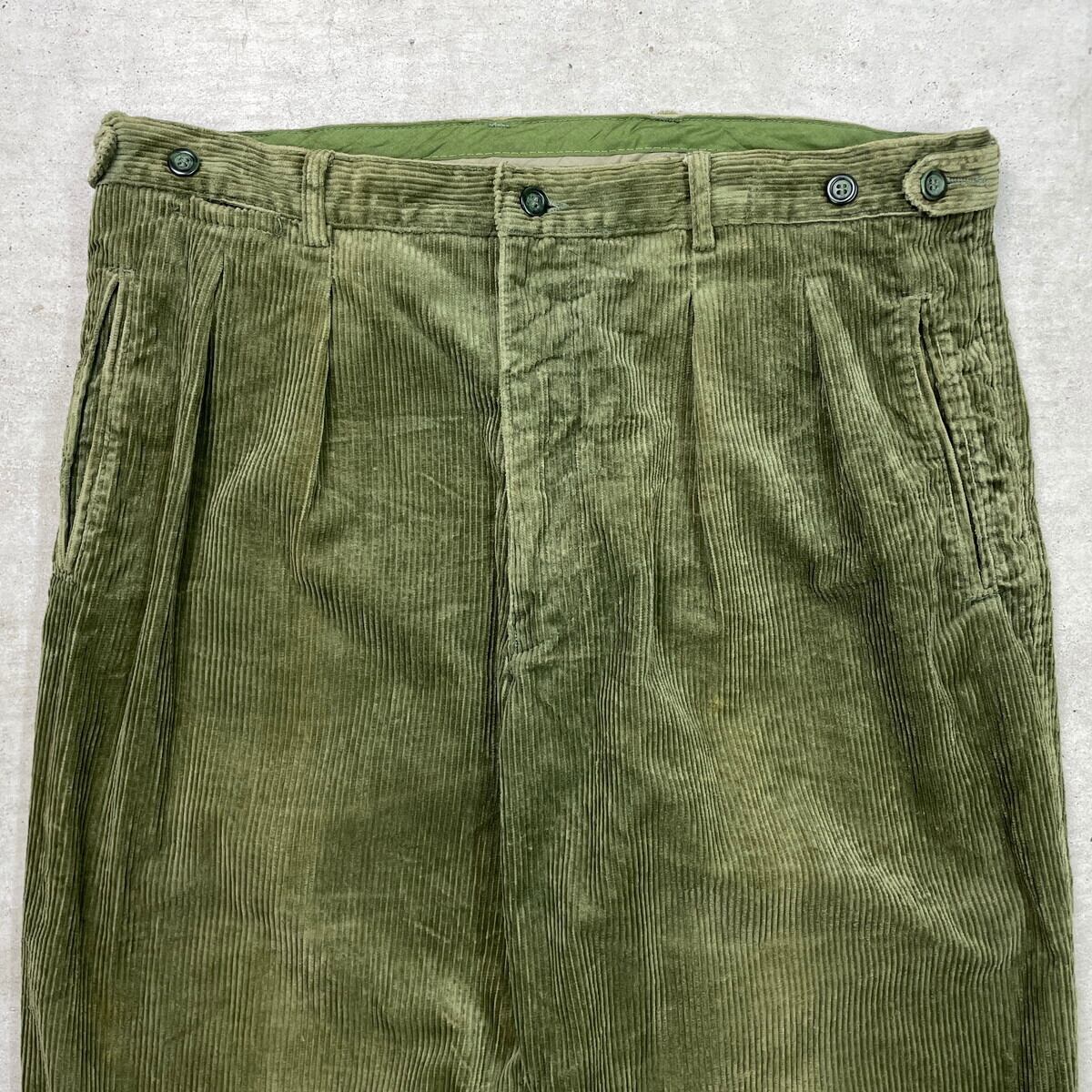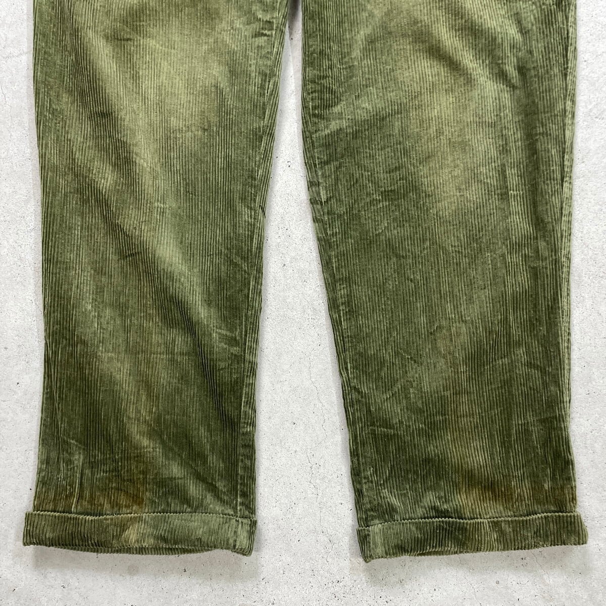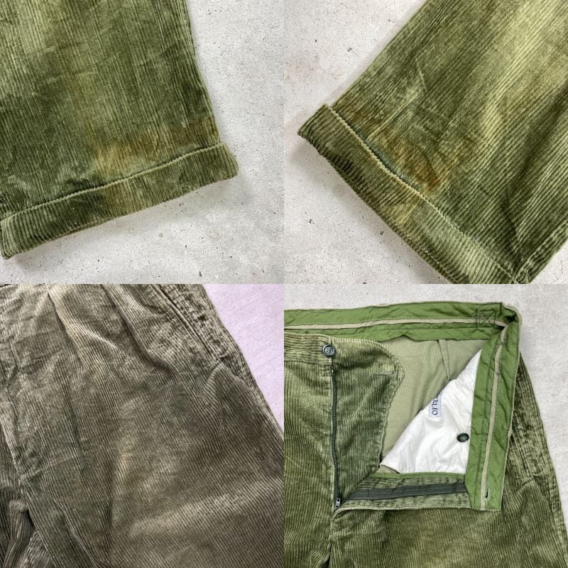 ■CELIO ワイド コーデュロイパンツ 2タック 太畝 メンズW35相当 古着 ツータック リーフグリーン【コーデュロイパンツ】/グリーン 【ブランド】CELIO 【サイズ】表記 48(実寸メンズW35 L33) ※計測値をご確認ください。 ウエスト(平置き×2)…90 ワタリ幅…38 股上…29.5 股下…83 裾幅…22 【生産国】不明 【素材】コットン100% 【状態】使用感による色褪せがあります。 裾に汚れがございます。 その他ダメージはありません。 画像にてご確認ください。 【c251118106】 ※古着は洗濯、検品などのケアを行っております。(新品・デッドストックは洗濯していません。) ※モニターの発色により実物と異なる場合がございます。予めご了承ください。 ※ 海外直輸入USED品になります。