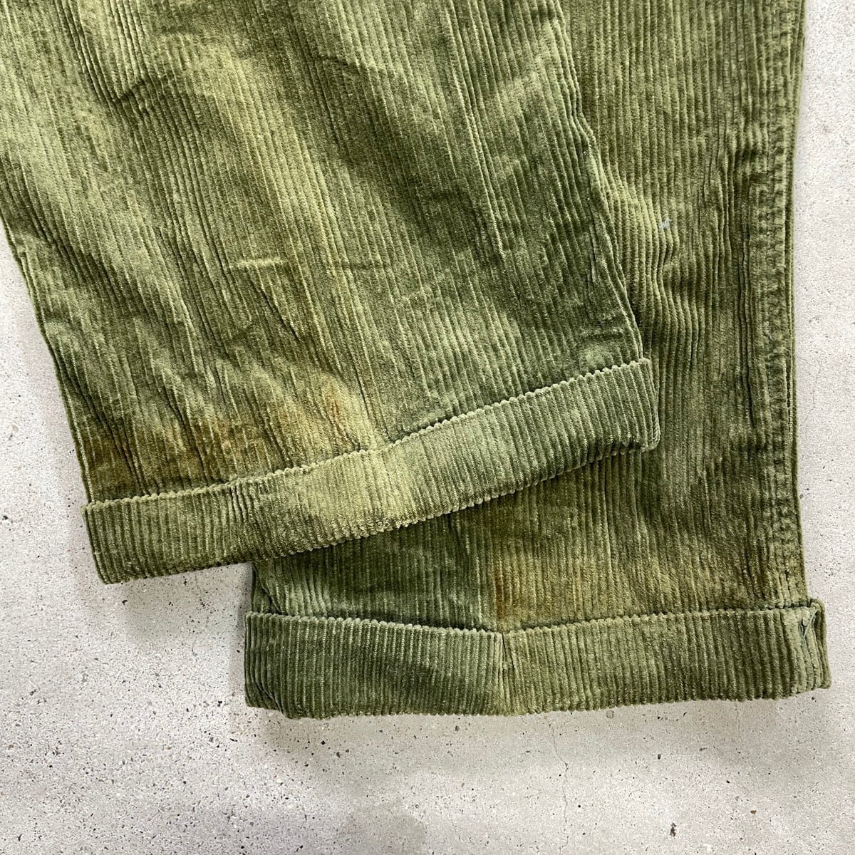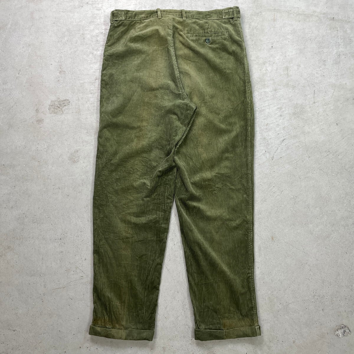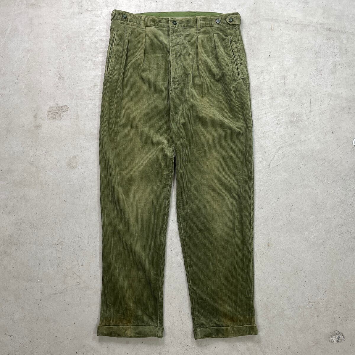 ■CELIO ワイド コーデュロイパンツ 2タック 太畝 メンズW35相当 古着 ツータック リーフグリーン【コーデュロイパンツ】/グリーン 【ブランド】CELIO 【サイズ】表記 48(実寸メンズW35 L33) ※計測値をご確認ください。 ウエスト(平置き×2)…90 ワタリ幅…38 股上…29.5 股下…83 裾幅…22 【生産国】不明 【素材】コットン100% 【状態】使用感による色褪せがあります。 裾に汚れがございます。 その他ダメージはありません。 画像にてご確認ください。 【c251118106】 ※古着は洗濯、検品などのケアを行っております。(新品・デッドストックは洗濯していません。) ※モニターの発色により実物と異なる場合がございます。予めご了承ください。 ※ 海外直輸入USED品になります。