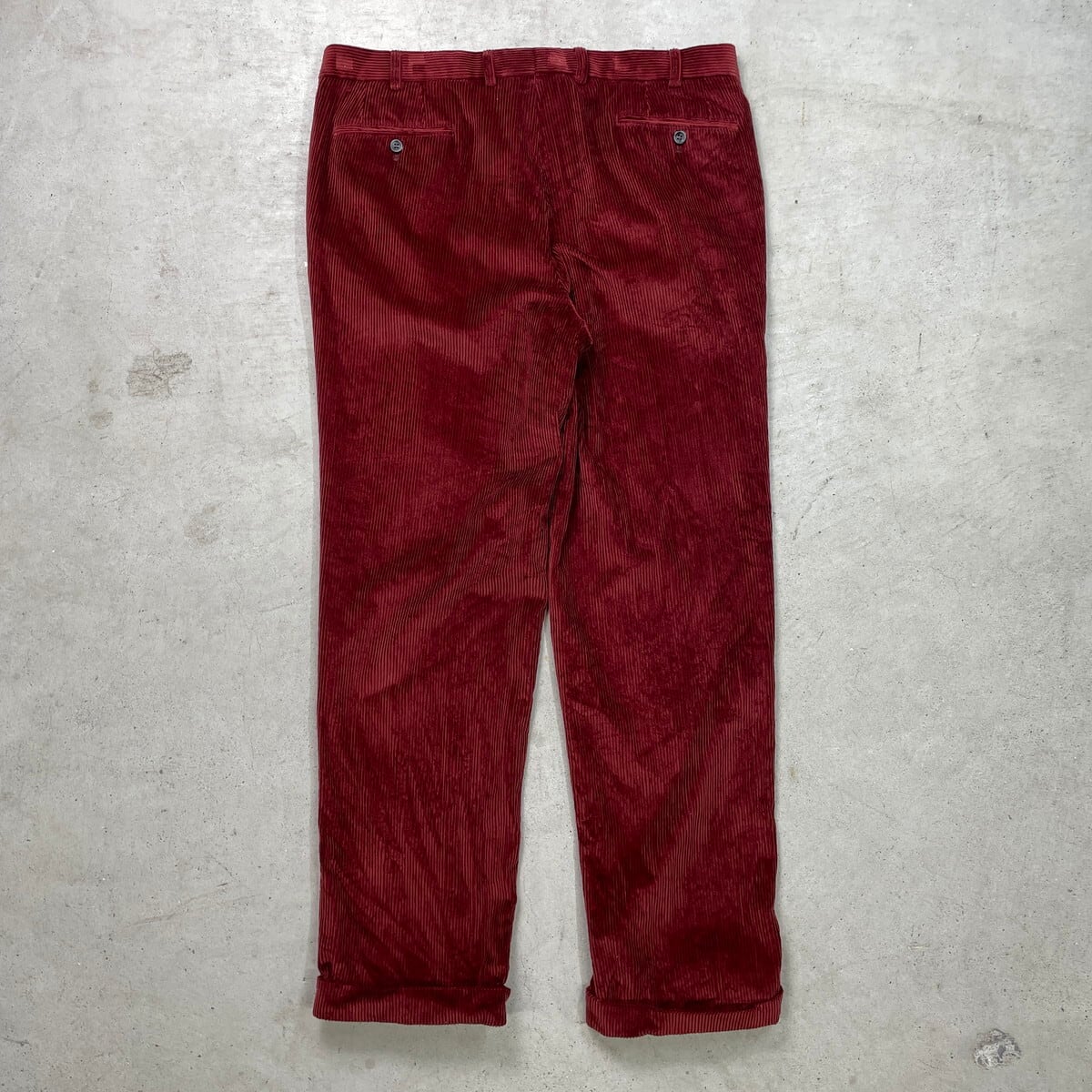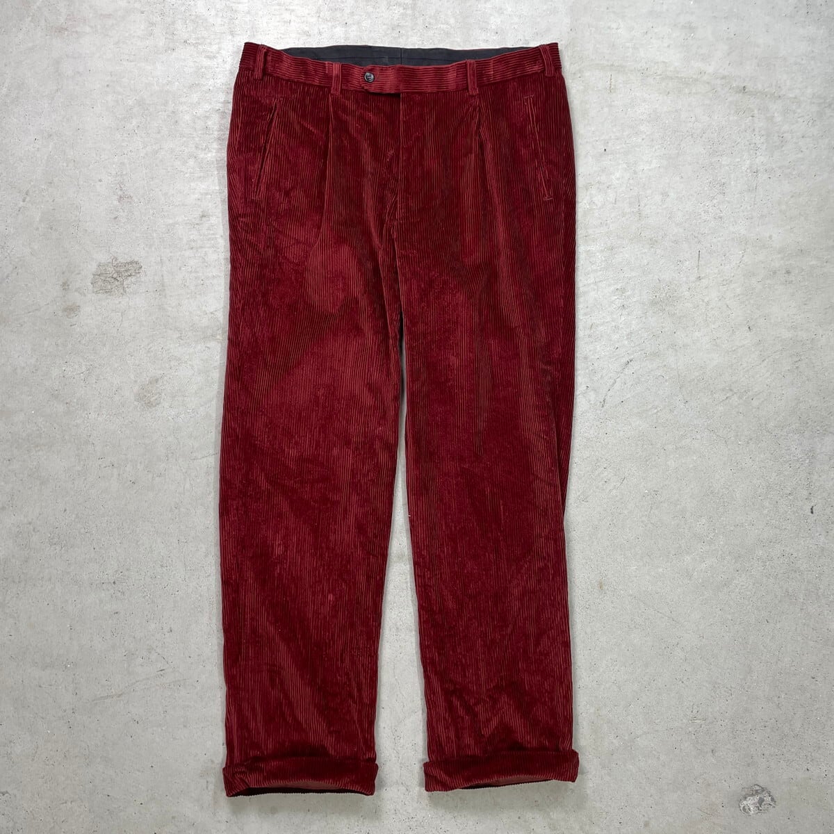 ■KENT ワイド コーデュロイパンツ 1タック 太畝 メンズW38相当 古着 ユーロ ビッグサイズ 大きいサイズ えんじ色【コーデュロイパンツ】/レッド 【ブランド】KENT 【サイズ】表記 54(実寸メンズW38 L32) ※計測値をご確認ください。 ウエスト(平置き×2)…96 ワタリ幅…36 股上…30 股下…80.5 裾幅…21.5 【生産国】不明 【素材】コットン100% 【状態】多少の使用感は御座いますが、光沢感のあるカラーでまだまだ愛用していただけます。 画像にてご確認ください。 【c251118103】 ※古着は洗濯、検品などのケアを行っております。(新品・デッドストックは洗濯していません。) ※モニターの発色により実物と異なる場合がございます。予めご了承ください。 ※ 海外直輸入USED品になります。