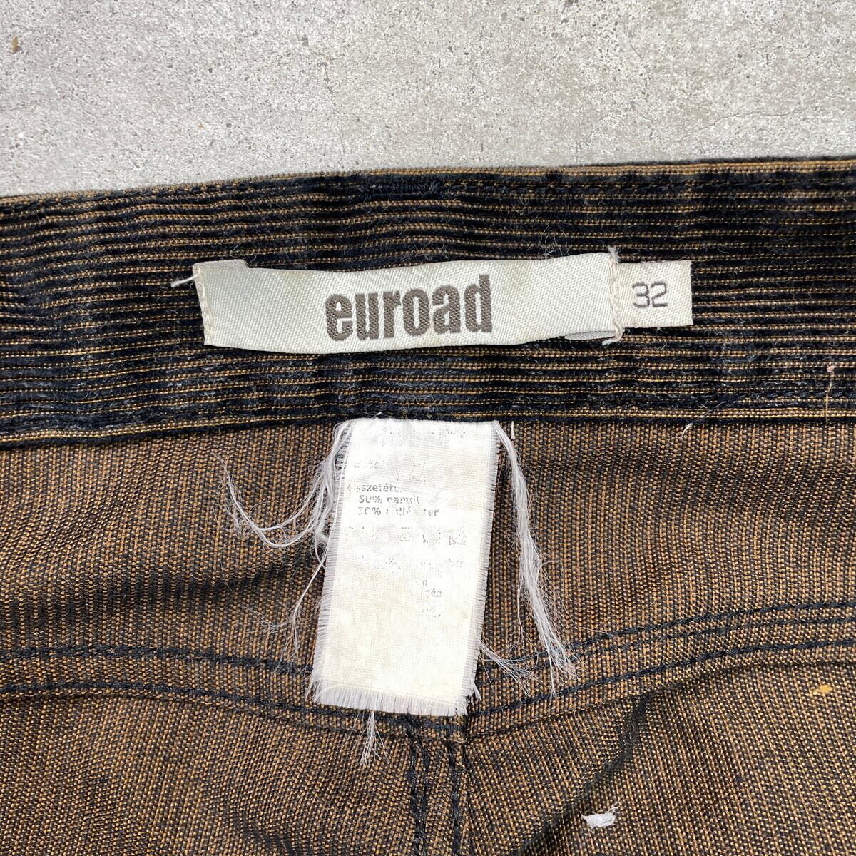 ■euroad フレア コーデュロイパンツ 細畝 メンズW32 古着 ブーツカット 黒色 茶色【コーデュロイパンツ】/ブラウン 【ブランド】euroad 【サイズ】表記 32 裾上げされております。 ※計測値をご確認ください。 ウエスト(平置き×2)…82 ワタリ幅…32 股上…26.5 股下…82 裾幅…27.5 【生産国】不明 【素材】コットン50%、ポリエステル50% 【状態】全体的に使用感はありますが、目立ったダメージや汚れはございません。 画像にてご確認ください。 【c251117101】 ※古着は洗濯、検品などのケアを行っております。(新品・デッドストックは洗濯していません。) ※モニターの発色により実物と異なる場合がございます。予めご了承ください。 ※ 海外直輸入USED品になります。
