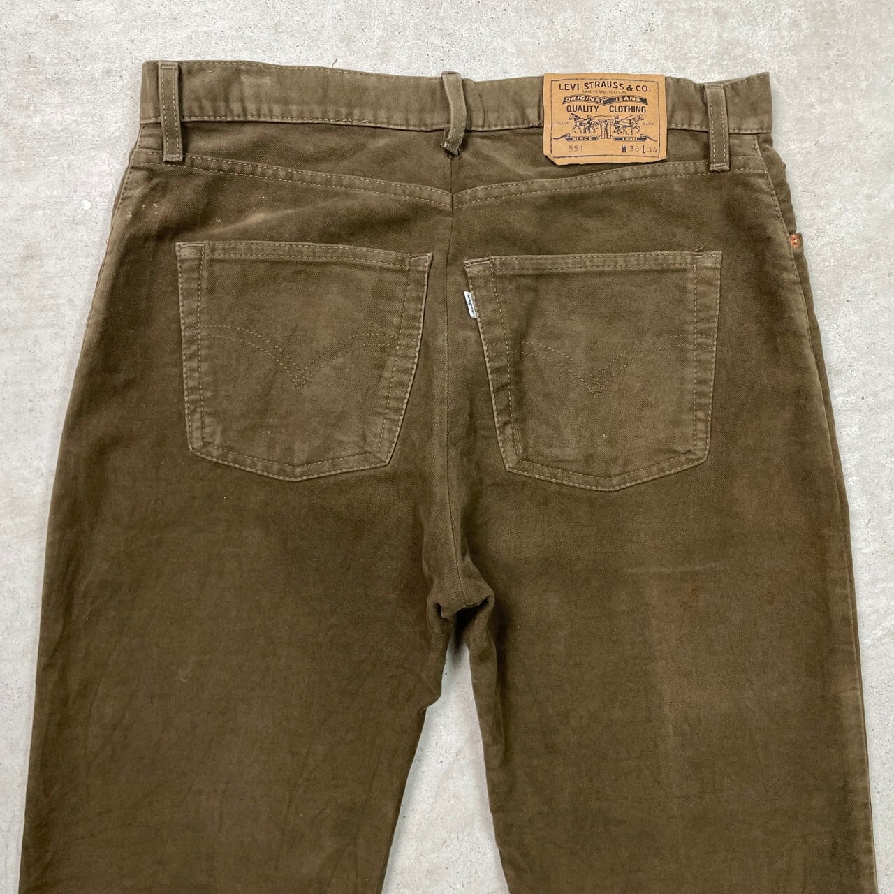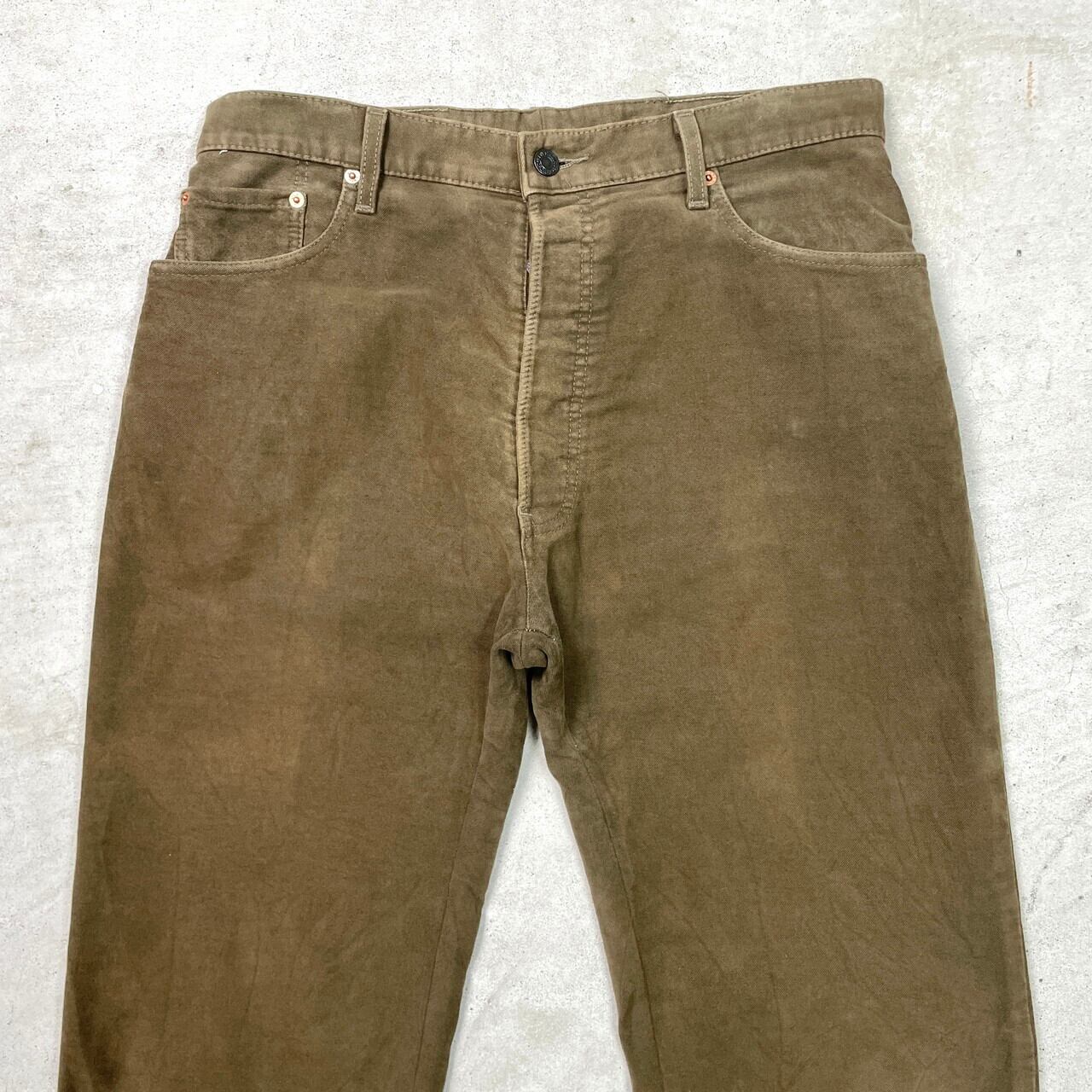 ■90年代 チュニジア製 Levi's ユーロリーバイス 551 4033 モールスキンパンツ メンズW34相当 古着 90s ヴィンテージ VINTAGE 茶色【コーデュロイパンツ】/ブラウン 【ブランド】Levi's リーバイス 【サイズ】表記 W38 L34 (実寸W34相当) 裾上げされております。 ※計測値をご確認ください。 ウエスト(平置き×2)…86 ワタリ幅…30 股上…31 股下…75 裾幅…21 【生産国】チュニジア製 【素材】コットン100% 【状態】右バックに汚れがございます。 画像にてご確認ください。 【c251117001】 ※古着は洗濯、検品などのケアを行っております。(新品・デッドストックは洗濯していません。) ※モニターの発色により実物と異なる場合がございます。予めご了承ください。 ※ 海外直輸入USED品になります。