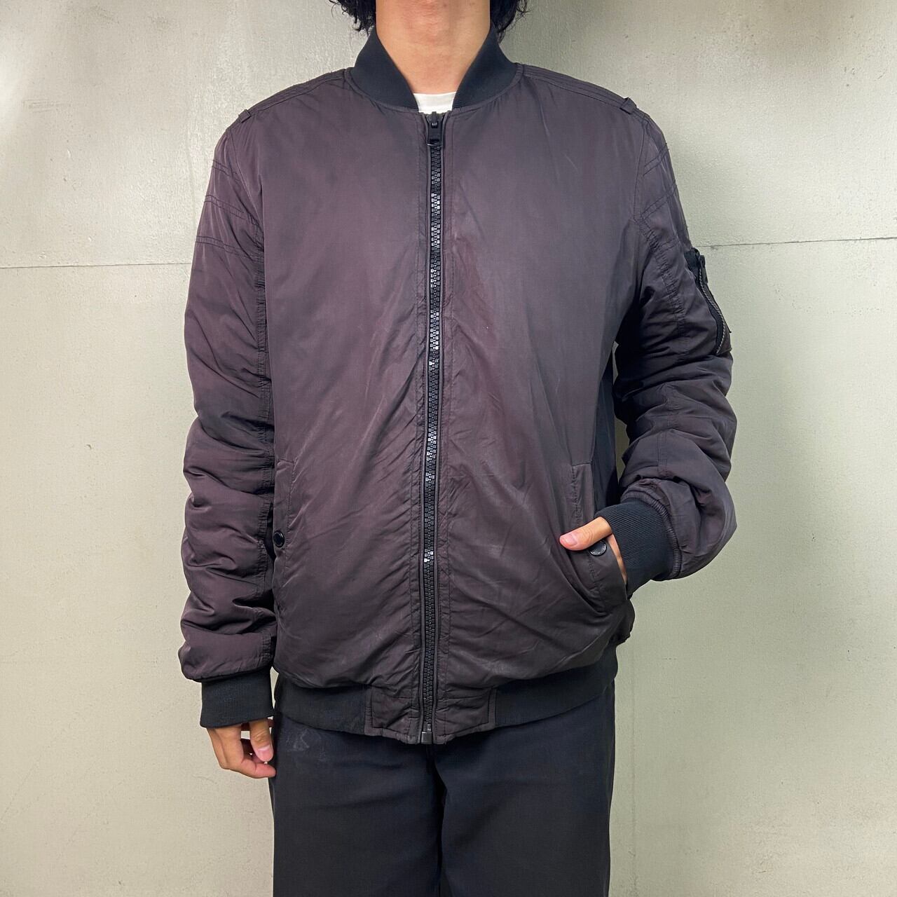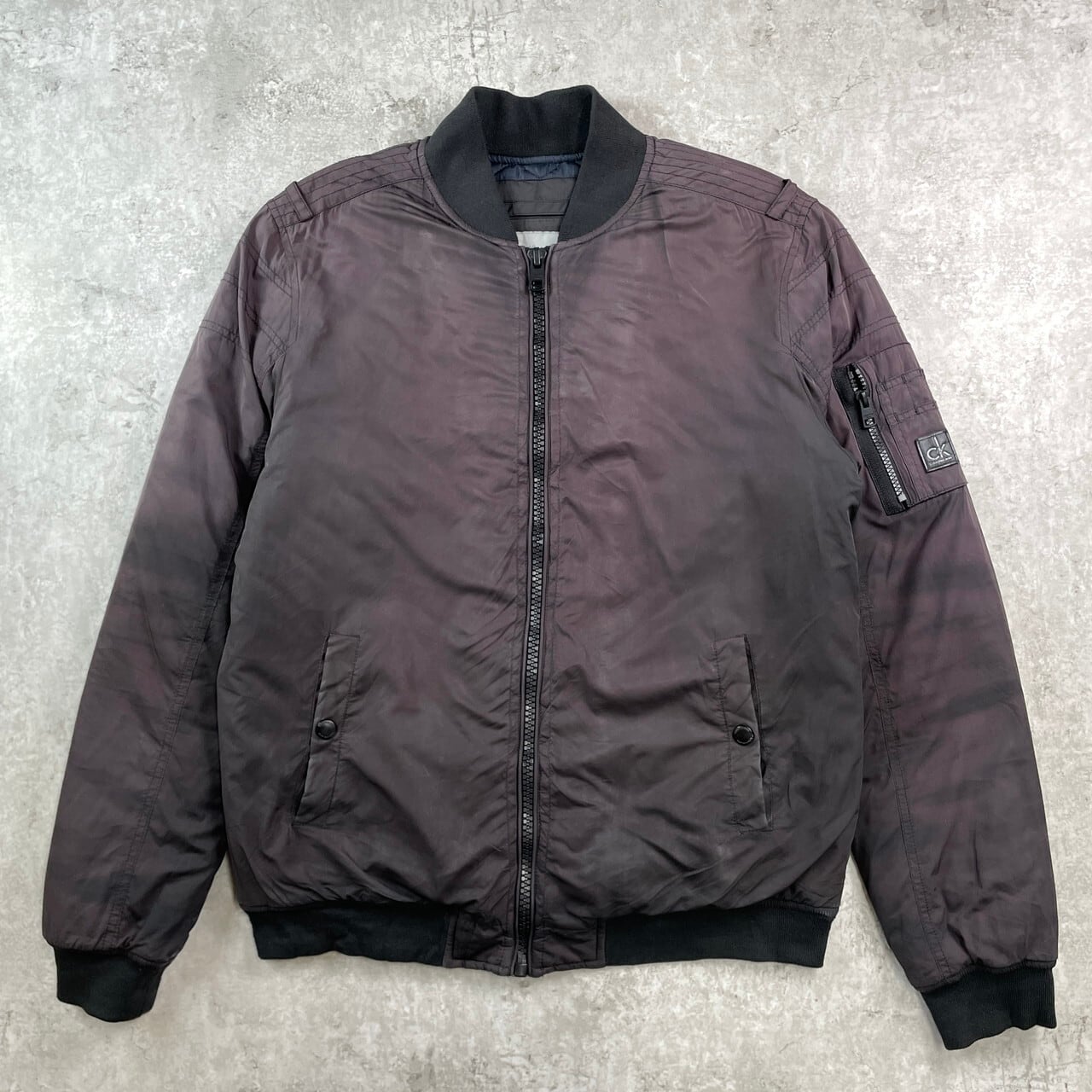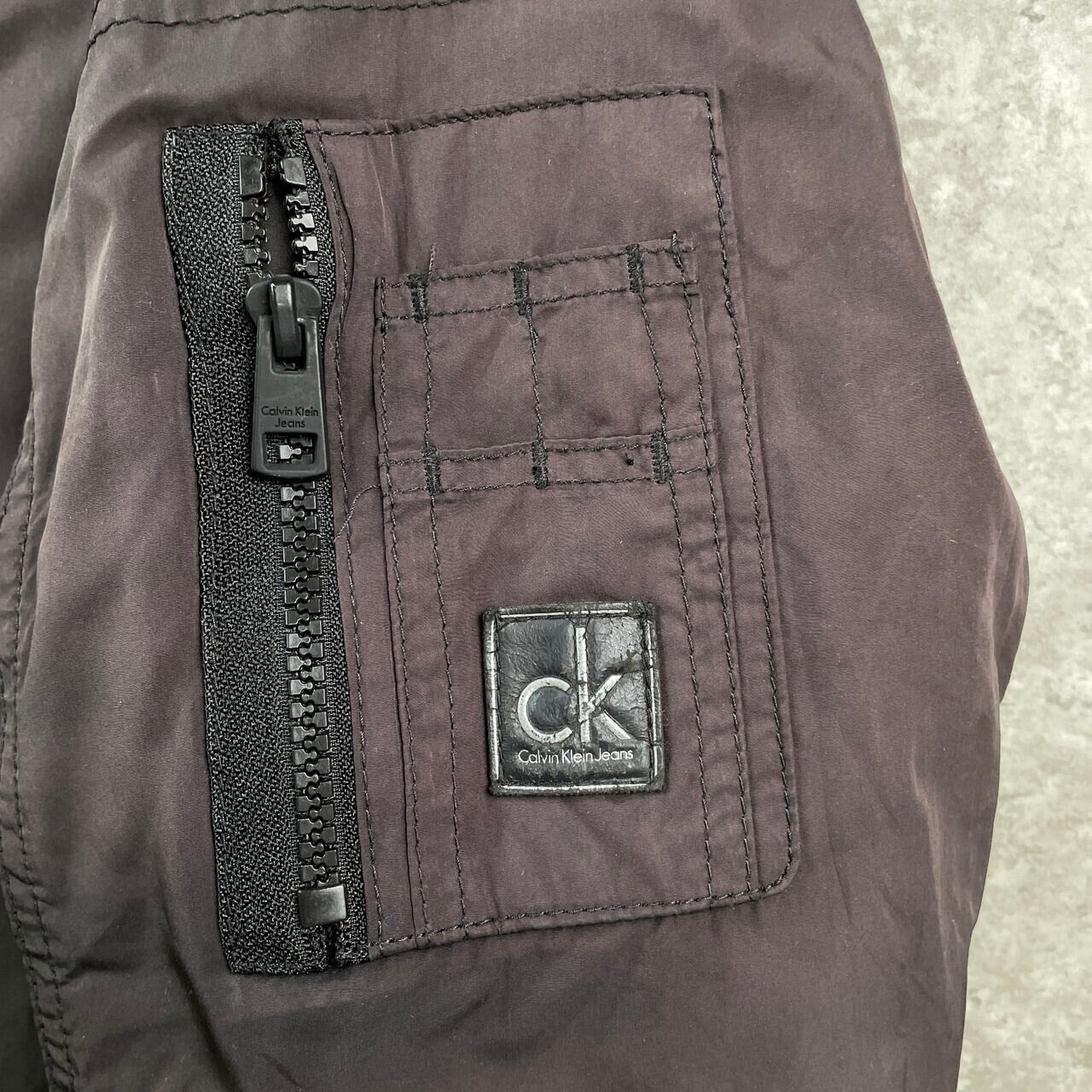 ■CALVIN KLEIN CK カルバンクライン MA-1タイプ フライトジャケット メンズL 古着 キルティングライナー フェードブラック 黒【ジャケット・ブルゾン】/ブラック 【ブランド】CALVIN KLEIN カルバンクライン 【サイズ】表記 L モデル身長172cm ※計測値をご確認ください。 着丈…70 身幅…60 肩幅…48 袖丈…71 【生産国】中国製 【素材】ポリエステル80% ナイロン20% 裏地 ポリエステル100% 中綿 ポリエステル100% 【状態】全体的にフェードしております。 画像にてご確認ください。 【c251115006】 ※古着は洗濯、検品などのケアを行っております。(新品・デッドストックは洗濯していません。) ※モニターの発色により実物と異なる場合がございます。予めご了承ください。 ※ 海外直輸入USED品になります。