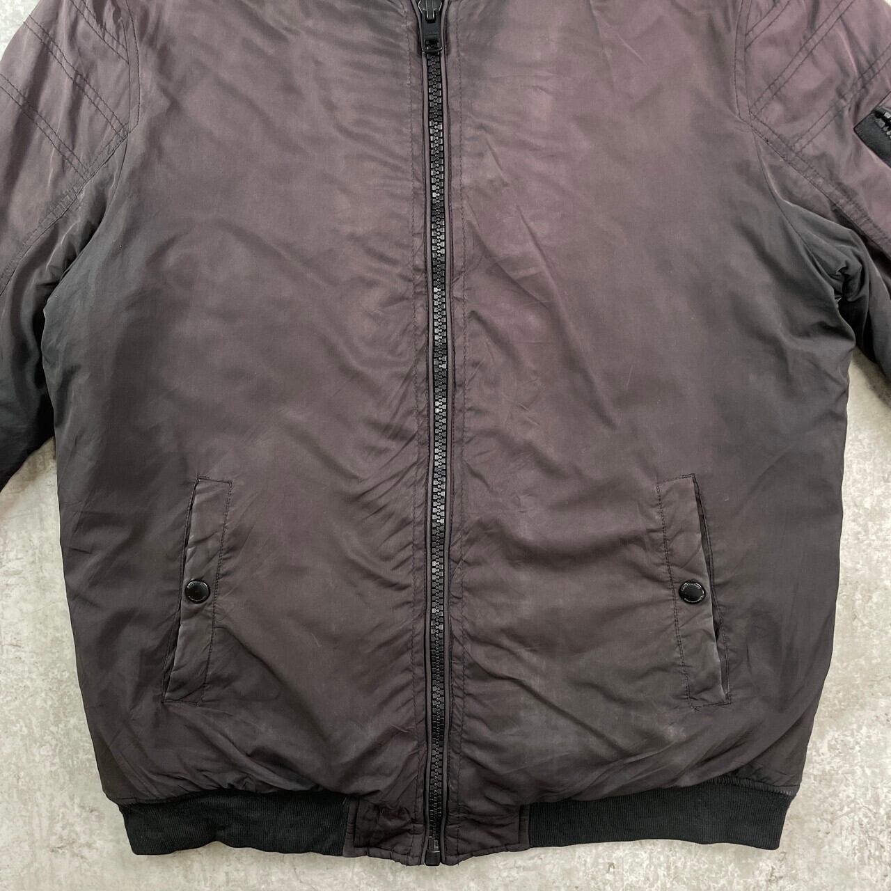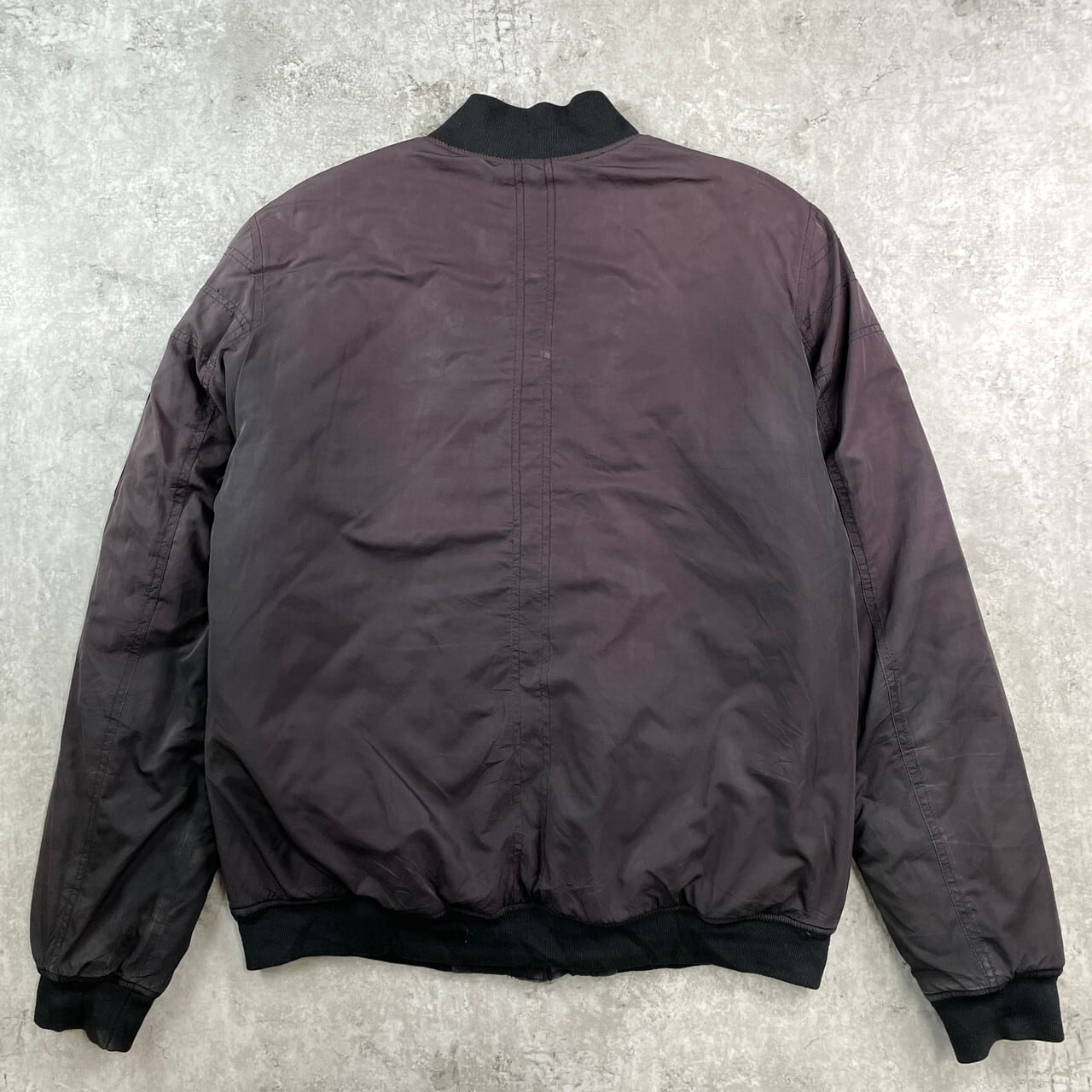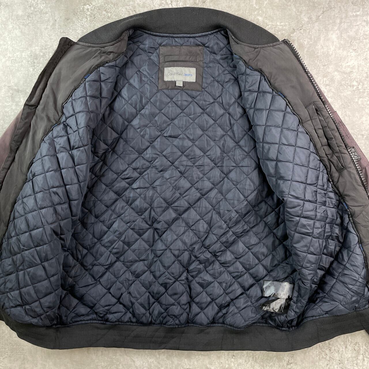 ■CALVIN KLEIN CK カルバンクライン MA-1タイプ フライトジャケット メンズL 古着 キルティングライナー フェードブラック 黒【ジャケット・ブルゾン】/ブラック 【ブランド】CALVIN KLEIN カルバンクライン 【サイズ】表記 L モデル身長172cm ※計測値をご確認ください。 着丈…70 身幅…60 肩幅…48 袖丈…71 【生産国】中国製 【素材】ポリエステル80% ナイロン20% 裏地 ポリエステル100% 中綿 ポリエステル100% 【状態】全体的にフェードしております。 画像にてご確認ください。 【c251115006】 ※古着は洗濯、検品などのケアを行っております。(新品・デッドストックは洗濯していません。) ※モニターの発色により実物と異なる場合がございます。予めご了承ください。 ※ 海外直輸入USED品になります。