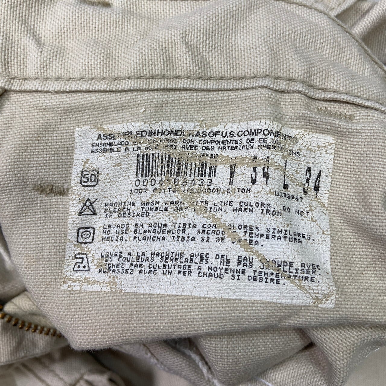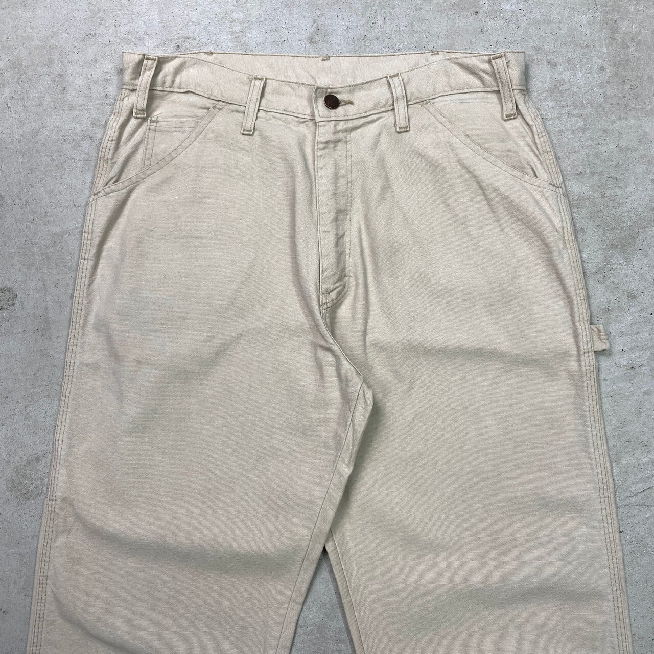 ■90年代 Dickies ディッキーズ ダックパンツ ペインターパンツ メンズW33相当 古着 90s VINTAGE ヴィンテージ アメカジ TALONジッパー 生成【ワークパンツ】/ホワイト 【ブランド】Dickies ディッキーズ 【サイズ】表記 W34×L34(実寸W33相当) ※計測値をご確認ください。 ウエスト(平置き×2)…84 ワタリ幅…33 股上…31 股下…72 裾丈…24 【生産国】ホンジュラス製 【素材】コットン100% 【状態】裾上げされております。 バックに汚れがございます。 画像にてご確認ください。 【c251110004】 ※古着は洗濯、検品などのケアを行っております。(新品・デッドストックは洗濯していません。) ※モニターの発色により実物と異なる場合がございます。予めご了承ください。 ※ 海外直輸入USED品になります。