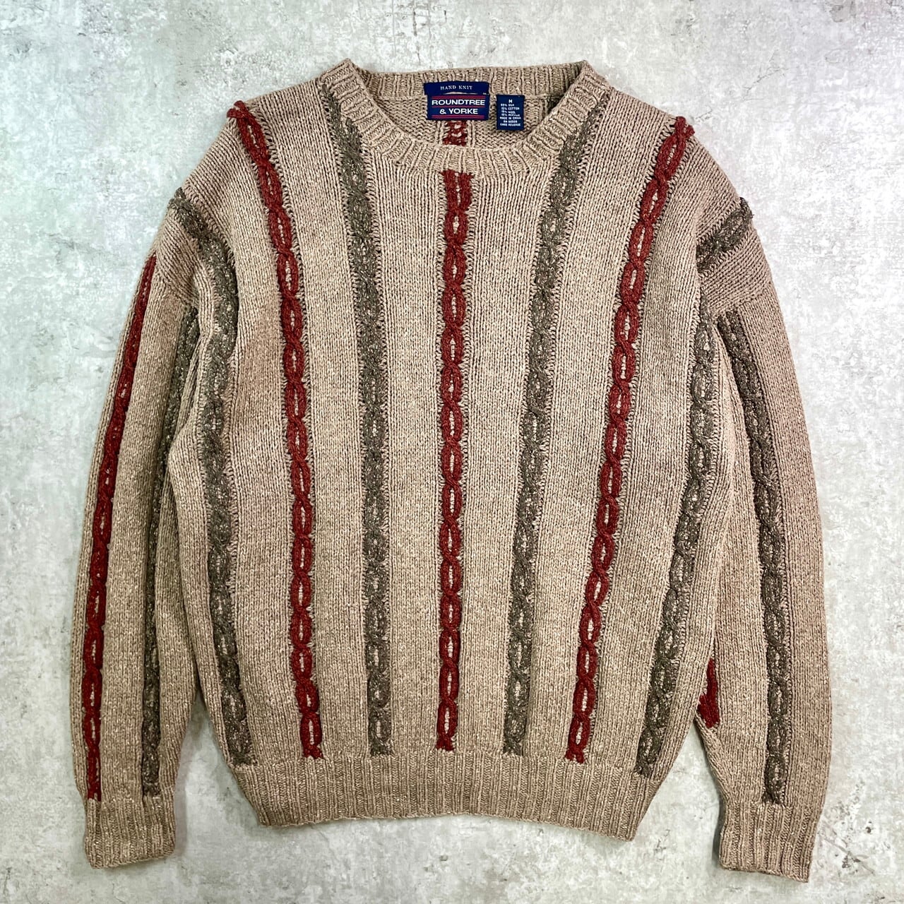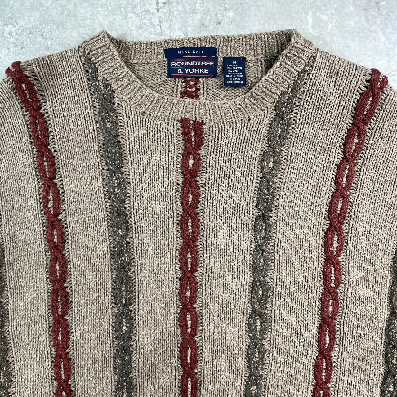 ■90年代 ROUNDTREE & YORKE ハンドニット デザイン シルクニットセーター メンズXL相当 古着 90s VINTAGE ヴィンテージ【ニットセーター】/マルチカラー 【ブランド】 ROUNDTREE & YORKE 【サイズ】表記 M(着用感メンズXL相当) モデル身長173㎝ ※計測値をご確認ください。 着丈…70 身幅…62 肩幅…67 袖丈...61 【生産国】中国製 【素材】シルク55% コットン15% ウール15% アクリル15% 【状態】多少の使用感は御座いますが、目立ったダメージや汚れは御座いません。 画像にてご確認ください。 【c251108013】 ※古着は洗濯、検品などのケアを行っております。(新品・デッドストックは洗濯していません。) ※モニターの発色により実物と異なる場合がございます。予めご了承ください。 ※ 海外直輸入USED品になります。