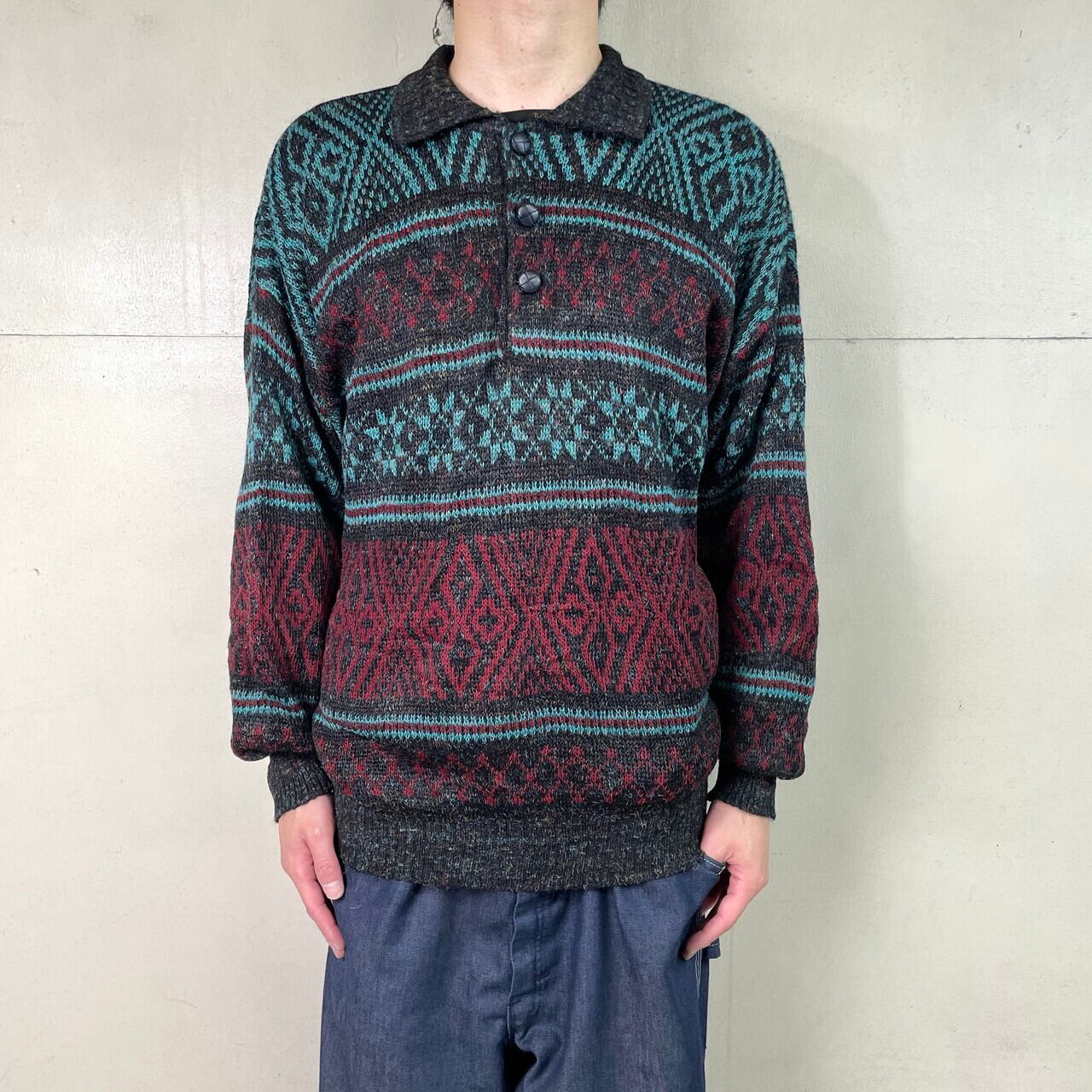 ■80年代 フランス製 BARBE BLEUE ノルディック柄 アクリルニットポロシャツ メンズM相当 古着 80s ヴィンテージ VINTAGE フェアアイル柄 総柄 くるみボタン ユーロ【ニットセーター】/マルチカラー 【ブランド】BARBE BLEUE 【サイズ】表記 不明(着用感メンズM相当) モデル身長173㎝ ※計測値をご確認ください。 着丈…68 身幅…59 肩幅…61 袖下…51 【生産国】フランス製 【素材】アクリル65% ウール20% ポリアミド15% 【状態】多少の使用感は御座いますが、目立ったダメージや汚れは御座いません。 画像にてご確認ください。 【c251108006】 ※古着は洗濯、検品などのケアを行っております。(新品・デッドストックは洗濯していません。) ※モニターの発色により実物と異なる場合がございます。予めご了承ください。 ※ 海外直輸入USED品になります。