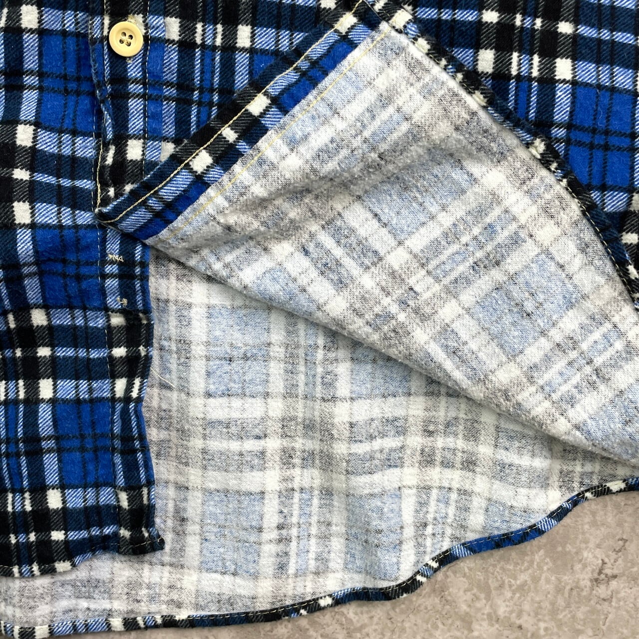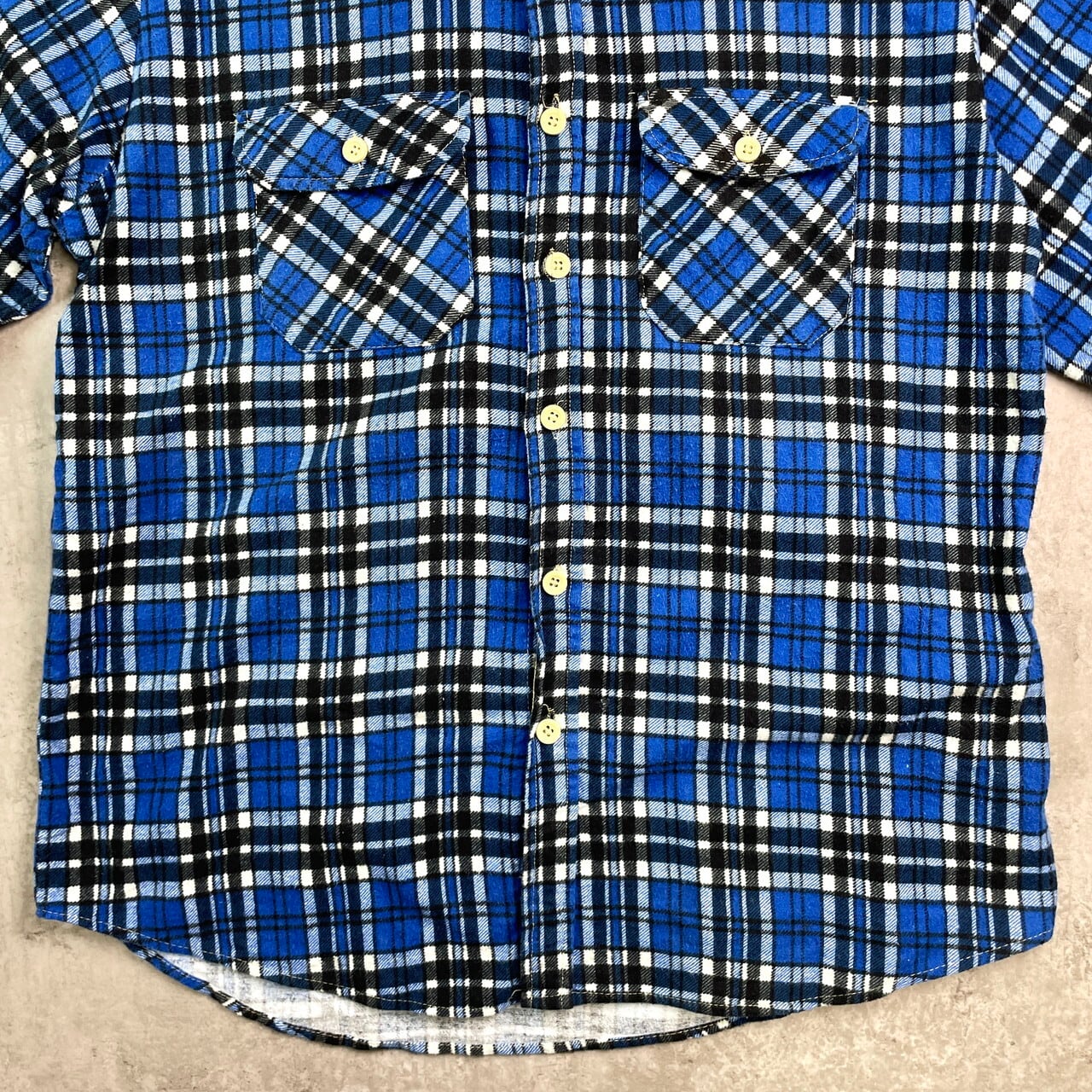 ■70年代 チェック 長袖 プリントネルシャツ メンズL相当 古着 70s VINTAGE ヴィンテージ プリネル フランネル 衿芯 ブルー ブラック ホワイト 青 黒 白【長袖シャツ】/マルチカラー 【サイズ】 表記 不明(着用感メンズL相当) ※計測値をご確認ください。 着丈…77 身幅…59 肩幅…47 袖丈…60.5 【生産国】不明 【素材】不明 おそらくコットンかと思われます。 【状態】多少の使用感は御座いますが、目立ったダメージや汚れは御座いません。 画像にてご確認ください。 【c251107019】 ※古着は洗濯、検品などのケアを行っております。(新品・デッドストックは洗濯していません。) ※モニターの発色により実物と異なる場合がございます。予めご了承ください。 ※ 海外直輸入USED品になります。