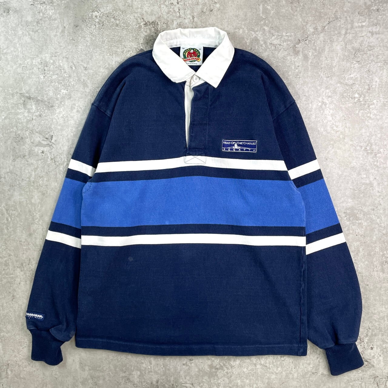 ■90年代 カナダ製 BARBARIAN バーバリアン 長袖 ラガーシャツ メンズM 古着 90s VINTAGE ヴィンテージ ネイビー ホワイト ブルー【ポロシャツ・ラガーシャツ】/マルチカラー 【ブランド】BARBARIAN バーバリアン 【サイズ】表記 M ※計測値をご確認ください。 着丈…72 身幅…54 肩幅…52 袖丈...63 【生産国】カナダ製 【素材】コットン100% 【状態】フロント・右アームホール付近・右袖口付近に汚れがございます。 画像にてご確認ください。 【c251107006】 ※古着は洗濯、検品などのケアを行っております。(新品・デッドストックは洗濯していません。) ※モニターの発色により実物と異なる場合がございます。予めご了承ください。 ※ 海外直輸入USED品になります。