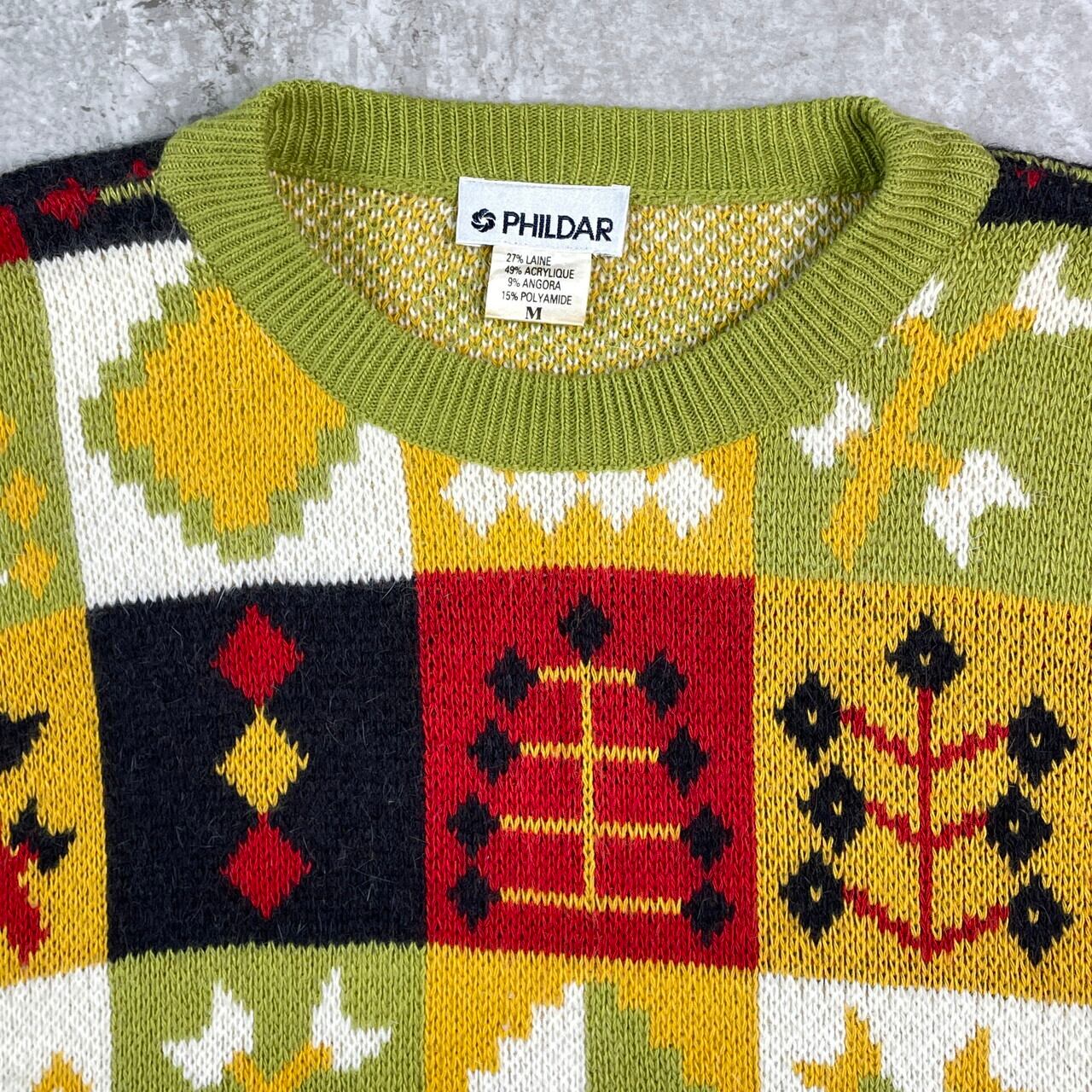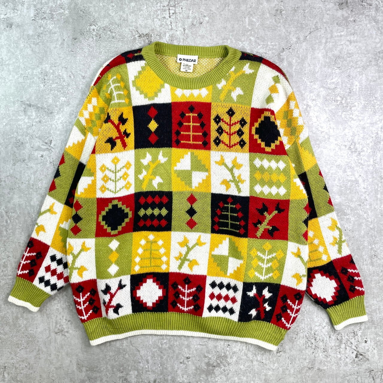 ■PHILDAR ユーロ 総柄 アートデザイン アクリルニットセーター レディースL相当 古着【ニットセーター】/マルチカラー 【ブランド】PHILDAR 【サイズ】表記 M(着用感レディースL相当) ※計測値をご確認ください。 着丈…66 身幅…64 肩幅…66 袖丈…47 【生産国】不明 【素材】ウール27% アクリル49% アンゴラ9% ポリアミド15% 【状態】多少の使用感は御座いますが、目立ったダメージや汚れは御座いません。 画像にてご確認ください。 【c251104014】 ※古着は洗濯、検品などのケアを行っております。(新品・デッドストックは洗濯していません。) ※モニターの発色により実物と異なる場合がございます。予めご了承ください。 ※ 海外直輸入USED品になります。