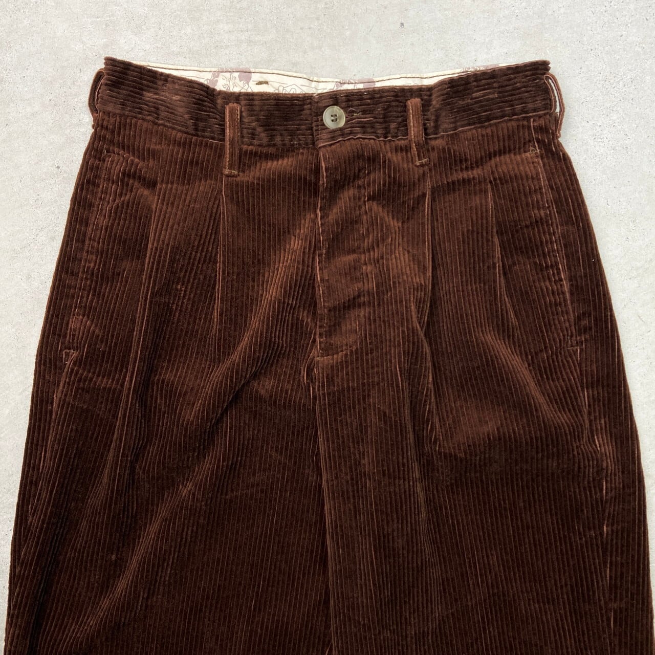 ■ヴィンテージ Lee Cooper リークーパー 2タック ワイドテーパード 太畝 コーデュロイパンツ レディースW28相当 古着 VINTAGE 茶色【コーデュロイパンツ】/ブラウン 【ブランド】Lee Cooper リークーパー 【サイズ】表記 不明(実寸W28相当) ※計測値をご確認ください。 ウエスト(平置き×2)…72 ワタリ幅…32 股上…30 股下…81 裾幅…20 【生産国】不明 【素材】コットン89% ポリエステル11% 【状態】多少の使用感ございますが目立った汚れやダメージはございません。 画像にてご確認ください。 【c251103020】 ※古着は洗濯、検品などのケアを行っております。(新品・デッドストックは洗濯していません。) ※モニターの発色により実物と異なる場合がございます。予めご了承ください。 ※ 海外直輸入USED品になります。