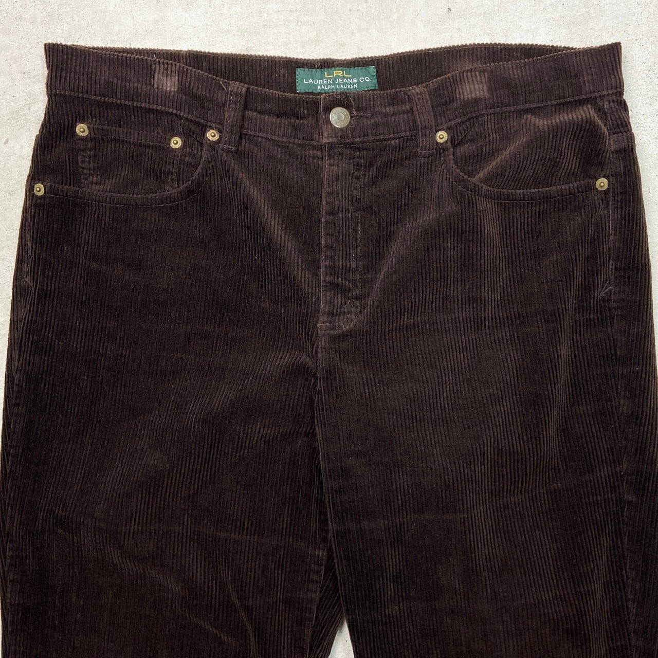 ■LAUREN JEANS CO RALPH LAUREN ラルフローレン フレア コーデュロイパンツ レディース メンズ W36相当 古着 茶色【コーデュロイパンツ】/ブラウン 【ブランド】LAUREN JEANS CO RALPH LAUREN ラルフローレン 【サイズ】表記 12(実寸W36相当) レディース規格ですがメンズにもおすすめなサイズ感です。 ※計測値をご確認ください。 ウエスト(平置き×2)…92 ワタリ幅…30 股上…29 股下…79 裾幅…27 【生産国】中国製 【素材】コットン98% エラスタン2% 【状態】多少の使用感ございますが目立った汚れやダメージはございません。 画像にてご確認ください。 【c251103015】 ※古着は洗濯、検品などのケアを行っております。(新品・デッドストックは洗濯していません。) ※モニターの発色により実物と異なる場合がございます。予めご了承ください。 ※ 海外直輸入USED品になります。