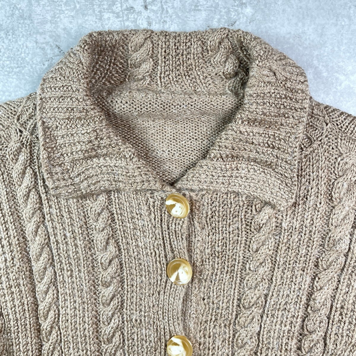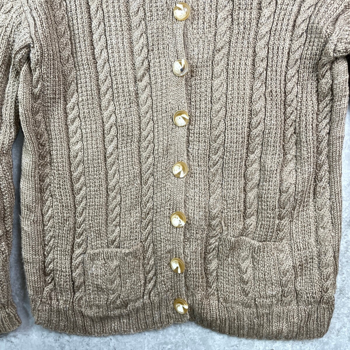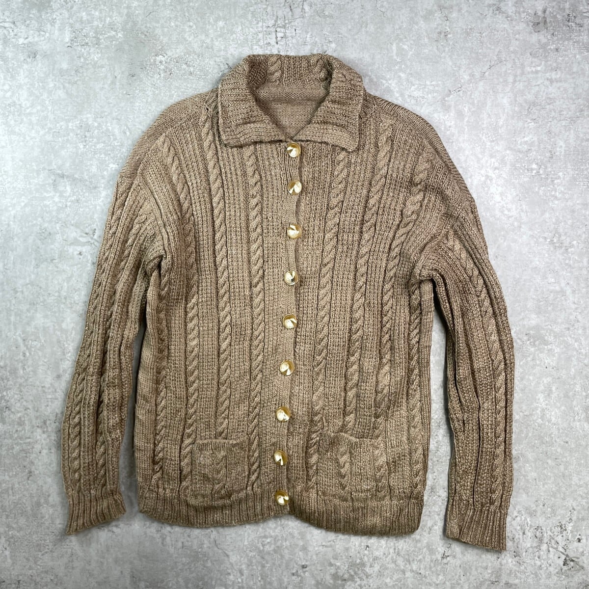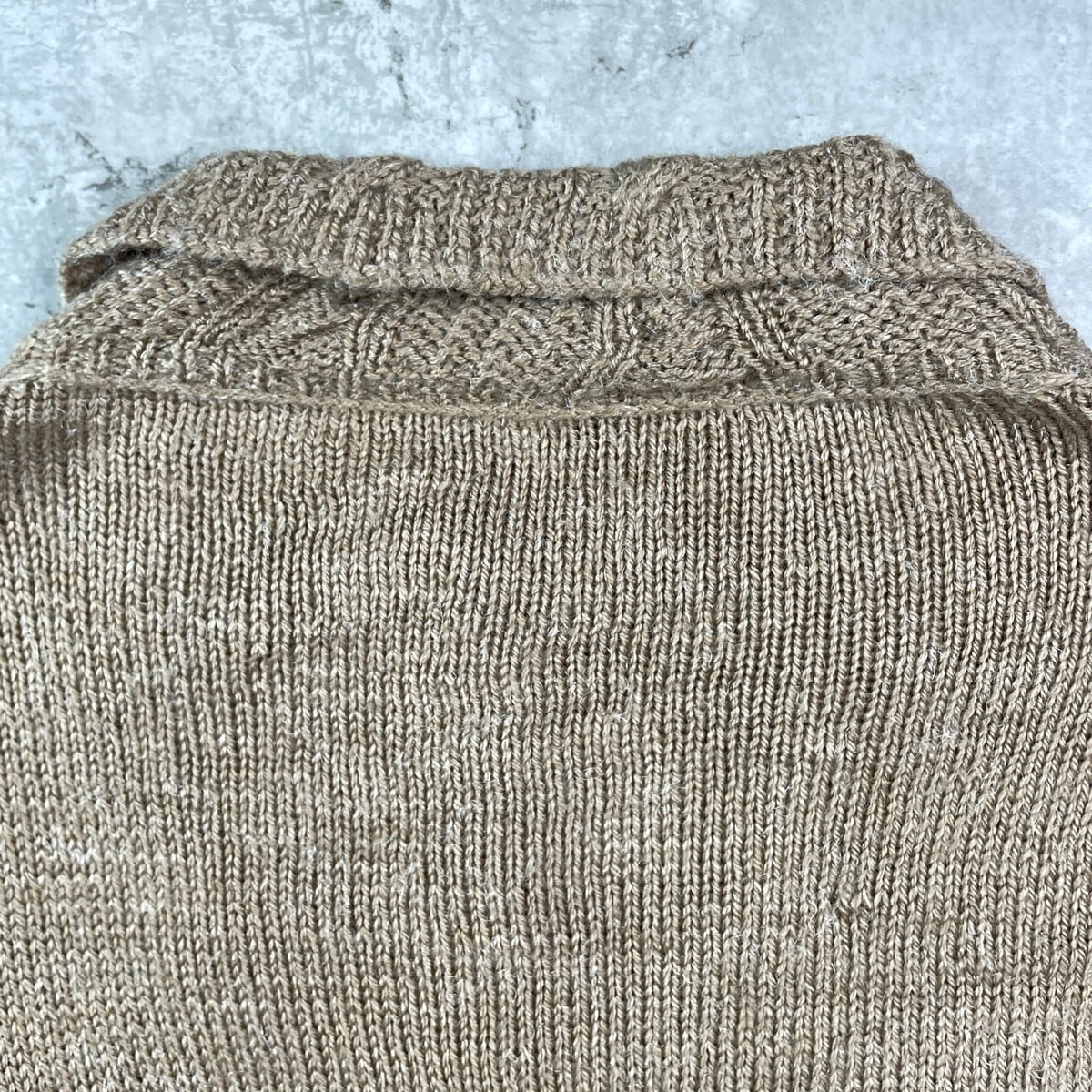 ■UNKNOWN ケーブルニットカーディガン レディースM相当 古着 襟付き ハンドニット モカブラウン【ニットセーター】/ブラウン 【サイズ】表記不明(実寸レディースM相当) ※計測値をご確認ください。 着丈…66 身幅…55.5 肩幅…60.5 袖丈…55.5 【生産国】不明 【素材】不明(おそらくウール混かと思われます) 【状態】タグが欠損しております。 使用感はありますが、目立ったダメージや汚れはございません。 画像にてご確認ください。 【c251030117】 ※古着は洗濯、検品などのケアを行っております。(新品・デッドストックは洗濯していません。) ※モニターの発色により実物と異なる場合がございます。予めご了承ください。 ※ 海外直輸入USED品になります。