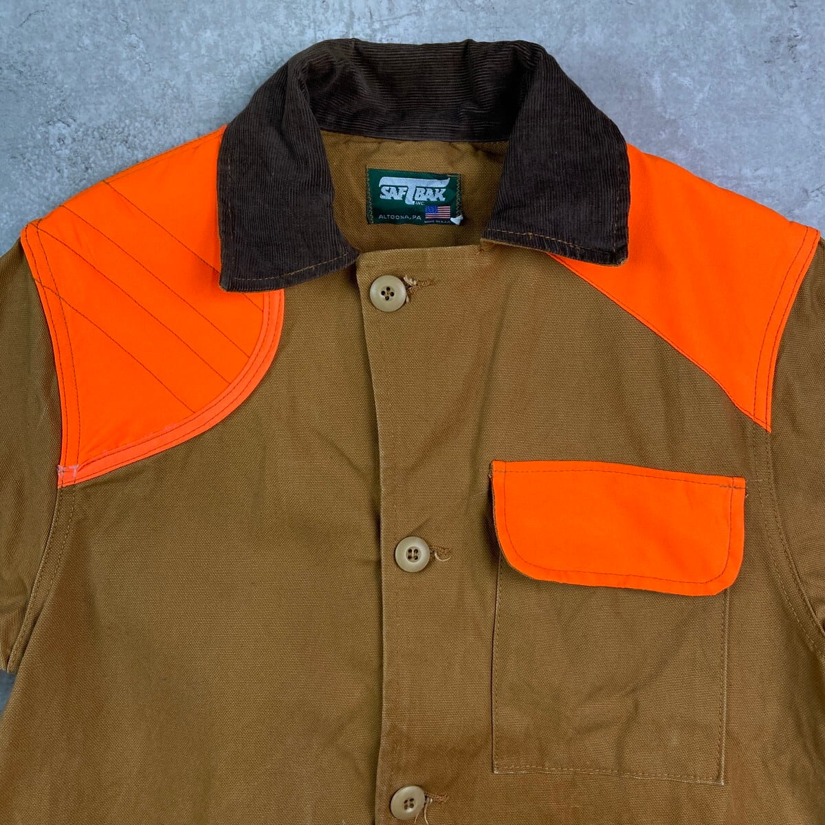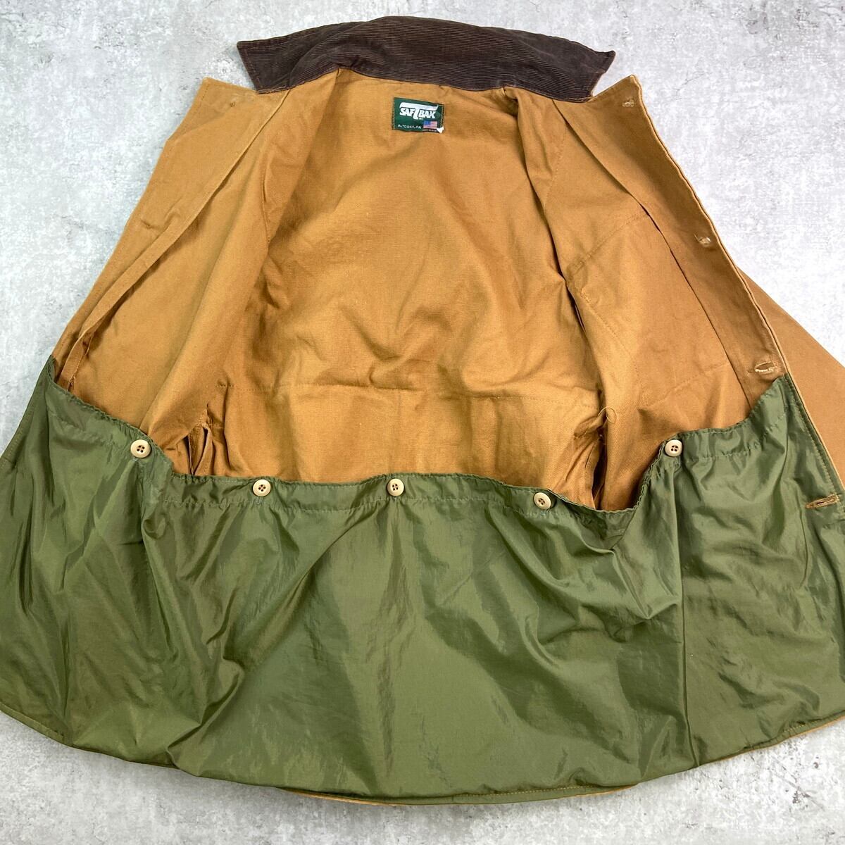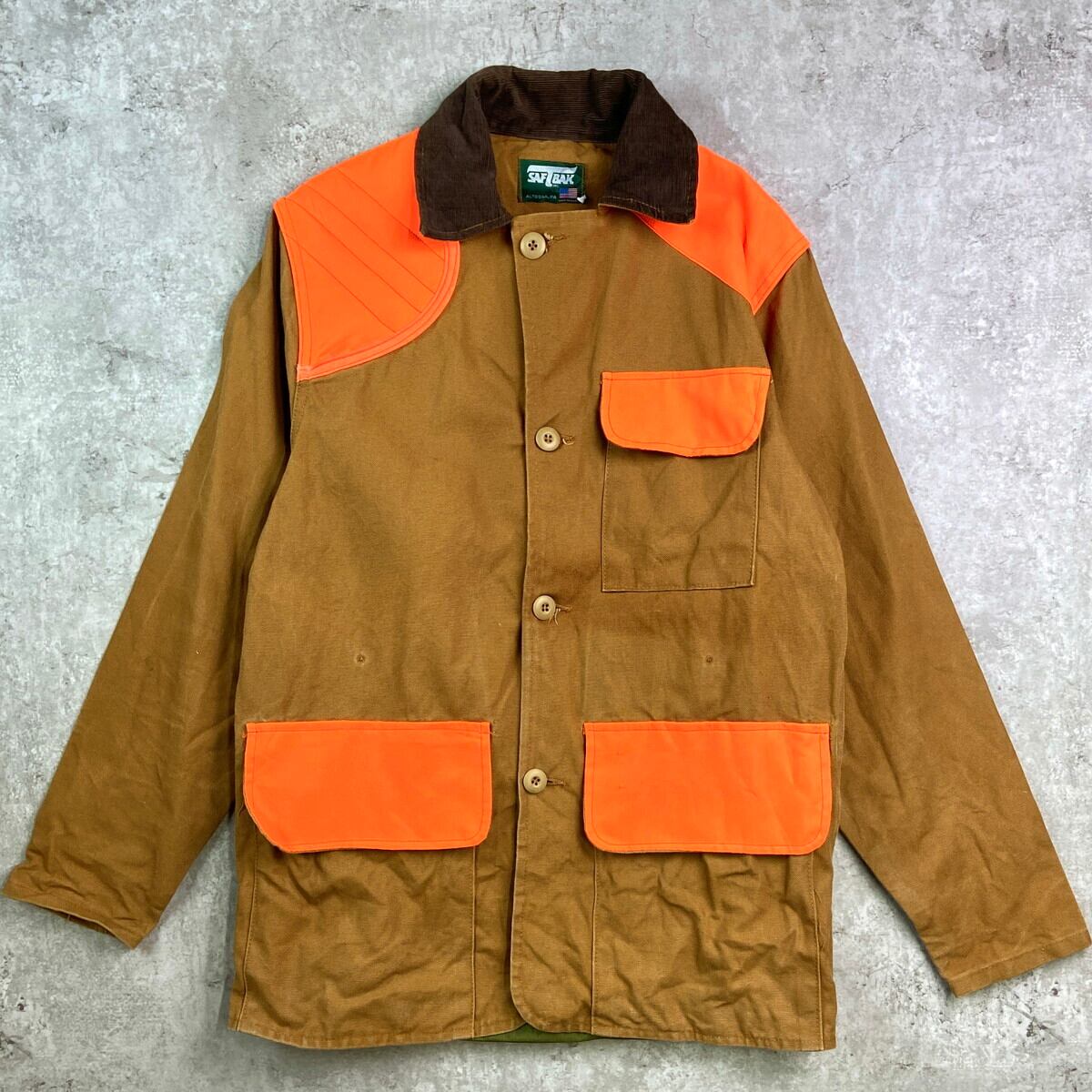 ■80年代 USA製 SAFTBAK ハンティングジャケット ダック地 コーデュロイ襟 メンズM相当 古着 80s VINTAGE ヴィンテージ アメカジ 大きいサイズ ビッグサイズ 茶色 オレンジ【ワークジャケット】/ブラウン 【ブランド】SAFTBAK 【サイズ】表記 不明(着用感メンズM相当) ※計測値をご確認ください。 着丈…77 身幅…54 肩幅…45.5 袖丈…63.5 【生産国】USA製 【素材】不明(おそらくコットンかと思われます。) 【状態】全体的にフェードや汚れ等の使用感がございます。 画像にてご確認ください。 【c251029112】 ※古着は洗濯、検品などのケアを行っております。(新品・デッドストックは洗濯していません。) ※モニターの発色により実物と異なる場合がございます。予めご了承ください。 ※ 海外直輸入USED品になります。