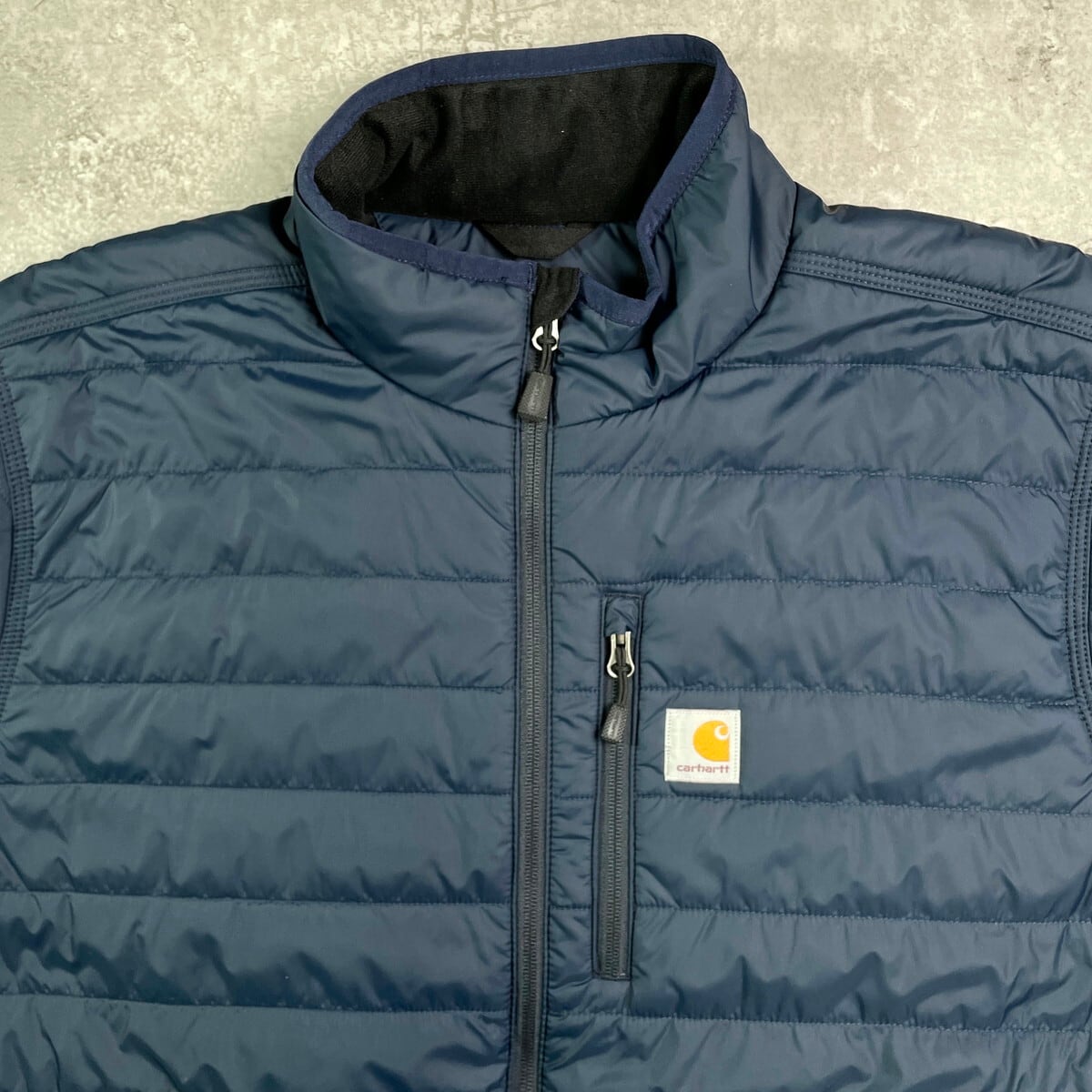 ■Carhartt カーハート GILLIAM JACKET ワンポイントロゴ メンズXL 古着 ギリアムジャケット フルジップ 紺色【ナイロンジャケット】/ネイビー 【ブランド】Carhartt カーハート 【サイズ】表記 XL ※計測値をご確認ください。 着丈…74.5 身幅…67.5 肩幅…53.5 袖丈…67.5 【生産国】ベトナム製 【素材】ナイロン100% 中綿 ポリエステル100% 【状態】多少の使用感は御座いますが、目立ったダメージや汚れは御座いません。 画像にてご確認ください。 【c251029110】 ※古着は洗濯、検品などのケアを行っております。(新品・デッドストックは洗濯していません。) ※モニターの発色により実物と異なる場合がございます。予めご了承ください。 ※ 海外直輸入USED品になります。