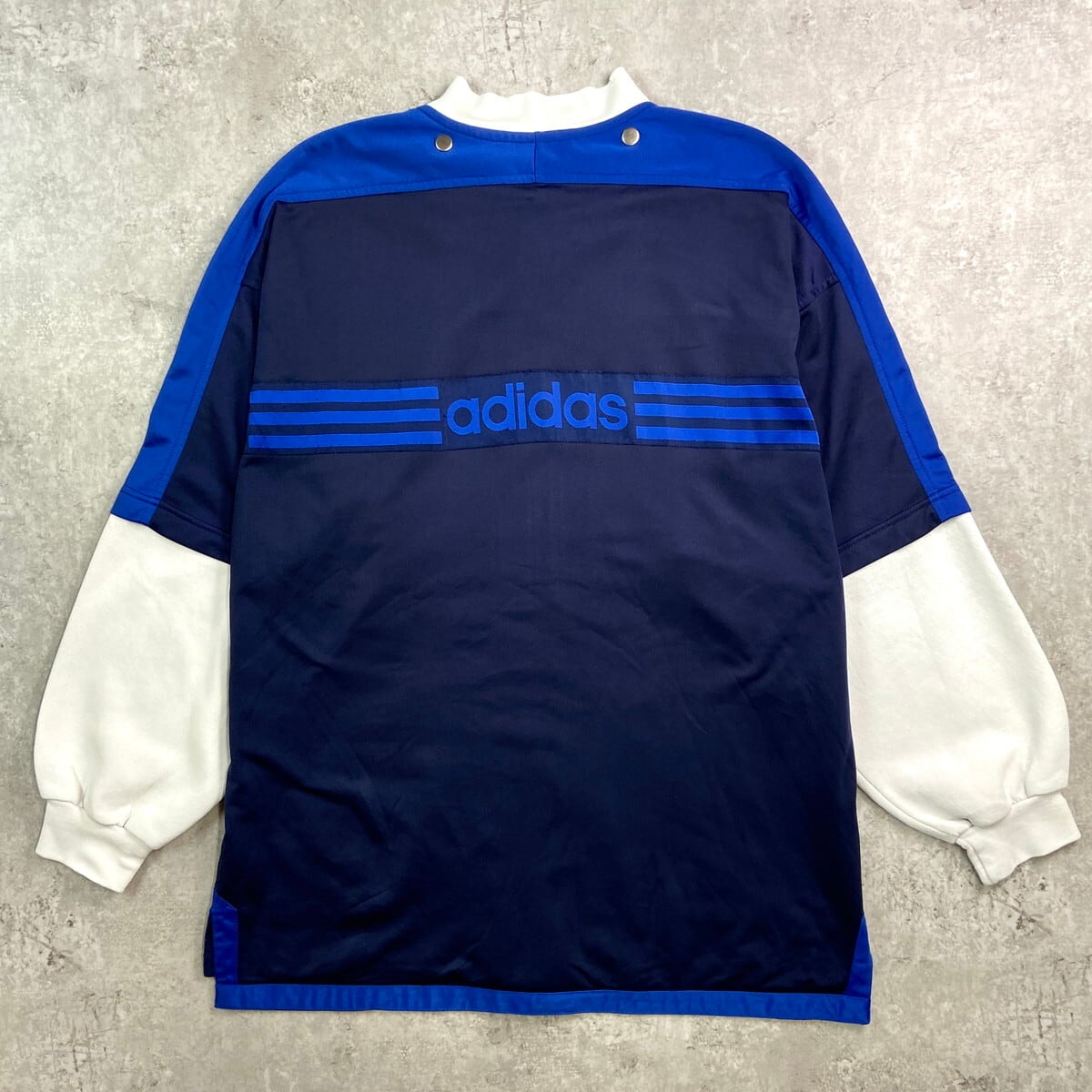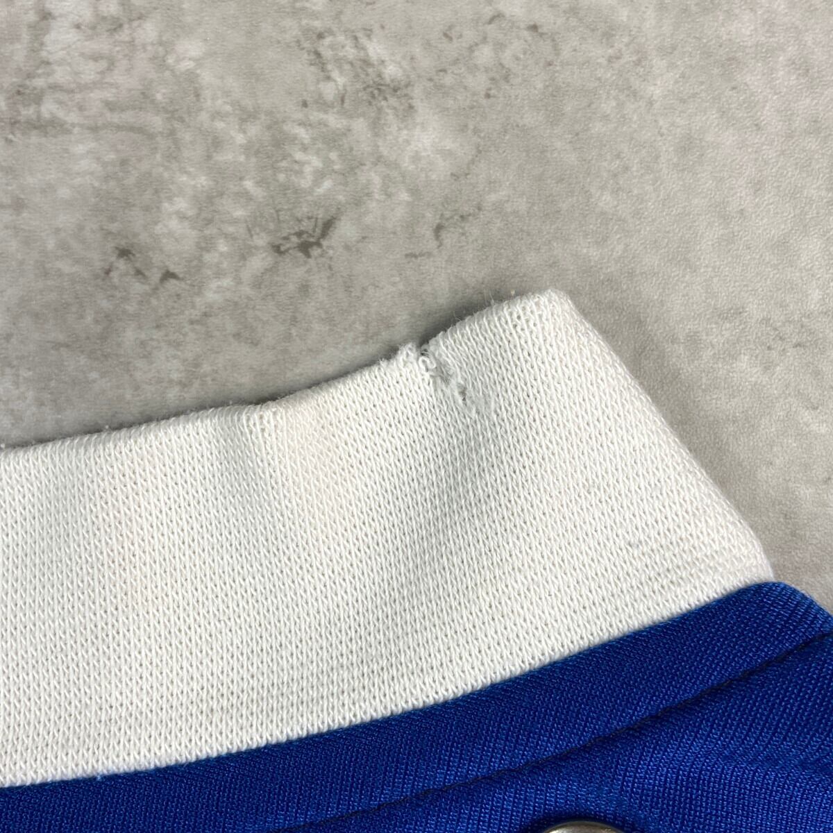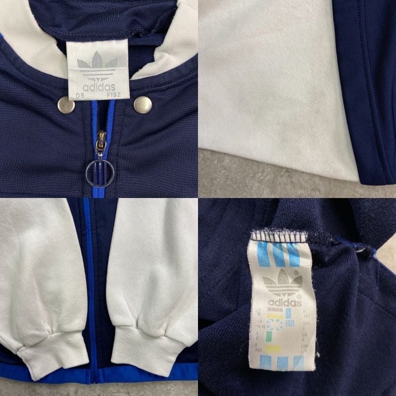 ■80年代 adidas アディダス フェイクレイヤード ジャージ×スウェット トラックジャケット メンズXL相当 古着 80s ヴィンテージ VINTAGE 青色 黒 灰色 【ジャージ・トラックジャケット】/ブルー 【ブランド】adidas アディダス 【サイズ】表記 USA L(着用感メンズXL相当) ※計測値をご確認ください。 着丈…80.5 身幅…72.5 裄丈…81.5 袖丈(袖下計測)…50.5 【生産国】インドネシア製 【素材】ポリエステル100% スウェット コットン70% ポリエステル30% 【状態】フード、ライナーが欠損しています。 スウェット部分に数ヶ所薄汚れ、襟部分にダメージがございます。 画像にてご確認ください。 【c251026111】 ※古着は洗濯、検品などのケアを行っております。(新品・デッドストックは洗濯していません。) ※モニターの発色により実物と異なる場合がございます。予めご了承ください。 ※ 海外直輸入USED品になります。