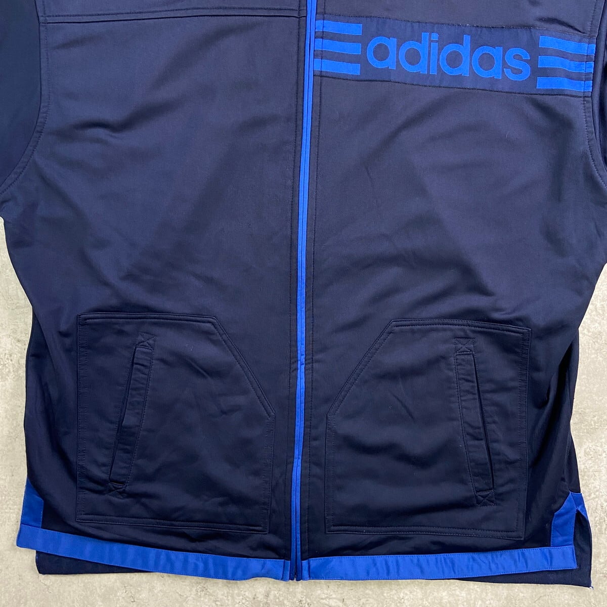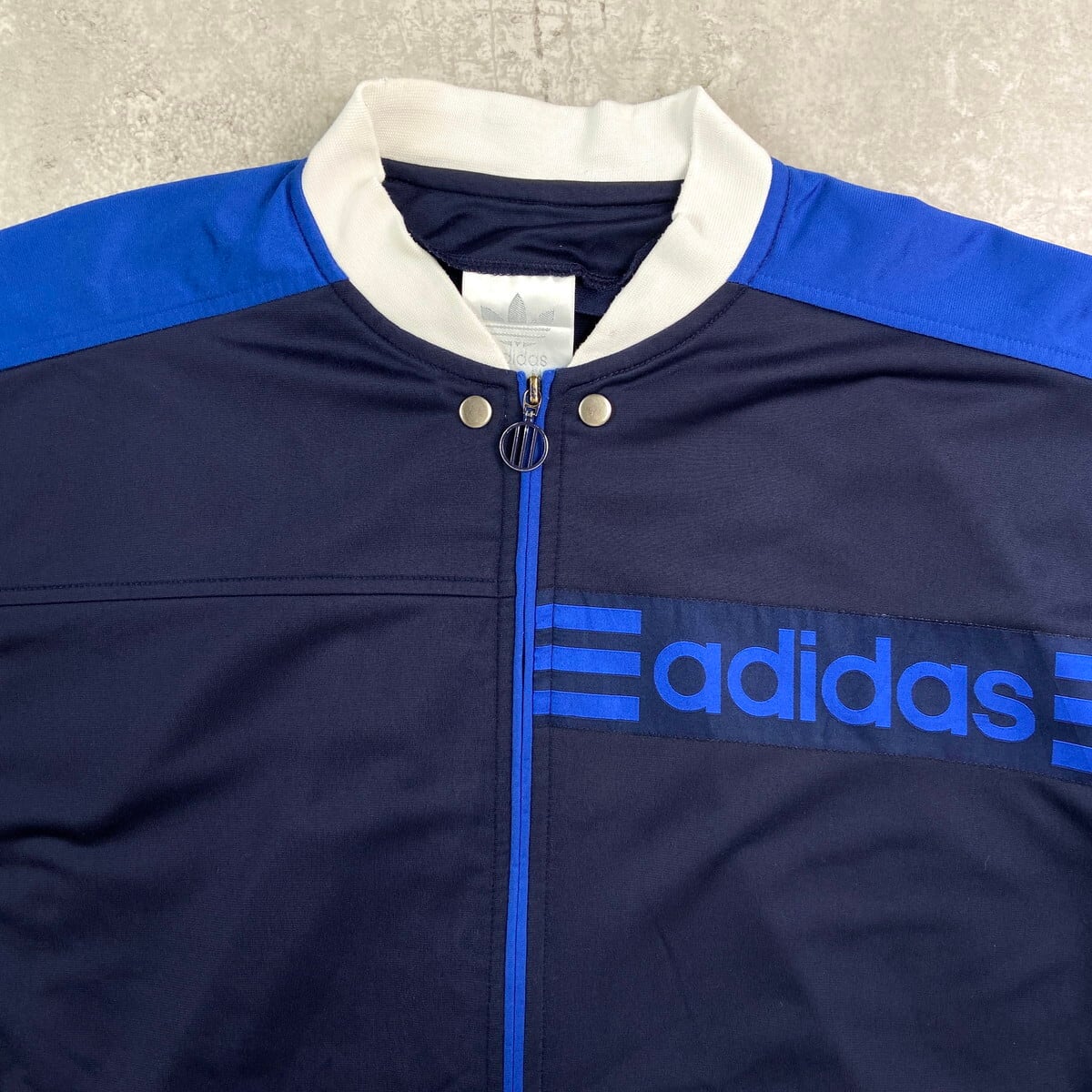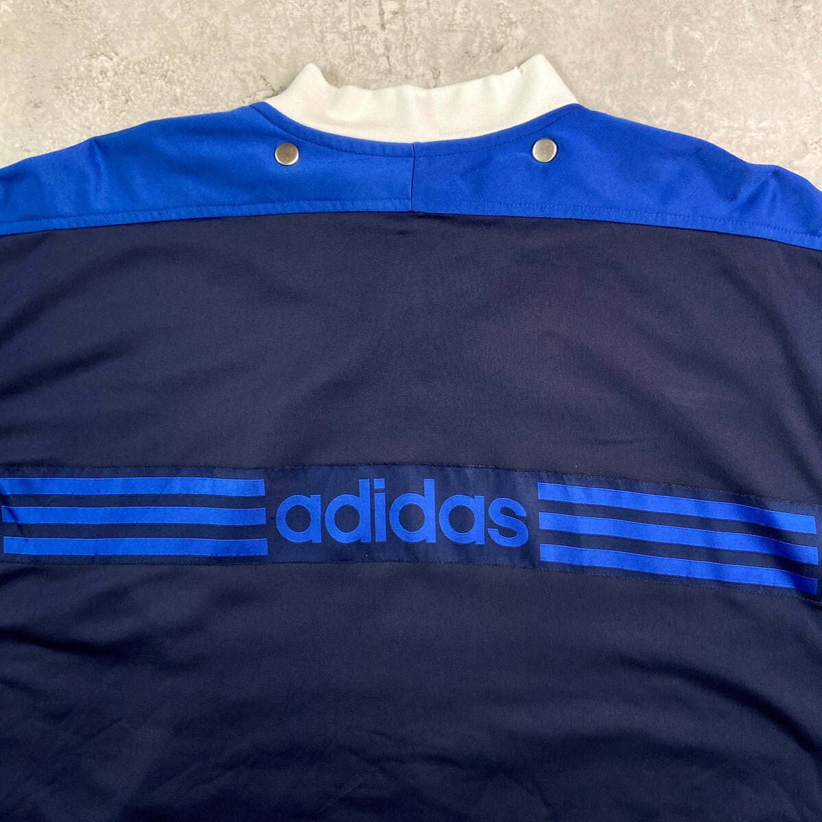 ■80年代 adidas アディダス フェイクレイヤード ジャージ×スウェット トラックジャケット メンズXL相当 古着 80s ヴィンテージ VINTAGE 青色 黒 灰色 【ジャージ・トラックジャケット】/ブルー 【ブランド】adidas アディダス 【サイズ】表記 USA L(着用感メンズXL相当) ※計測値をご確認ください。 着丈…80.5 身幅…72.5 裄丈…81.5 袖丈(袖下計測)…50.5 【生産国】インドネシア製 【素材】ポリエステル100% スウェット コットン70% ポリエステル30% 【状態】フード、ライナーが欠損しています。 スウェット部分に数ヶ所薄汚れ、襟部分にダメージがございます。 画像にてご確認ください。 【c251026111】 ※古着は洗濯、検品などのケアを行っております。(新品・デッドストックは洗濯していません。) ※モニターの発色により実物と異なる場合がございます。予めご了承ください。 ※ 海外直輸入USED品になります。