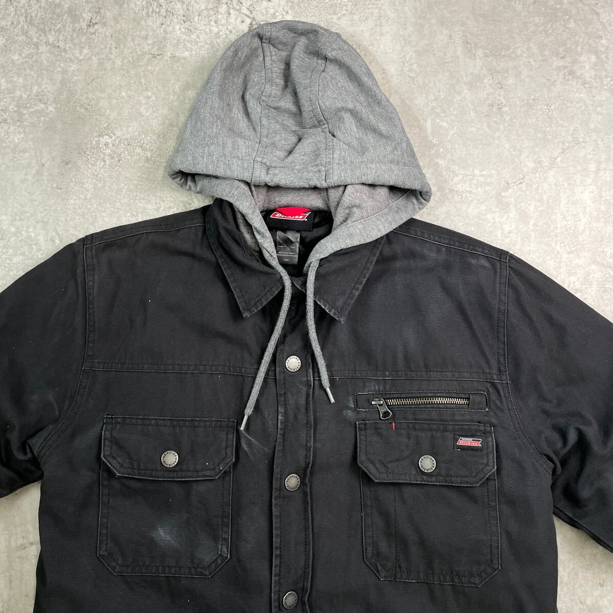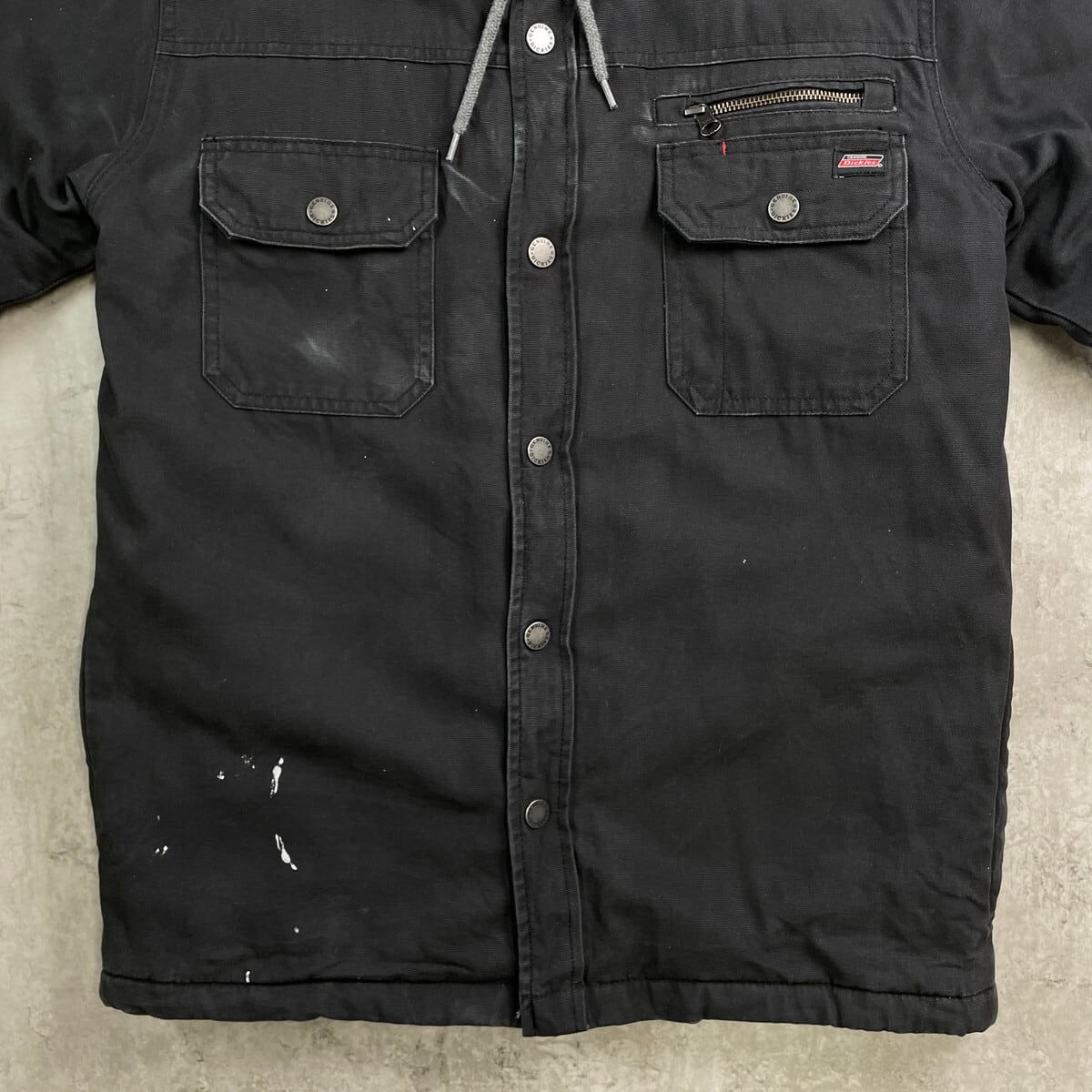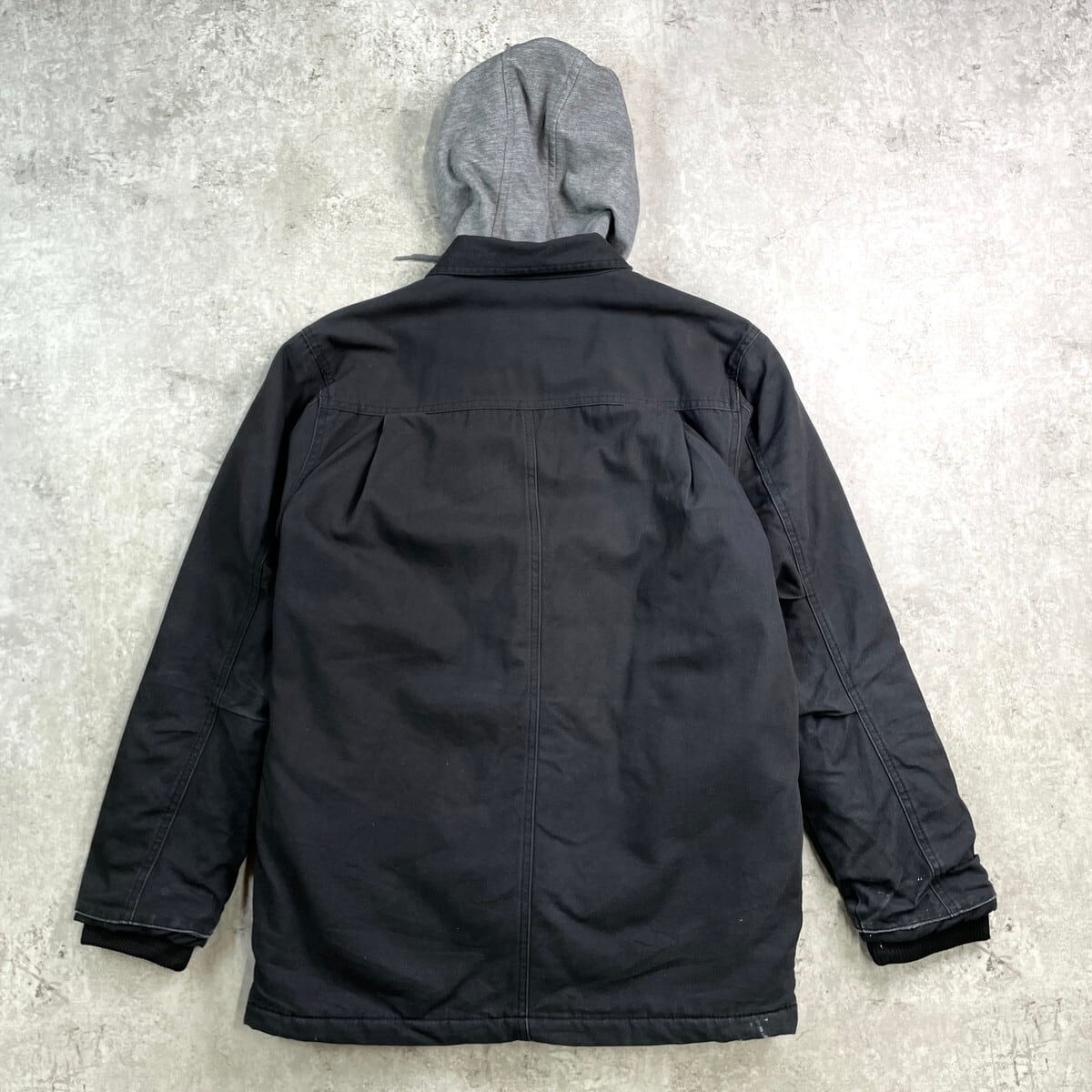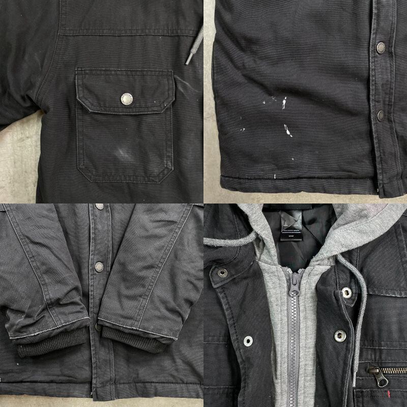 ■GENUINE Dickies ディッキーズ ダック地 フェイクレイヤード ワークジャケット メンズM相当 古着 ペンキ飛び スナップボタン フルジップパーカー キルティングライナー 黒【ワークジャケット】/ブラック 【ブランド】Dickies ディッキーズ 【サイズ】表記 S(実寸メンズM相当) ※計測値をご確認ください。 着丈…73.5 身幅…56.5 肩幅…46 袖丈…62 【生産国】バングラデッシュ製 【素材】表地 コットン100% スウェット コットン60% ポリエステル40% 裏地 ポリエステル100% 中綿 ポリエステル100% 【状態】全体的に使用感による色褪せがございます。 数か所にペンキ飛びがあります。 画像にてご確認ください。 【c251026102】 ※古着は洗濯、検品などのケアを行っております。(新品・デッドストックは洗濯していません。) ※モニターの発色により実物と異なる場合がございます。予めご了承ください。 ※ 海外直輸入USED品になります。