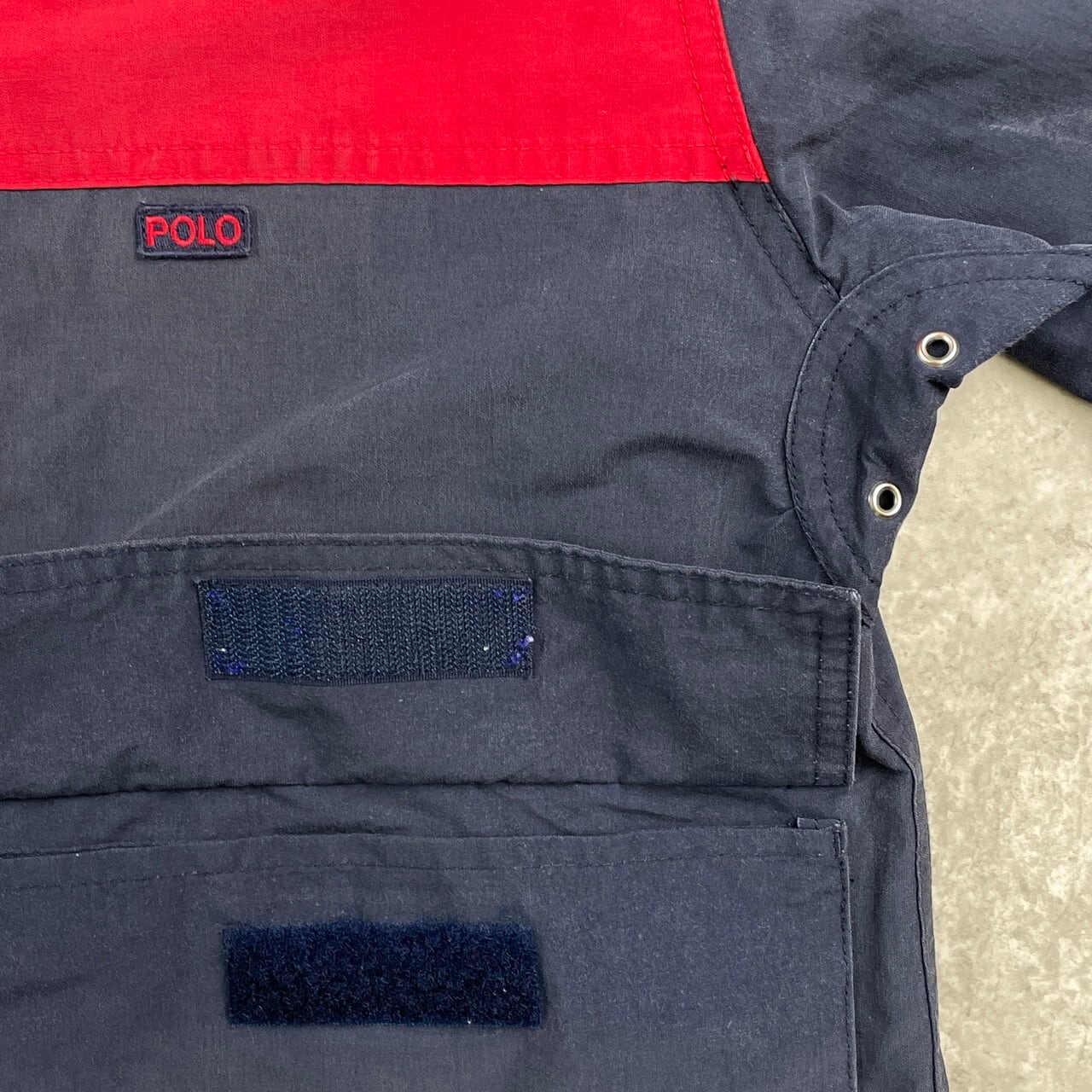 ■ 90年代 Polo by Ralph Lauren ポロバイラルフローレン ツートン コットンジャケット メンズM相当 古着 90s ヴィンテージ VINTAGE レッド ネイビー【ブルゾン・ジャケット】 【ブランド】Polo by Ralph Lauren ポロバイラルフローレン 【サイズ】表記 S(着用感メンズM相当) ※計測値をご確認ください。 着丈…65 身幅…60 肩幅…50 袖丈…55 【生産国】香港製 【素材】コットン100% 【状態】一番上のスナップボタンが破損しており開閉ができません。 ネイビー部に色褪せしたフェード感がございます。 画像にてご確認ください。 【c251022159】 ※古着は洗濯、検品などのケアを行っております。(新品・デッドストックは洗濯していません。) ※モニターの発色により実物と異なる場合がございます。予めご了承ください。 ※ 海外直輸入USED品になります。