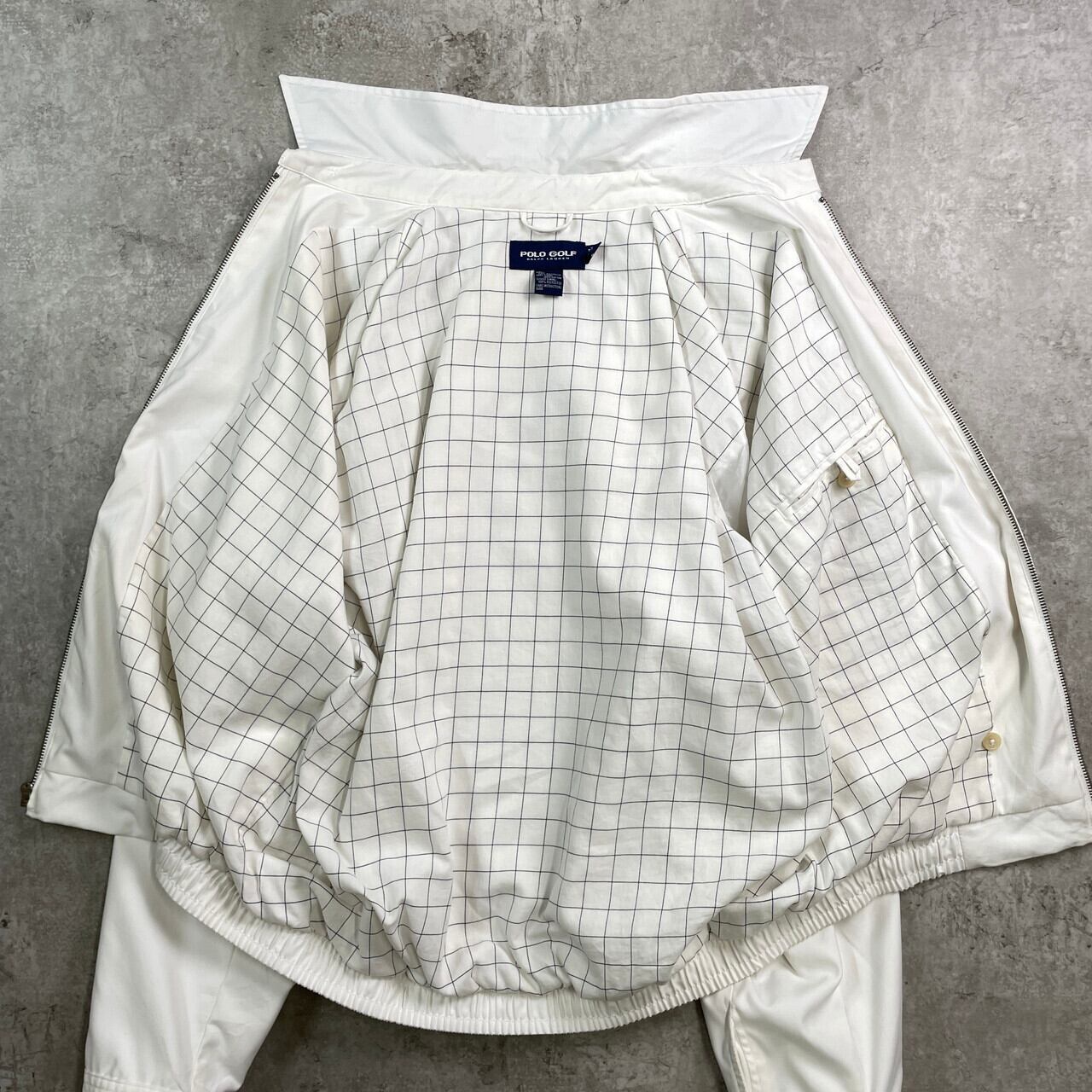 ■90年代 POLO GOLF Ralph Lauren ラルフローレン スイングトップ メンズM 古着 90s ヴィンテージ VINTAGE チンスト付き チェックライナー 白【ブルゾン・ジャケット】/ホワイト 【ブランド】Polo by Ralph Lauren ポロバイラルフローレン 【サイズ】 表記 M ※計測値をご確認ください。 着丈…68 身幅…67 肩幅…53 袖丈…62 【生産国】マレーシア製 【素材】ポリエステル100% 裏地 コットン100% 【状態】腕や左わき腹辺りに薄い汚れがございますが、年代物のホワイトボディーでは状態も良く希少な一点になります。 画像にてご確認ください。 【c251022158】 ※古着は洗濯、検品などのケアを行っております。(新品・デッドストックは洗濯していません。) ※モニターの発色により実物と異なる場合がございます。予めご了承ください。 ※ 海外直輸入USED品になります。