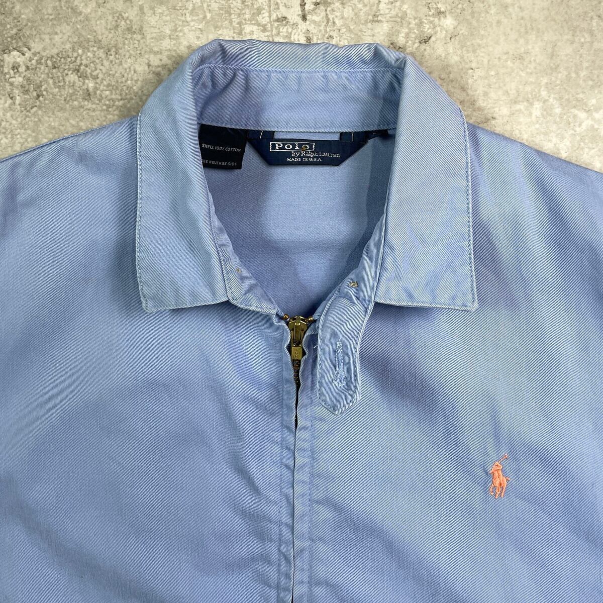 ■80年代 USA製 Polo by Ralph Lauren ポロバイラルフローレン スイングトップ メンズL相当 古着 90s ヴィンテージ VINTAGE チンスト付き フェードライトブルー 水色【ブルゾン・ジャケット】/ライトブルー 【ブランド】Polo by Ralph Lauren ポロバイラルフローレン 【サイズ】表記 M(実寸メンズL相当) ※計測値をご確認ください。 着丈…67 身幅…63 肩幅…54.5 袖丈…68 【生産国】USA製 【素材】コットン100% 【状態】全体的に使用感による色褪せがございます。 襟や袖口に若干の薄汚れがあります。 画像にてご確認ください。 【c251021109】 ※古着は洗濯、検品などのケアを行っております。(新品・デッドストックは洗濯していません。) ※モニターの発色により実物と異なる場合がございます。予めご了承ください。 ※ 海外直輸入USED品になります。