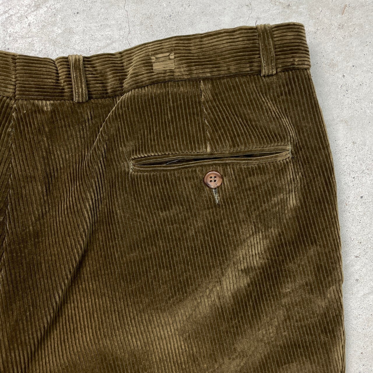 ■80年代 COSSERAT ワイドテーパード 太畝 コーデュロイパンツ メンズW40相当 古着 80s VINTAGE ヴィンテージ ユーロ YKK 片爪 ピンロック ビッグサイズ 大きいサイズ 茶色【コーデュロイパンツ】/ブラウン 【ブランド】COSSERAT 【サイズ】表記 F 54(実寸W40相当) ※計測値をご確認ください。 ウエスト(平置き×2)…102 ワタリ幅…34 股上…29 股下…79 裾幅…23 【生産国】不明 【素材】コットン71% ポリアミド15% モダール10% エラスタン4% 【状態】多少の使用感は御座いますが、目立ったダメージや汚れは御座いません。 画像にてご確認ください。 【c251018009】 ※古着は洗濯、検品などのケアを行っております。(新品・デッドストックは洗濯していません。) ※モニターの発色により実物と異なる場合がございます。予めご了承ください。 ※ 海外直輸入USED品になります。