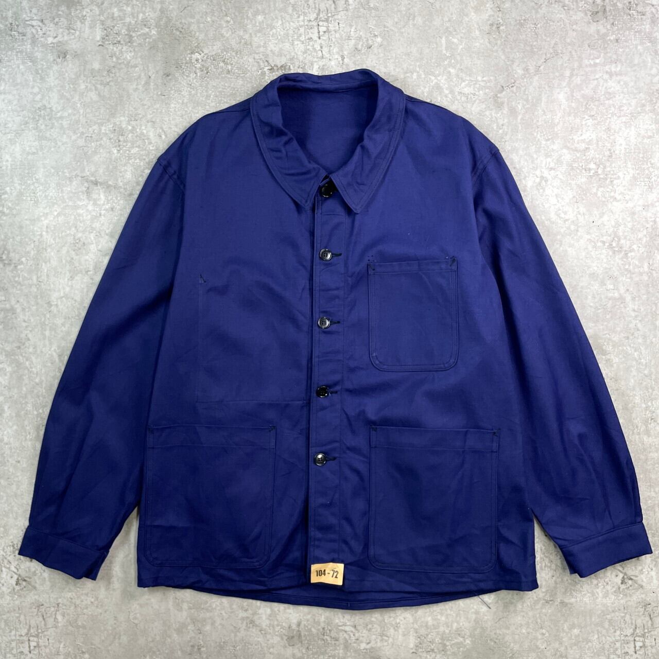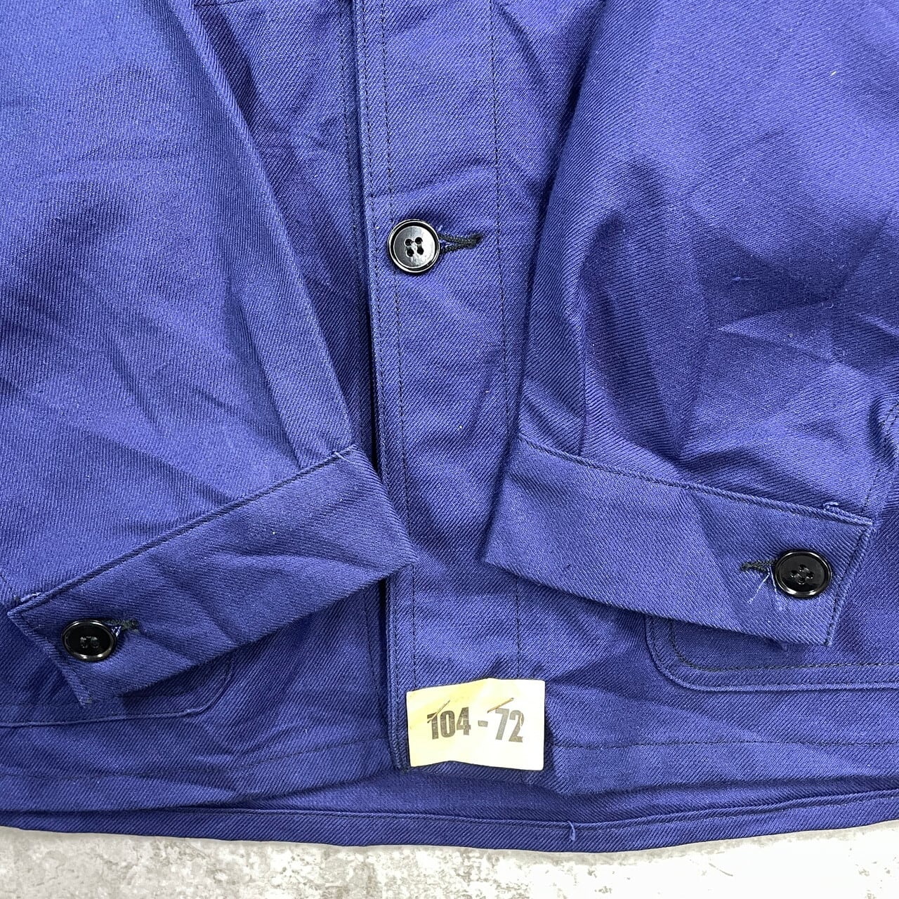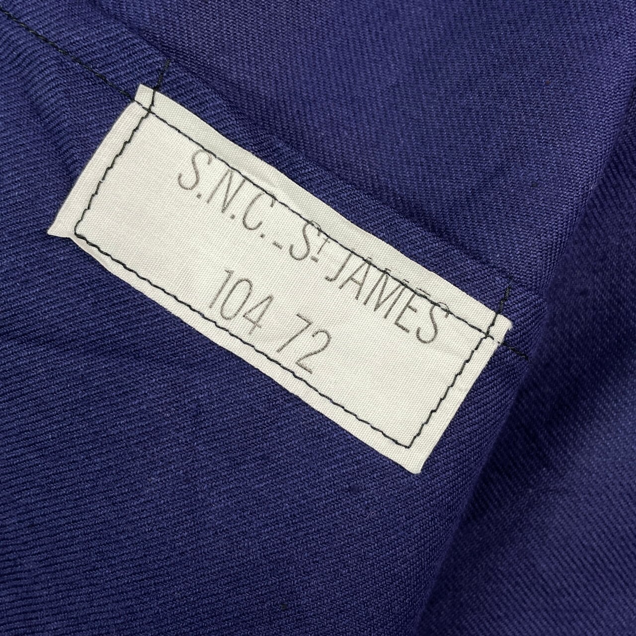 ■DEAD STOCK NOS 60年代 セントジェームズ社製 フランス軍 フレンチワークジャケット メンズXL相当 古着 S.N.C St JAMES カバーオール 60s VINTAGE ヴィンテージ ユーロミリタリー ユーロワーク インクブルー 紺色【ワークジャケット】/ネイビー ◎60年代、セントジェームズ社製のフランス軍ワークジャケット。 シンプルなデザインと堅牢なコットン生地が特徴的。 年代モノなのをまったく感じさせない、フランスらしい上品な雰囲気の漂う一着です。 【サイズ】表記 104 72(着用感メンズXL相当) ※計測値をご確認ください。 着丈…77.5 身幅…62 肩幅…52 袖丈…62.5 【生産国】不明 おそらくフランス製かと思われます。 【素材】不明 おそらくコットンかと思われます。 【状態】デッドストック(新品未使用品)です。 画像にてご確認ください。 【c251018001】 ※古着は洗濯、検品などのケアを行っております。(新品・デッドストックは洗濯していません。) ※モニターの発色により実物と異なる場合がございます。予めご了承ください。 ※ 海外直輸入USED品になります。
