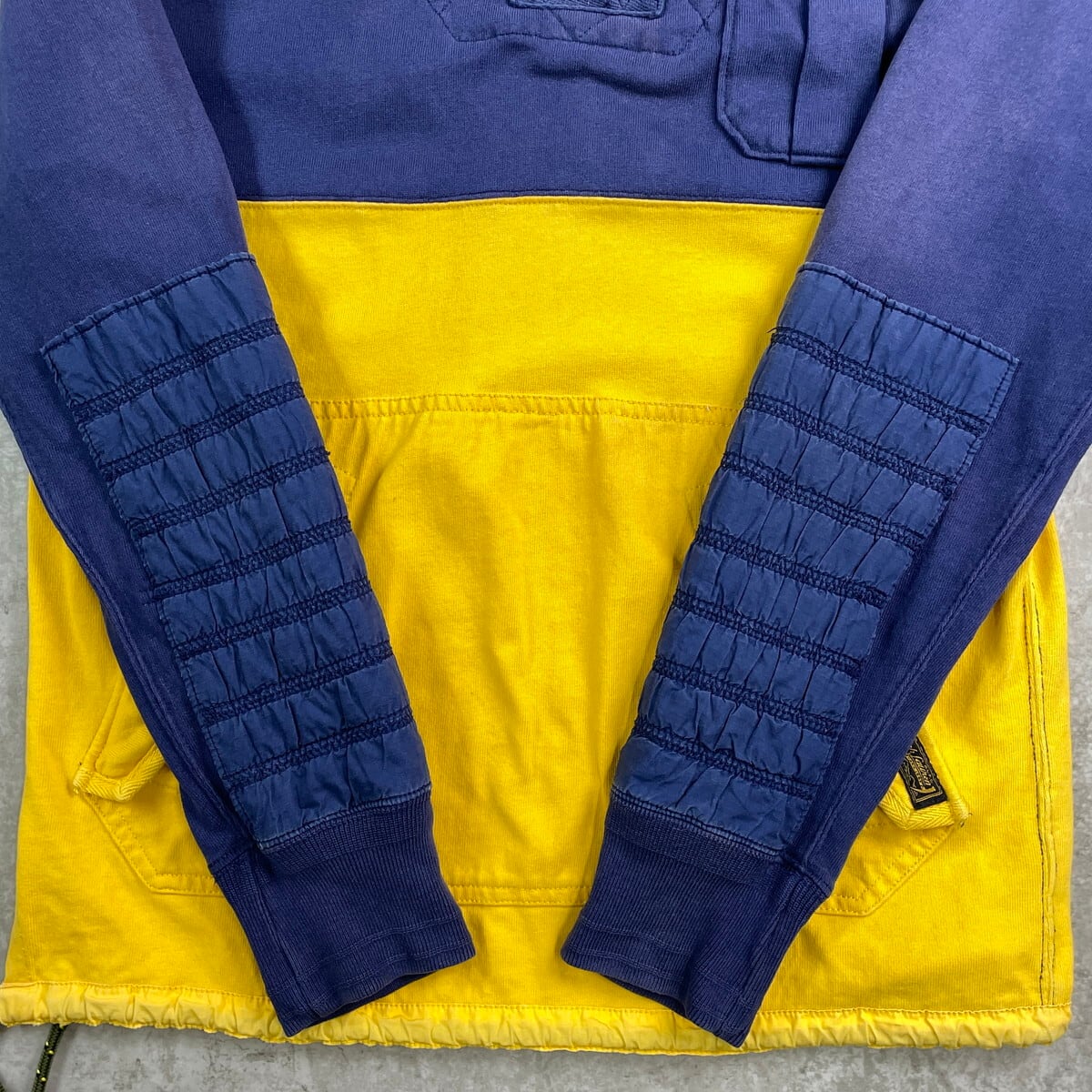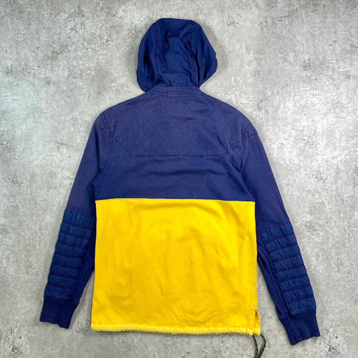 ■90年代 Polo by Ralph Lauren ポロバイラルフローレン スウェット アノラックパーカー メンズS レディースS~M相当 古着 90s VINTAGE ヴィンテージ タロンジップ ドローコード付き ツートンカラーネイビー イエロー【スウェットシャツ】/マルチカラー 【ブランド】Polo by Ralph Lauren ポロバイラルフローレン 【サイズ】表記 S ※計測値をご確認ください。 着丈…71.5 身幅…51.5 肩幅…44.5 袖丈…63 【生産国】フィリピン製 【素材】コットン100% 【状態】全体的に使用感による色褪せがございます。 袖に変色があります。 フロント左胸ポケット付近に小穴が空いています。 画像にてご確認ください。 【c251017102】 ※古着は洗濯、検品などのケアを行っております。(新品・デッドストックは洗濯していません。) ※モニターの発色により実物と異なる場合がございます。予めご了承ください。 ※ 海外直輸入USED品になります。