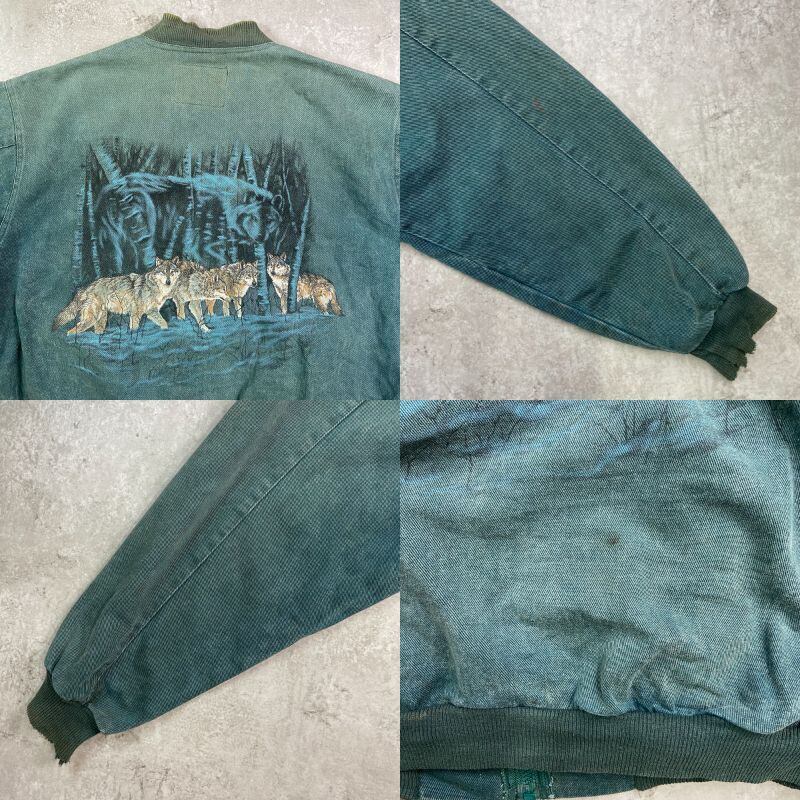 ■90年代 カナダ製 HARLEQUIN NATURE GRAPHICS オオカミ アニマルプリント ブルゾンジャケット メンズ2XL相当 古着 90s ヴィンテージ VINTAGE バックプリント フェードグリーン【ブルゾン・ジャケット】/グリーン 【ブランド】HARLEQUIN NATURE GRAPHICS 【サイズ】表記 L(実寸メンズ2XL相当) ※計測値をご確認ください。 着丈…67.5 身幅…71.5 肩幅…56.5 袖丈…59 【生産国】カナダ製 【素材】コットン100% 【状態】全体的に色褪せやサンフェードしております。 袖口にダメージ、中心部や袖に汚れがございます。 画像にてご確認ください。 【c251016114】 ※古着は洗濯、検品などのケアを行っております。(新品・デッドストックは洗濯していません。) ※モニターの発色により実物と異なる場合がございます。予めご了承ください。 ※ 海外直輸入USED品になります。