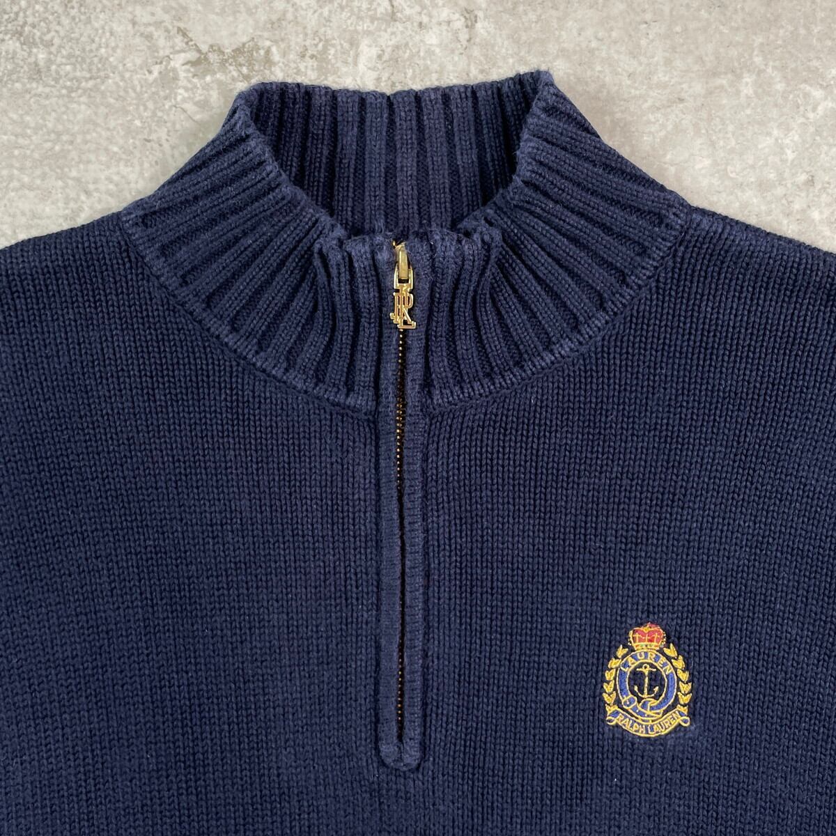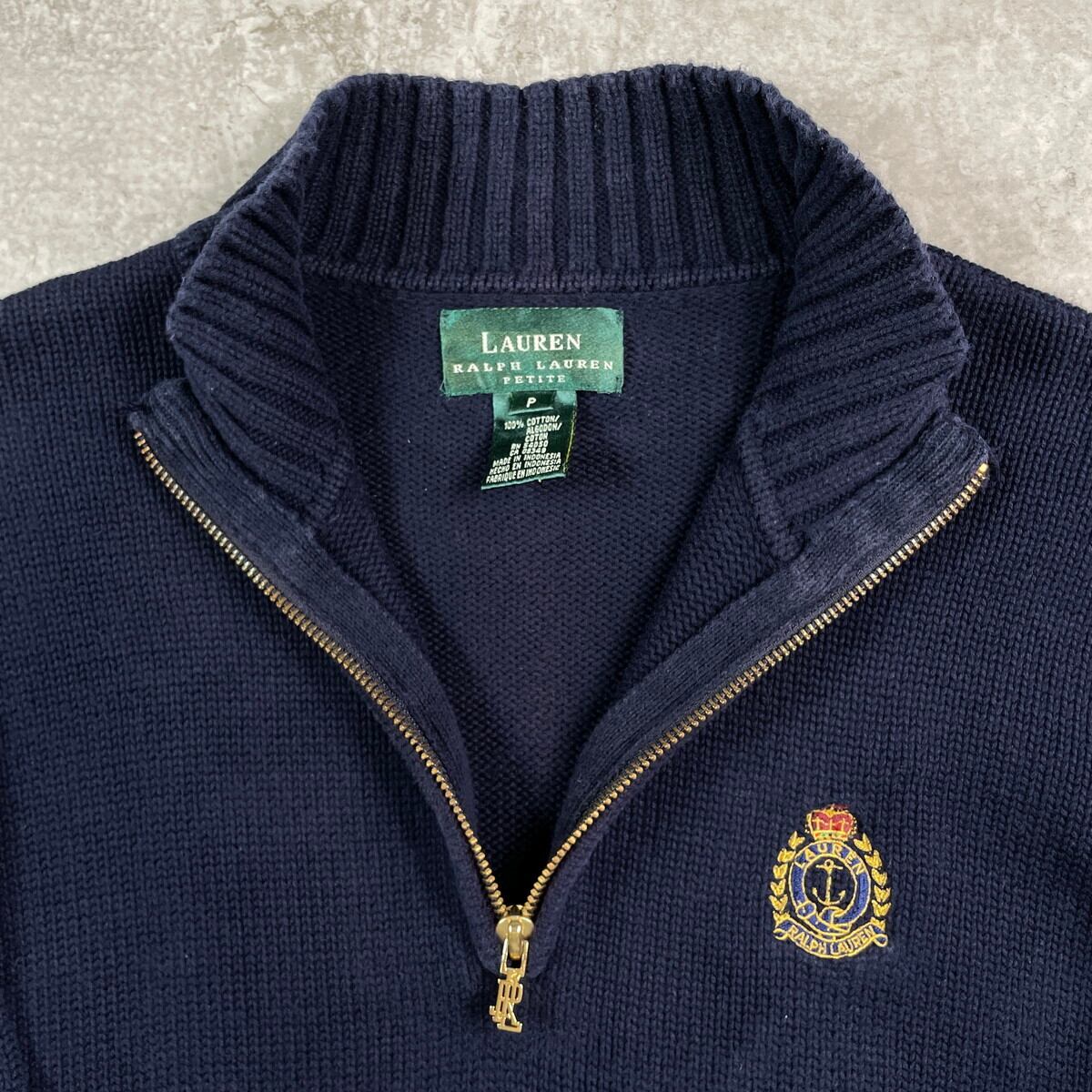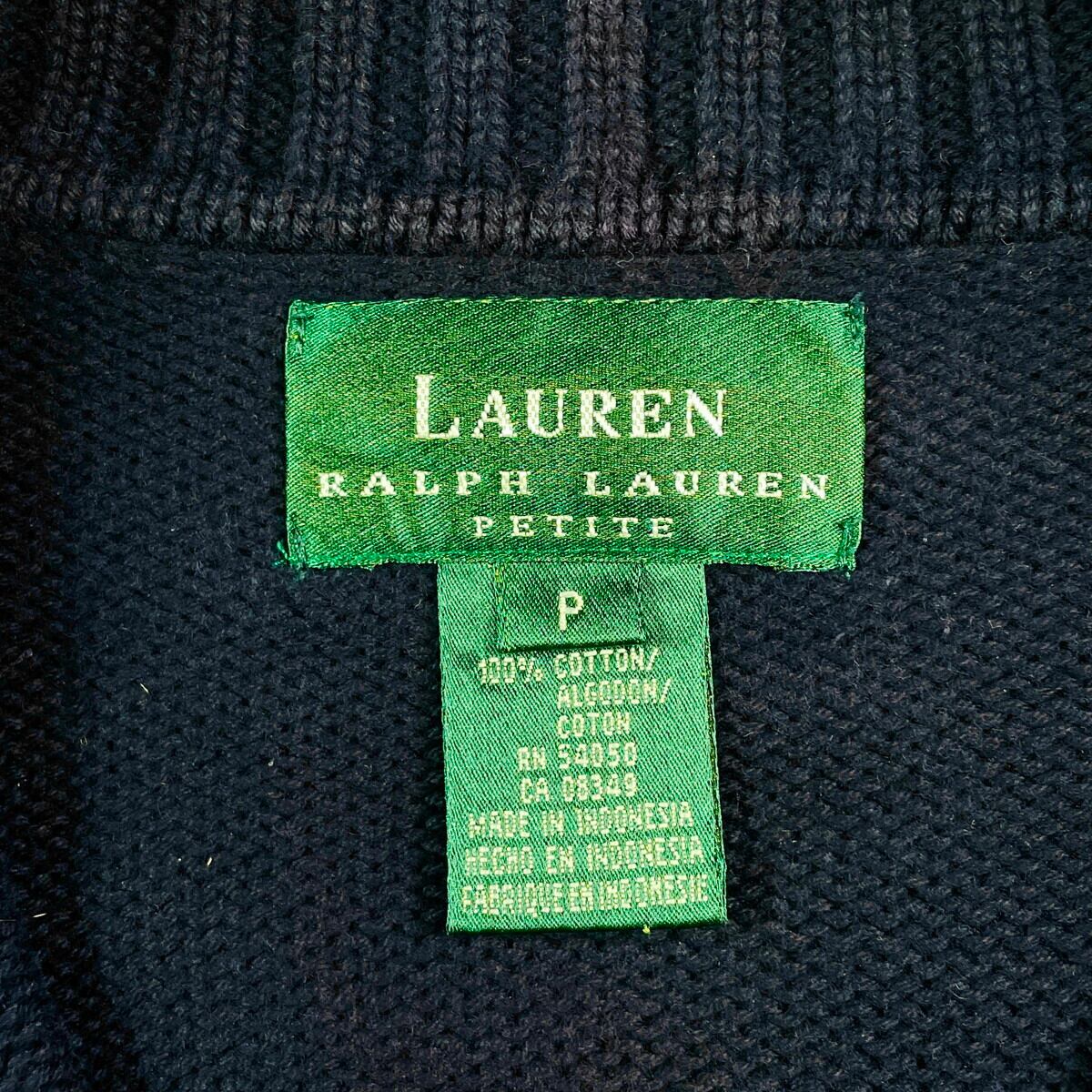 ■LAUREN RALPH LAUREN PETITE ハーフジップ ニットセーター レディースXS相当 古着 ワンポイントロゴ刺? ハイネック 紺色【ニットセーター】/ネイビー 【ブランド】 Polo Ralph Lauren ポロラルフローレン 【サイズ】表記不明(実寸レディースXS相当) ※計測値をご確認ください。 着丈…63.5 身幅…47.5 肩幅…42.5 袖丈…56.5 【生産国】インドネシア製 【素材】コットン100% 【状態】全体的に使用感による色褪せがありますが、目立ったダメージや汚れはございません。 画像にてご確認ください。 【c251016108】 ※古着は洗濯、検品などのケアを行っております。(新品・デッドストックは洗濯していません。) ※モニターの発色により実物と異なる場合がございます。予めご了承ください。 ※ 海外直輸入USED品になります。