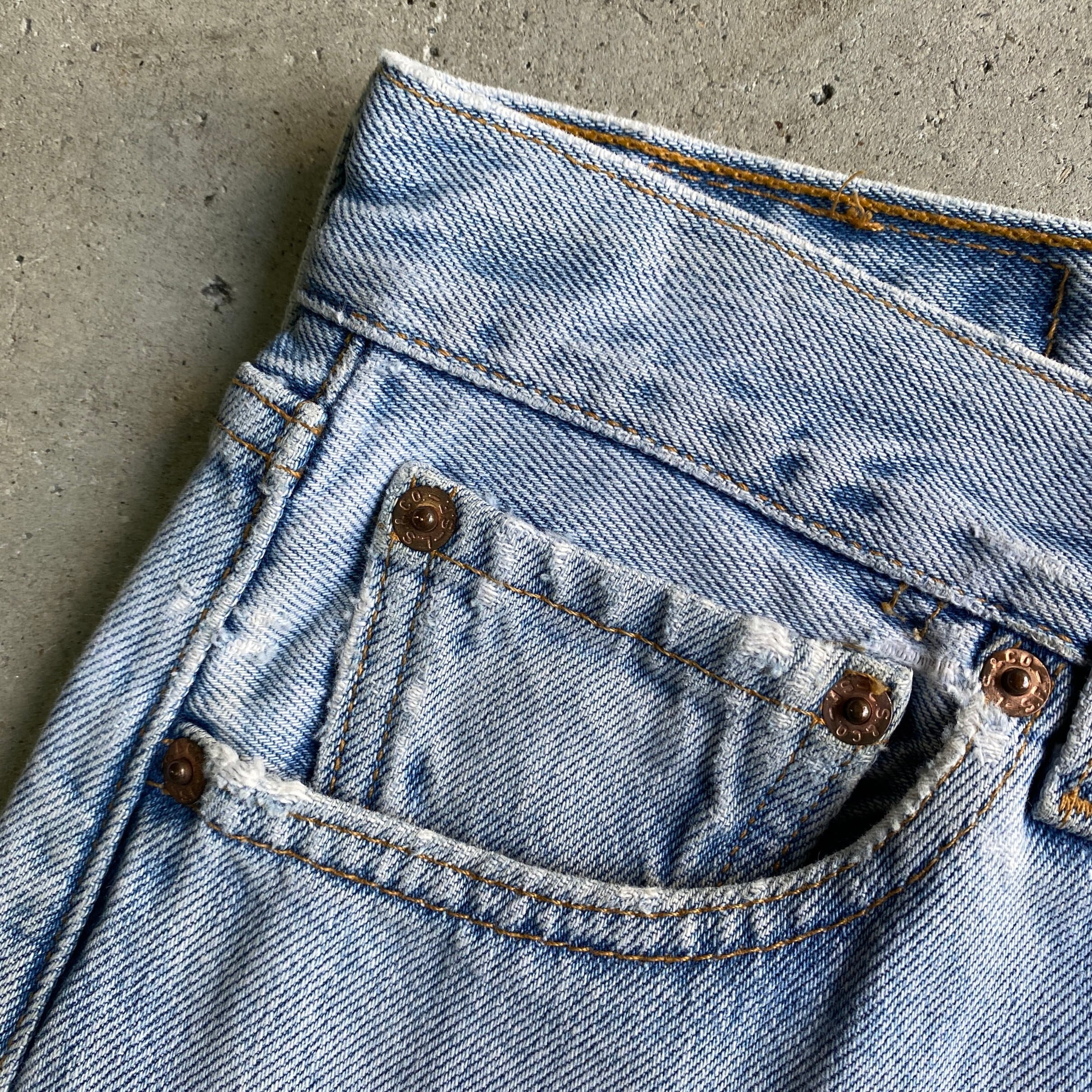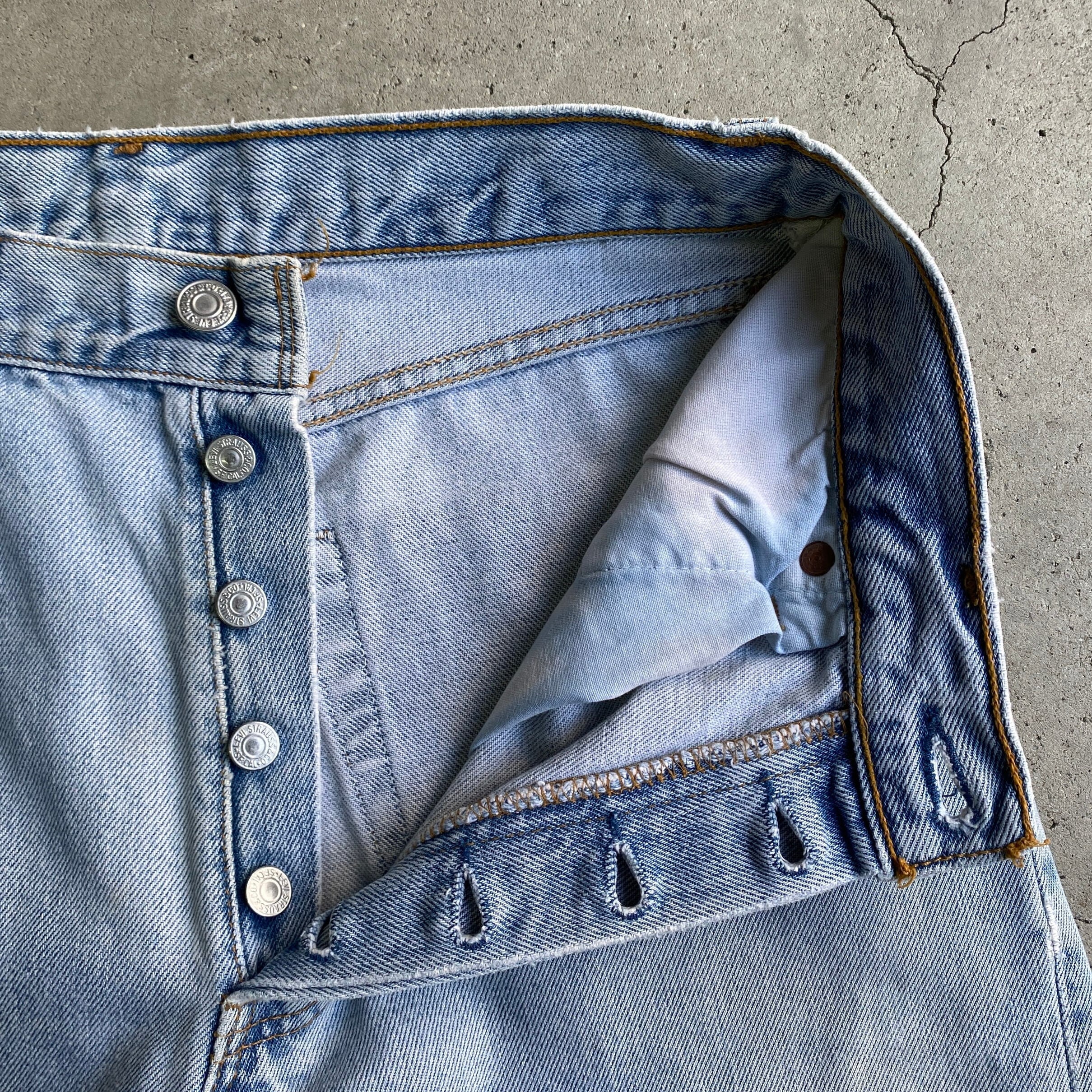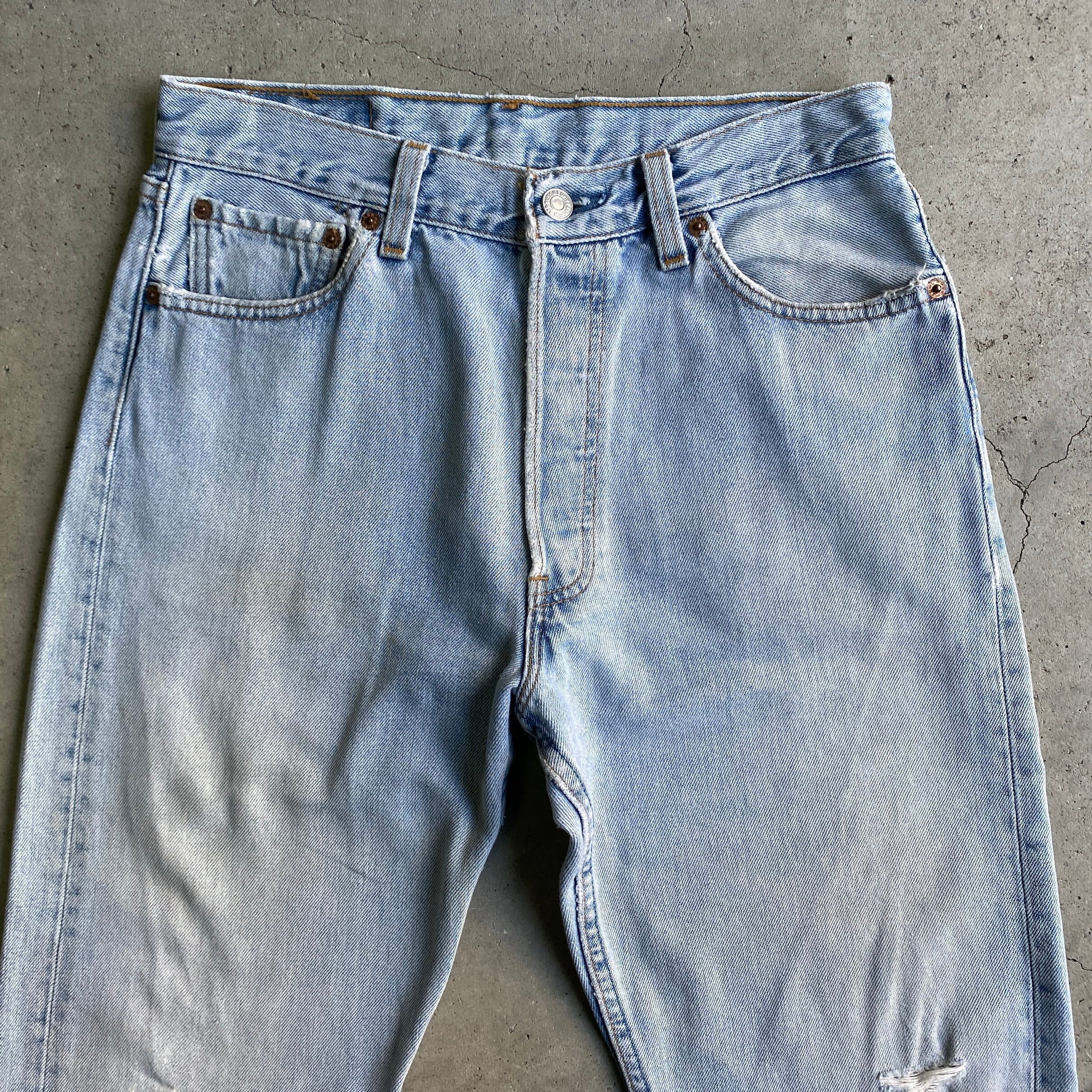 ■90年代 USA製 Levi's リーバイス 501 ストレート デニムパンツ メンズW30 古着 90s ビンテージ ヴィンテージ 97年製 【デニムパンツ】 【ブランド】Levi's リーバイス 【サイズ】表記 W30 L32(計測値w29) ※計測値をご確認ください。 ウエスト(平置き×2)…74 ワタリ幅…29.5 股上…29 股下…80.5 裾幅…18.5 【生産国】USA製 【素材】コットン100% 【状態】色落ち、ダメージや汚れなどの使用感ございます。 画像にてご確認ください。 【c251015157】 ※古着は洗濯、検品などのケアを行っております。(新品・デッドストックは洗濯していません。) ※モニターの発色により実物と異なる場合がございます。予めご了承ください。 ※ 海外直輸入USED品になります。