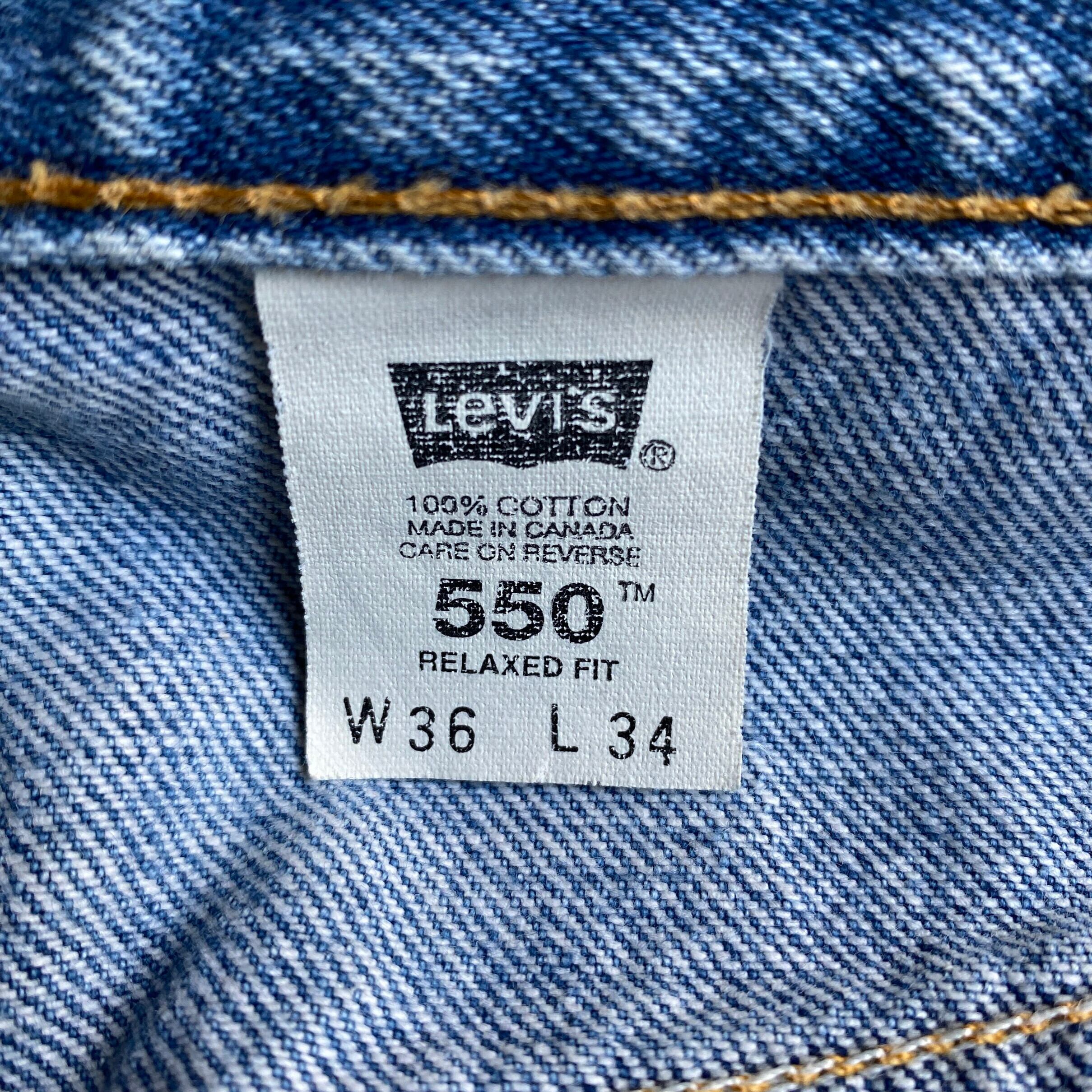 ■カナダ製 90年代 Levi's リーバイス 550 RELAXED FIT テーパードデニムパンツ メンズW36 古着 90s ヴィンテージ ビンテージ バギーデニムパンツ 【デニムパンツ】 【ブランド】Levi's リーバイス 【サイズ】表記 W36 L34(計測値w35相当) ※計測値をご確認ください。 ウエスト(平置き×2)…85 ワタリ幅…36 股上…32 股下…88 裾幅…21 【生産国】カナダ製 【素材】コットン100% 【状態】左ひざ接着剤汚れ、裾ダメージ色落ちや薄汚れなどの使用感ございます。 画像にてご確認ください。 【c251015154】 ※古着は洗濯、検品などのケアを行っております。(新品・デッドストックは洗濯していません。) ※モニターの発色により実物と異なる場合がございます。予めご了承ください。 ※ 海外直輸入USED品になります。