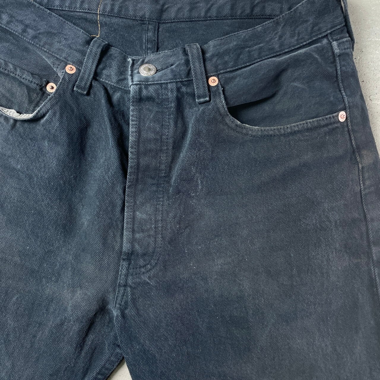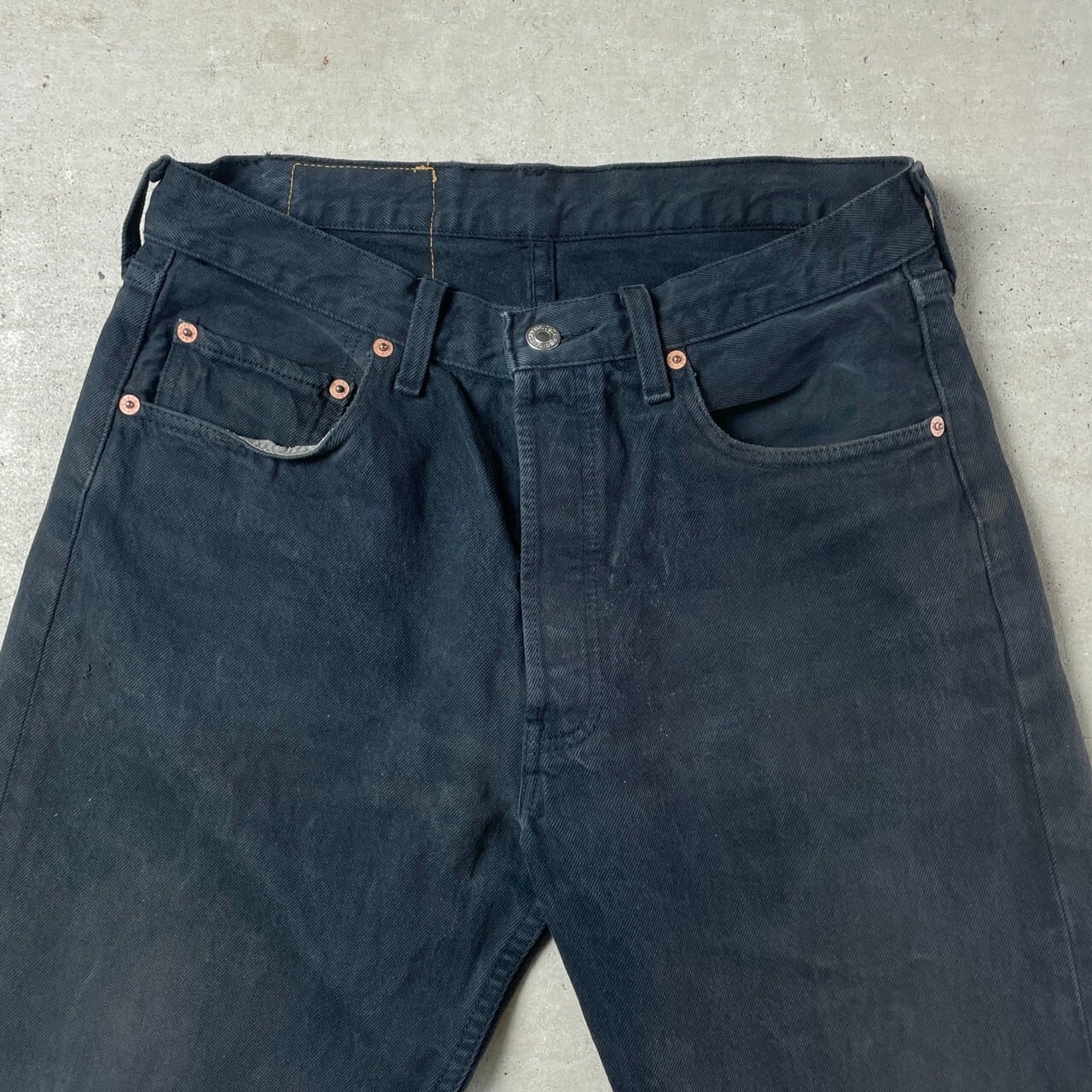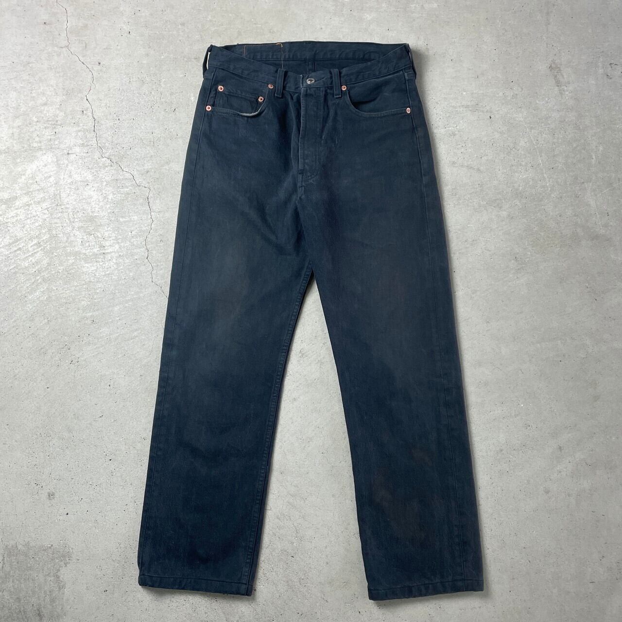 ■90年代 Levi's ユーロリーバイス 501 0196 ブラックデニムパンツ メンズW32 古着 90s ヴィンテージ ビンテージ 後染め ストレートデニムパンツ ブラック 黒【デニムパンツ】/ブラック 【ブランド】Levi's リーバイス ボタン裏刻印:T85(トルコ製造) 【サイズ】表記 W32 L30 ※計測値をご確認ください。 ウエスト(平置き×2)…78 ワタリ幅…31 股上…28.5 股下…72.5 裾幅…20 【素材】コットン100% 【状態】数ヶ所汚れ、バックポケットステッチ取れ、裾の擦り切れ等の使用感がございます。 バックポケットタブが切り取られています。 画像にてご確認ください。 【c251015153】 ※古着は洗濯、検品などのケアを行っております。(新品・デッドストックは洗濯していません。) ※モニターの発色により実物と異なる場合がございます。予めご了承ください。 ※ 海外直輸入USED品になります。