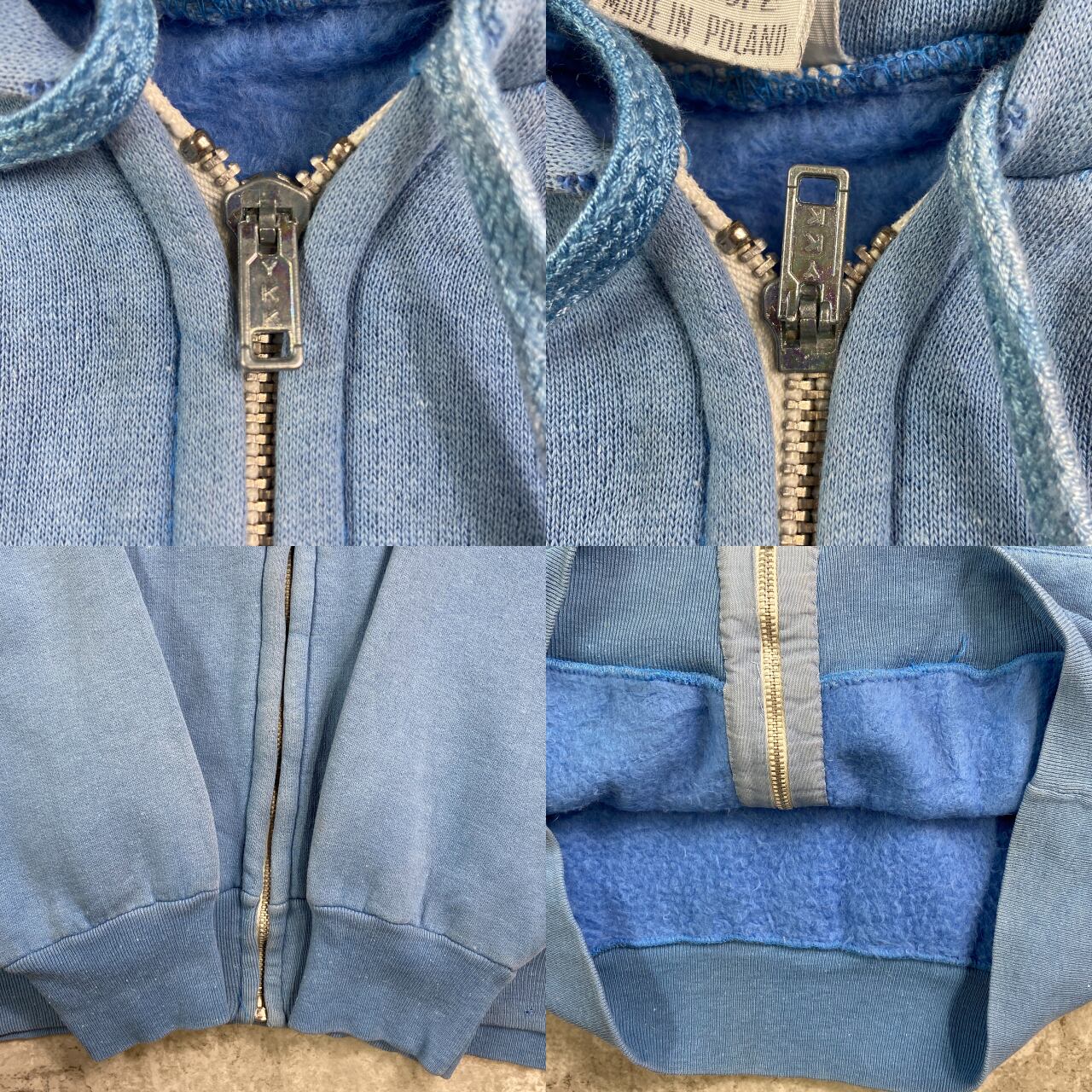 ■70年代 ポーランド製 フルジップ ブランクスウェットパーカー 無地 メンズM 古着 70s ヴィンテージ VINTAGE ジップパーカー フーディー ラグラン YKK アルミジッパー 片爪 ピンロック ライトブルー 水色【パーカー】/ブルー 【サイズ】表記 M ※計測値をご確認ください。 着丈…64 身幅…52 裄丈…79 袖丈(脇下計測)…51 【生産国】ポーランド製 【素材】コットン60% アクリル40% 【状態】フロント裾リブや袖に生地擦れがございます。 画像にてご確認ください。 【c251014010】 ※古着は洗濯、検品などのケアを行っております。(新品・デッドストックは洗濯していません。) ※モニターの発色により実物と異なる場合がございます。予めご了承ください。 ※ 海外直輸入USED品になります。