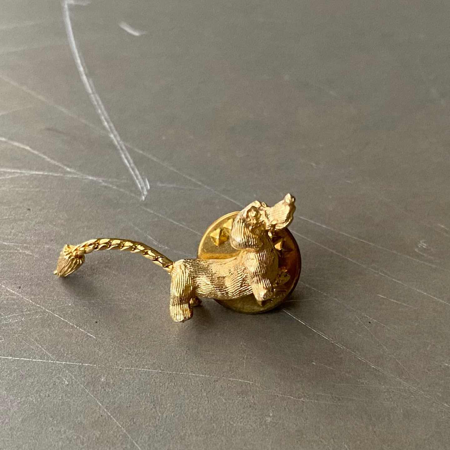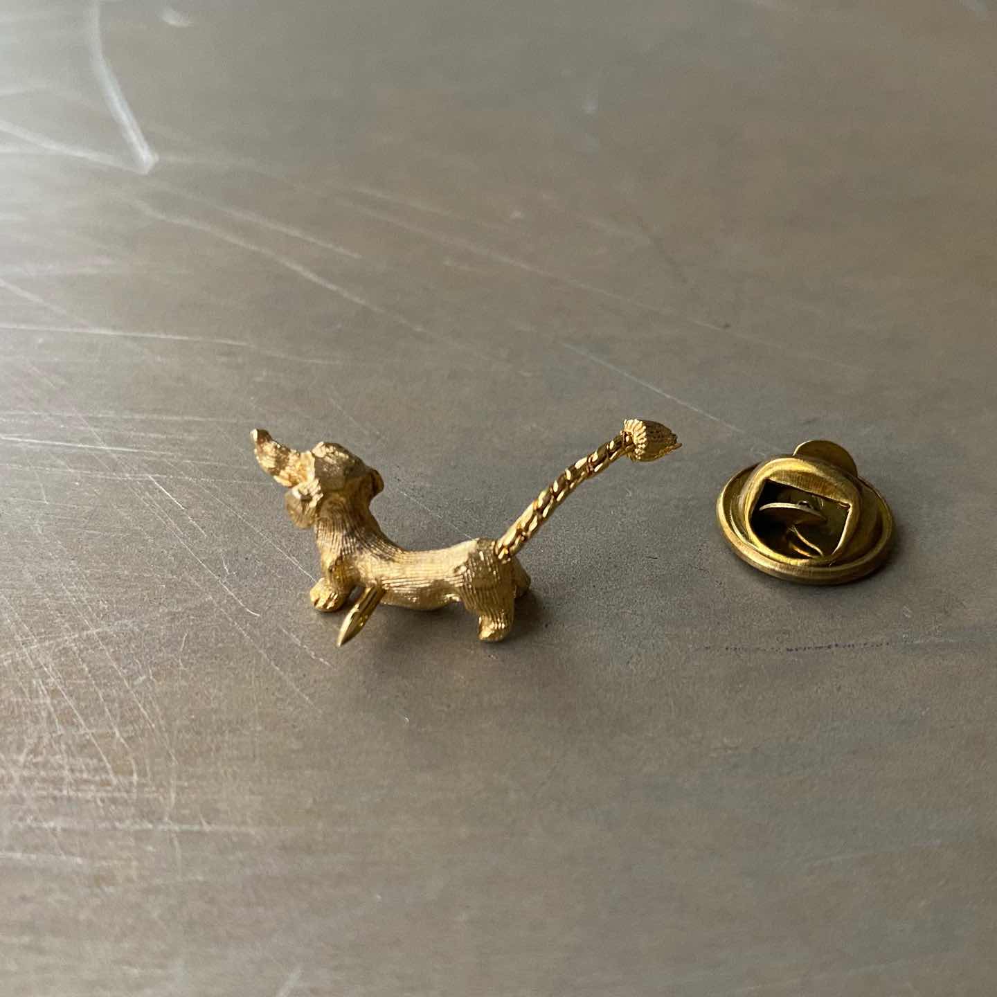 レトロ可愛いダックスフンドののUSAヴィンテージピンブローチ。しっぽの部分はチェーンで出来ていて、ゆらゆらと動く素敵な作りです。 □Materials メタル(ゴールドメッキ) □Size 約H1×W2㎝(しっぽ1.7㎝) 3g □Condition【B】 経年によるメッキ変色がみられます。中古品であることをご理解のうえお買い求めください。ご購入前にショッピングガイドのご確認をお願いいたします。 【S】未使用 【A】未使用に近い 【B】やや使用感あり 【C】使用感あり Item No.3517
