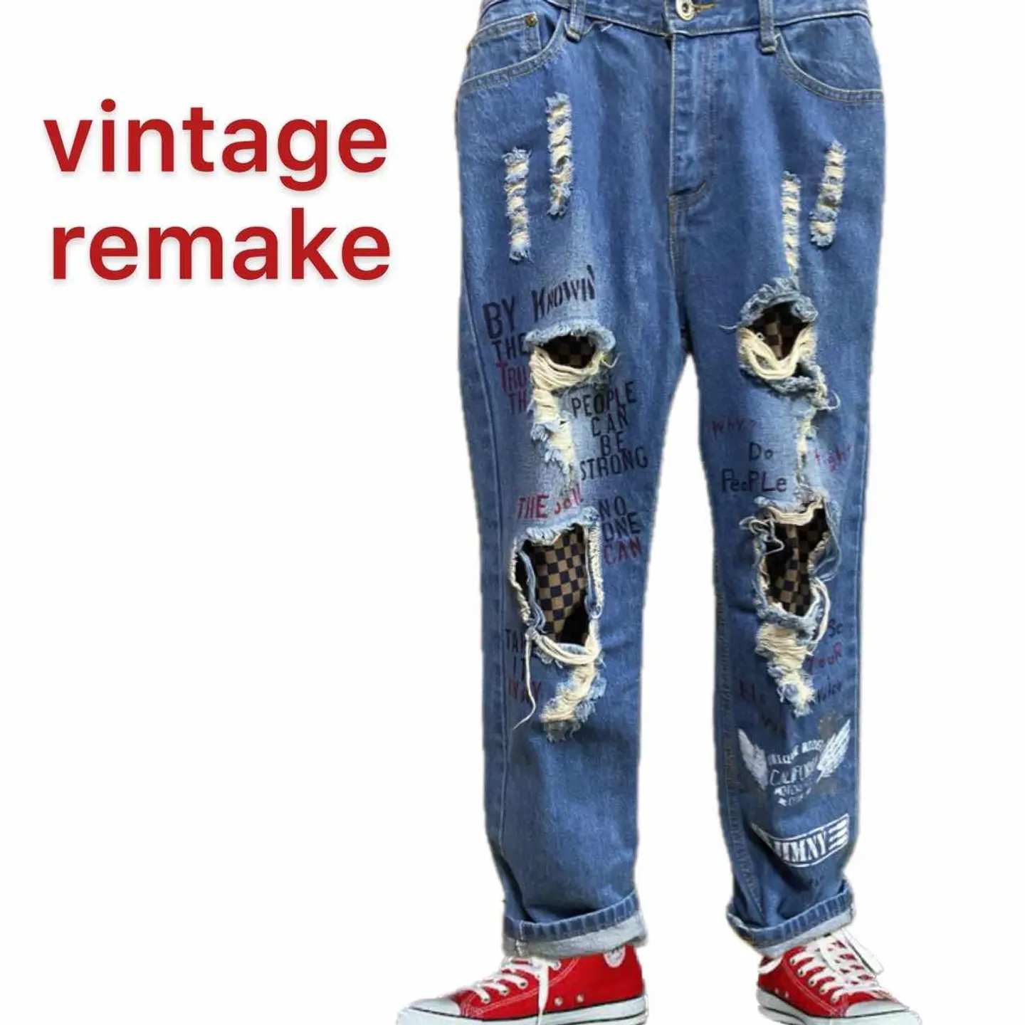 70s remake デニム grunge crust custom デニム好きのかつ、洋裁学校卒の私が作った品質抜群リメイク。 【デニムは、シルエット、に拘る!!※着回しきくか?が、重要!】 !!効きます!!これ!! 1.もう、一番好き、トップ着画!!デニムに、コンバース!ちょいスカーフで、 大人アメカジ、トラッドミックス、 2.カートコバーン風を、現代に、写し込む、アメカジグランジ!! ↑の、ファーガーデは、販売してます、もしまとめ買いしてくれたら、もう、大好きです^_^ ※は?俺綺麗目、大人アメカジだしって、方、、、 任せて下さい^_^、よゆー、で、す、 3.fudge コーデ綺麗目、custom、ステンカラーに 白インナー、余裕っす! •brand C&J remake grungecrust custom •data 70s vintage フルリメイクまるで、何年も大切に育てたように、しました、 •point 手作業で、文字プリント、クラッシュ、インに、フラッグアクセント縫い付け、フェード加工 縦落ち、ダメージ加工は、ホツレ防止施しました^_^ 頑張りました^_^、 お買い上げ後すぐ着用できるよう。スタイリング得意な。私を信用下さい^_^、 ▷size◁ 平置き片面採寸【㎝表記】 表記size32インチくらい??XL表記だが、まったくもって、S-Lくらいです、 よくある、昔の。 【※ウエストのみ、メジャーで一周採寸】 ウエスト84まで、ベルトループあるんで対応 股上27 股下71 腿渡り幅23 裾幅17美しく決まるシルエット モデル170㎝ 普段30インチジャストの私が余裕あります。 ▷material◁ デニム70vintage激レアC&J使用!! ▷condition◁ 最高!!古着すきには、たまらない一本! ※入念にチェック済み #リメイク #カートコバーン #グランジ #個性派