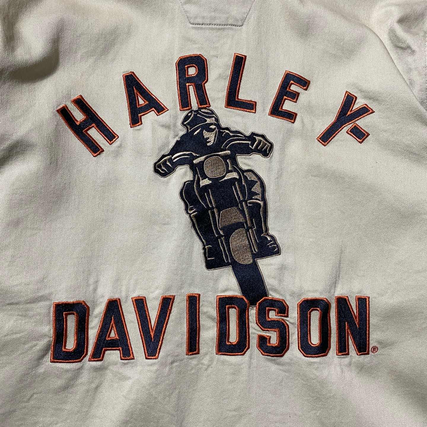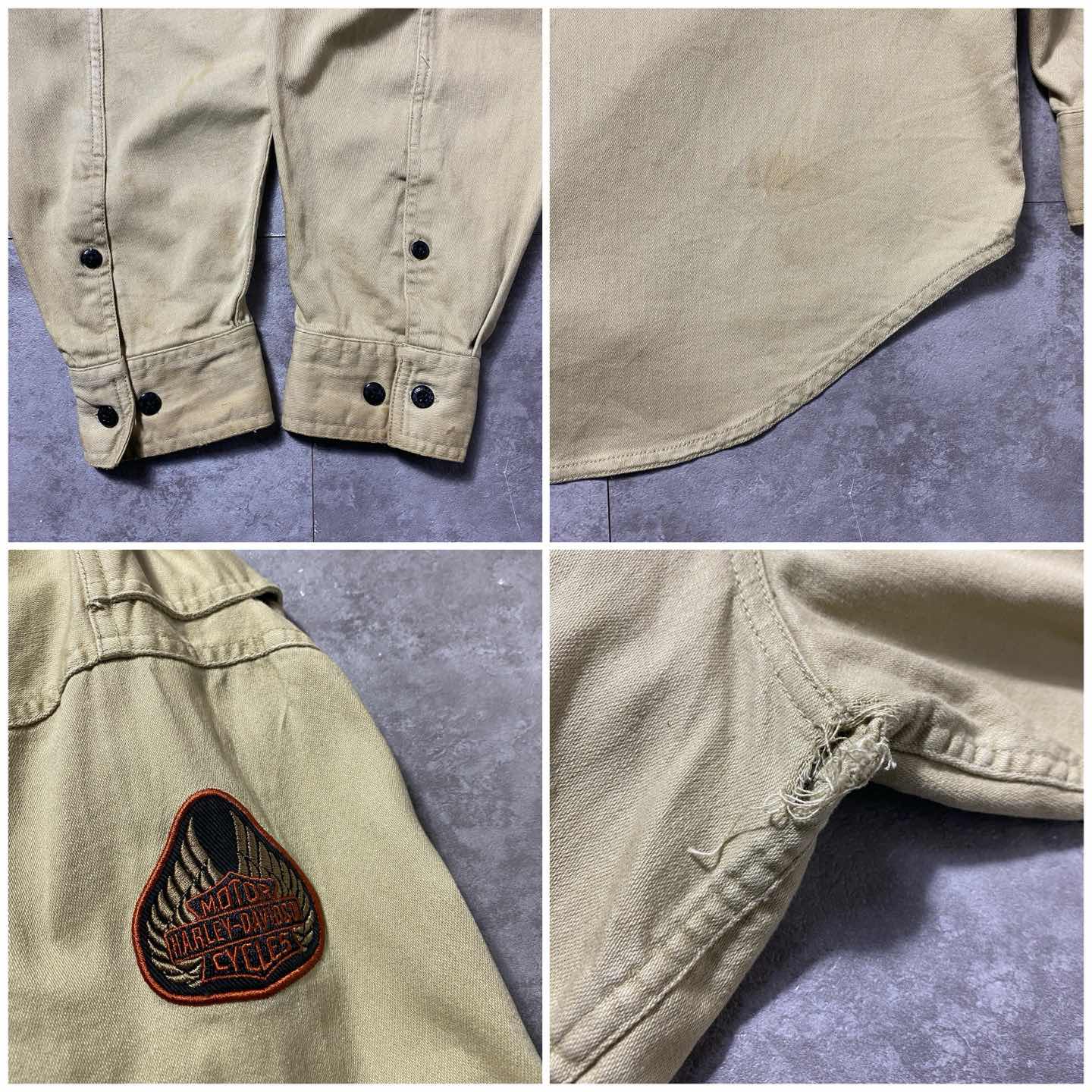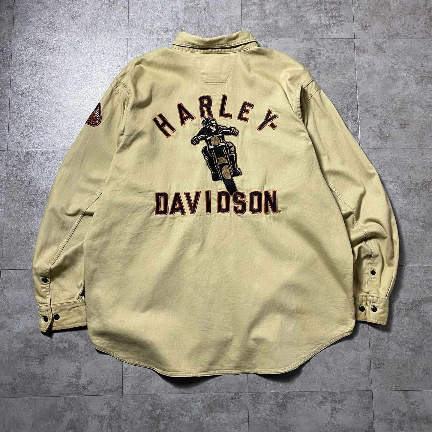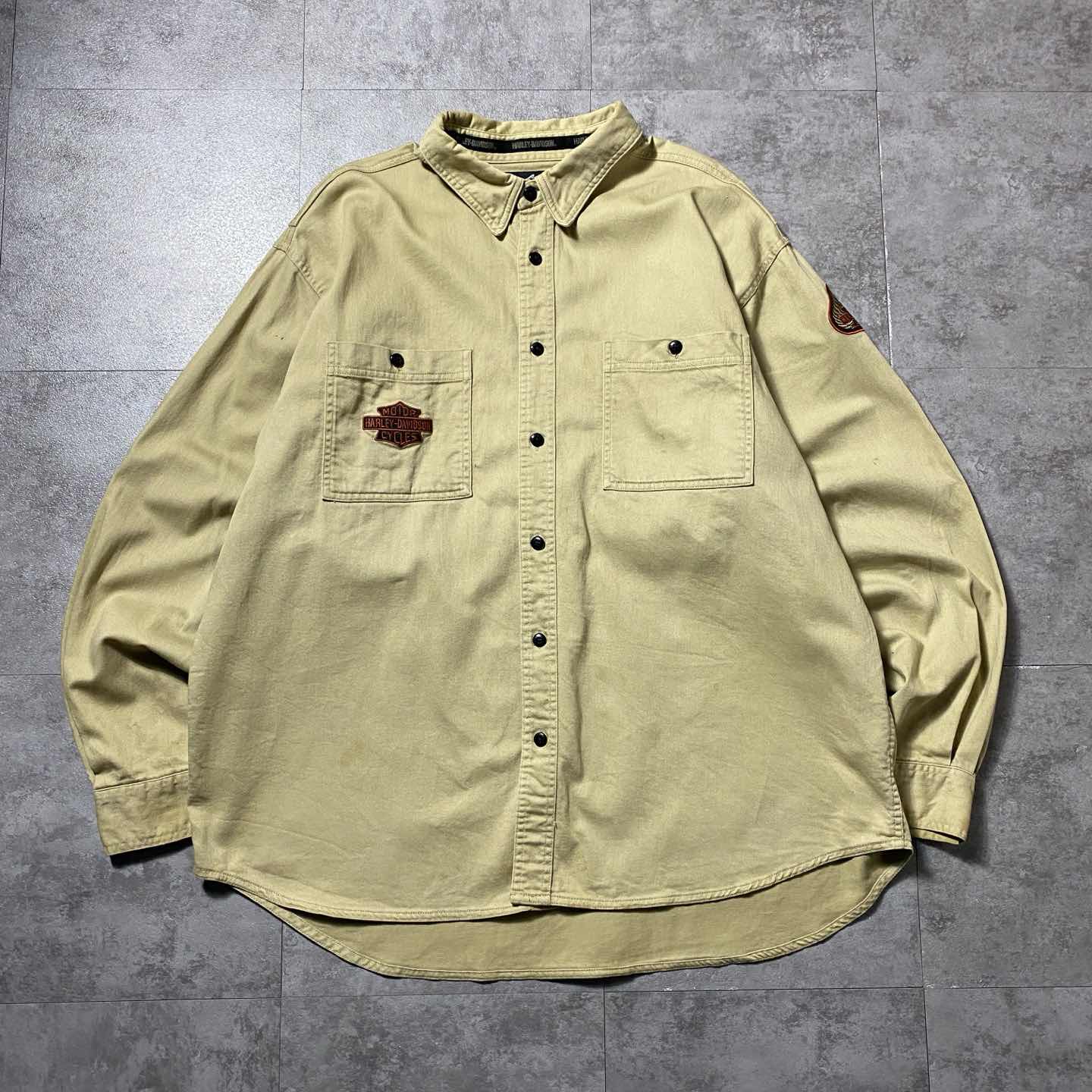 ハーレーダビッドソン XXLサイズ バックロゴ バイカー ダメージ ワークシャツ