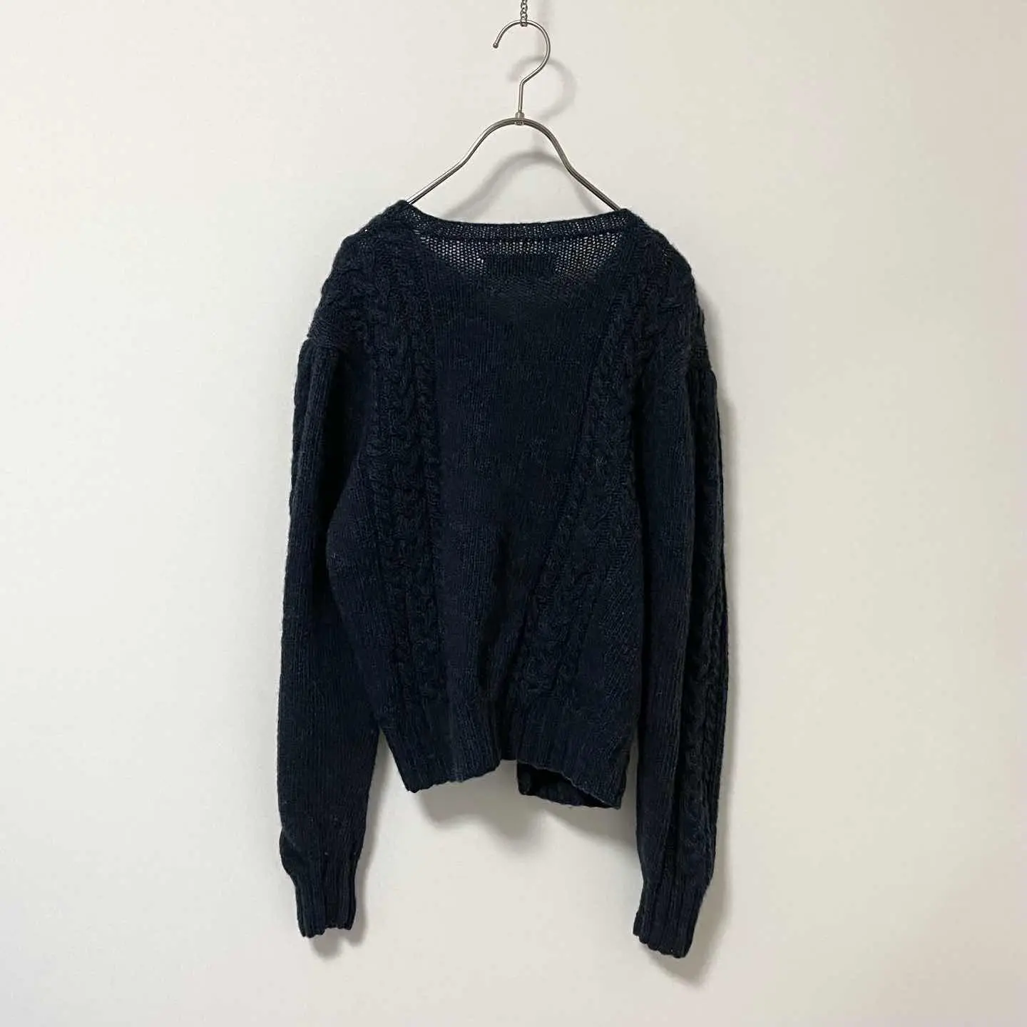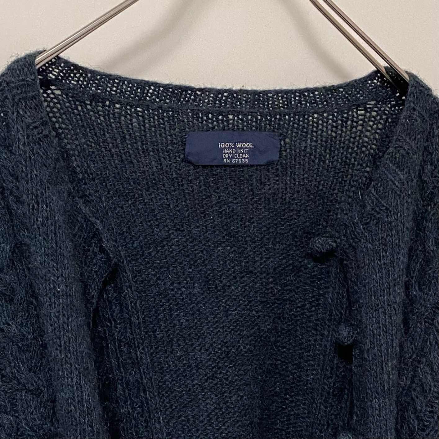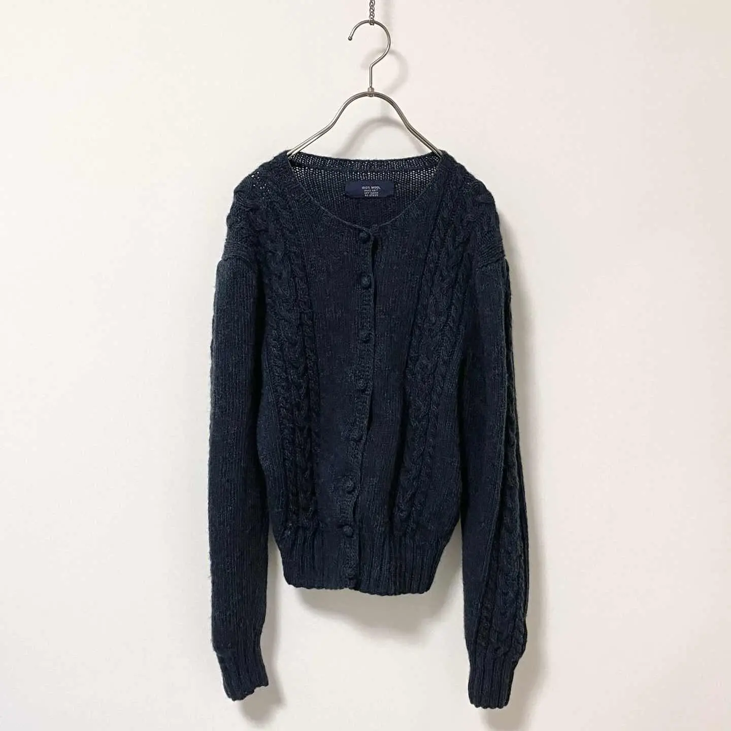 レトロなケーブル柄が素敵な手編みのUSA古着ニットカーディガン。暖かみのあるウール素材でほどよくゆとりのあるシルエット。リブ付きでボタンをしめると裾の部分がスッキリとした印象になり、ワイドなボトムスともバランス良くコーディネートしていただけます。一枚でも重ね着スタイルにも活躍してくれる一着です。 □Size (着用感レディースM程度) 着丈55㎝ 身幅47㎝ 肩幅46㎝ 袖丈60㎝ (平置き) □ウール100% □Condition【B】 目立ったダメージの無い良好な古着コンディションです。中古品であることをご理解のうえお買い求めください。ご購入前に必ずショッピングガイドのご確認をお願いいたします。 【S】未使用 【A】未使用に近い 【B】やや使用感あり 【C】使用感あり Item No.3525
