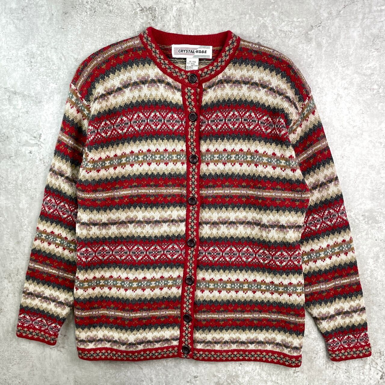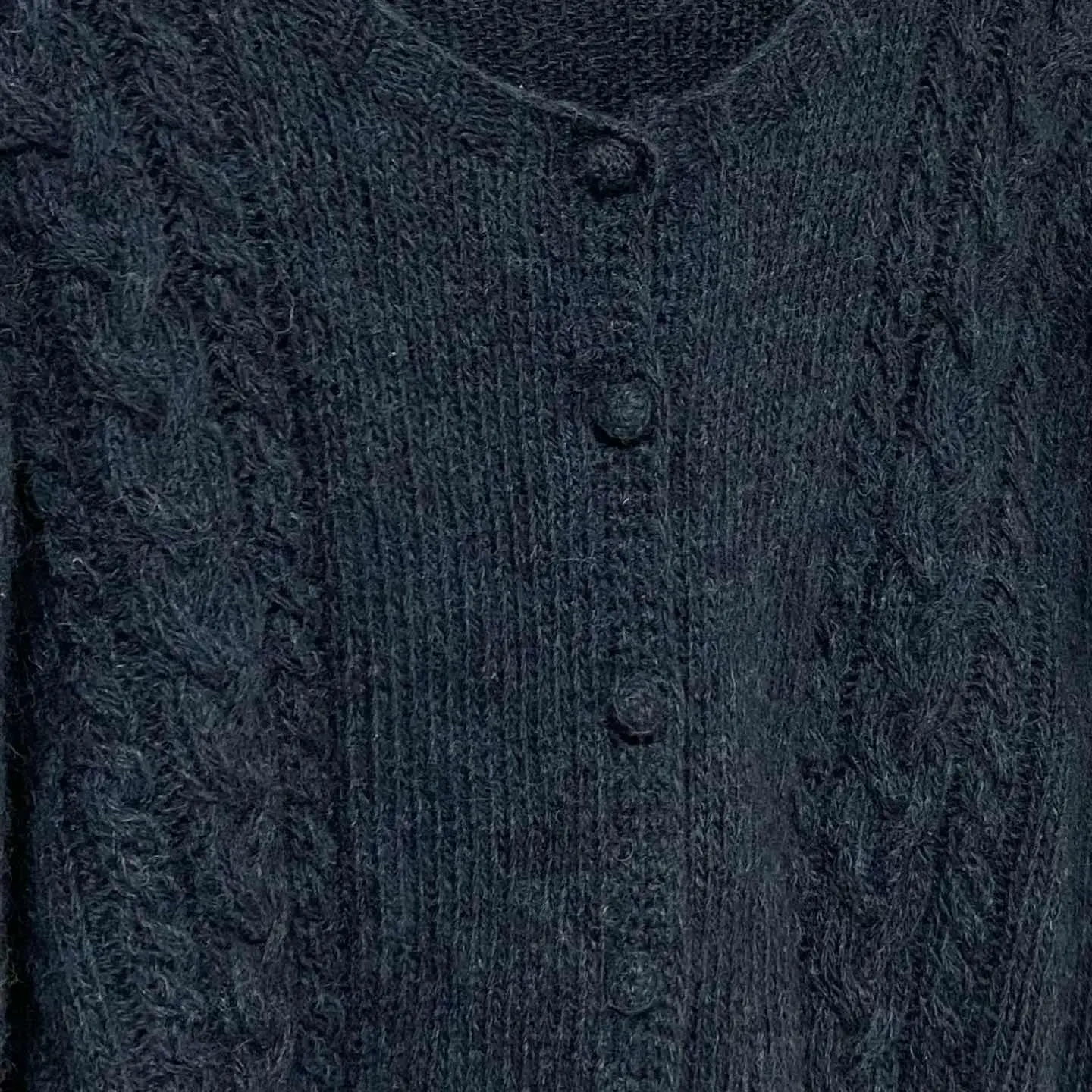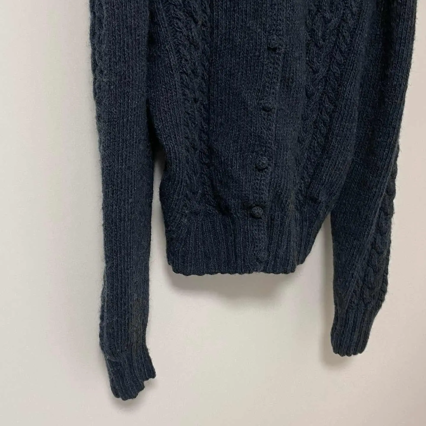 レトロなケーブル柄が素敵な手編みのUSA古着ニットカーディガン。暖かみのあるウール素材でほどよくゆとりのあるシルエット。リブ付きでボタンをしめると裾の部分がスッキリとした印象になり、ワイドなボトムスともバランス良くコーディネートしていただけます。一枚でも重ね着スタイルにも活躍してくれる一着です。 □Size (着用感レディースM程度) 着丈55㎝ 身幅47㎝ 肩幅46㎝ 袖丈60㎝ (平置き) □ウール100% □Condition【B】 目立ったダメージの無い良好な古着コンディションです。中古品であることをご理解のうえお買い求めください。ご購入前に必ずショッピングガイドのご確認をお願いいたします。 【S】未使用 【A】未使用に近い 【B】やや使用感あり 【C】使用感あり Item No.3525