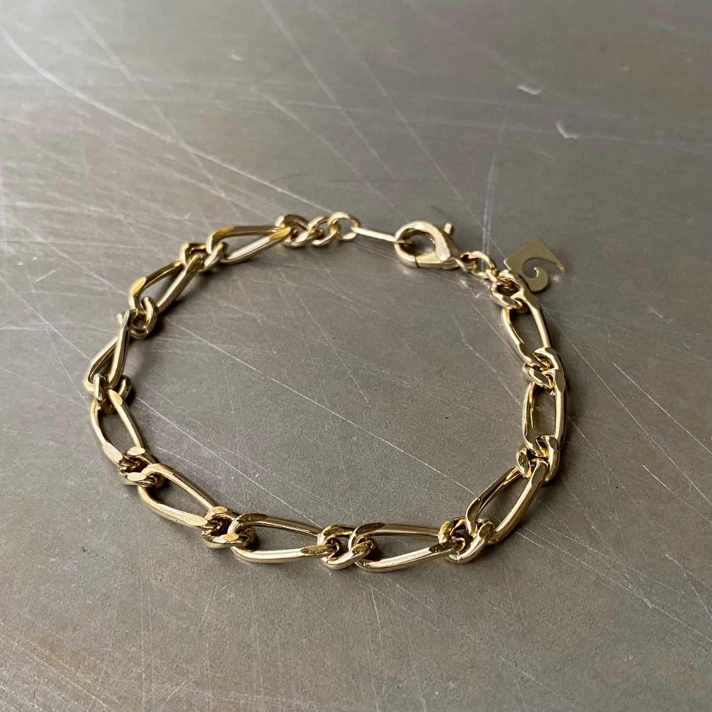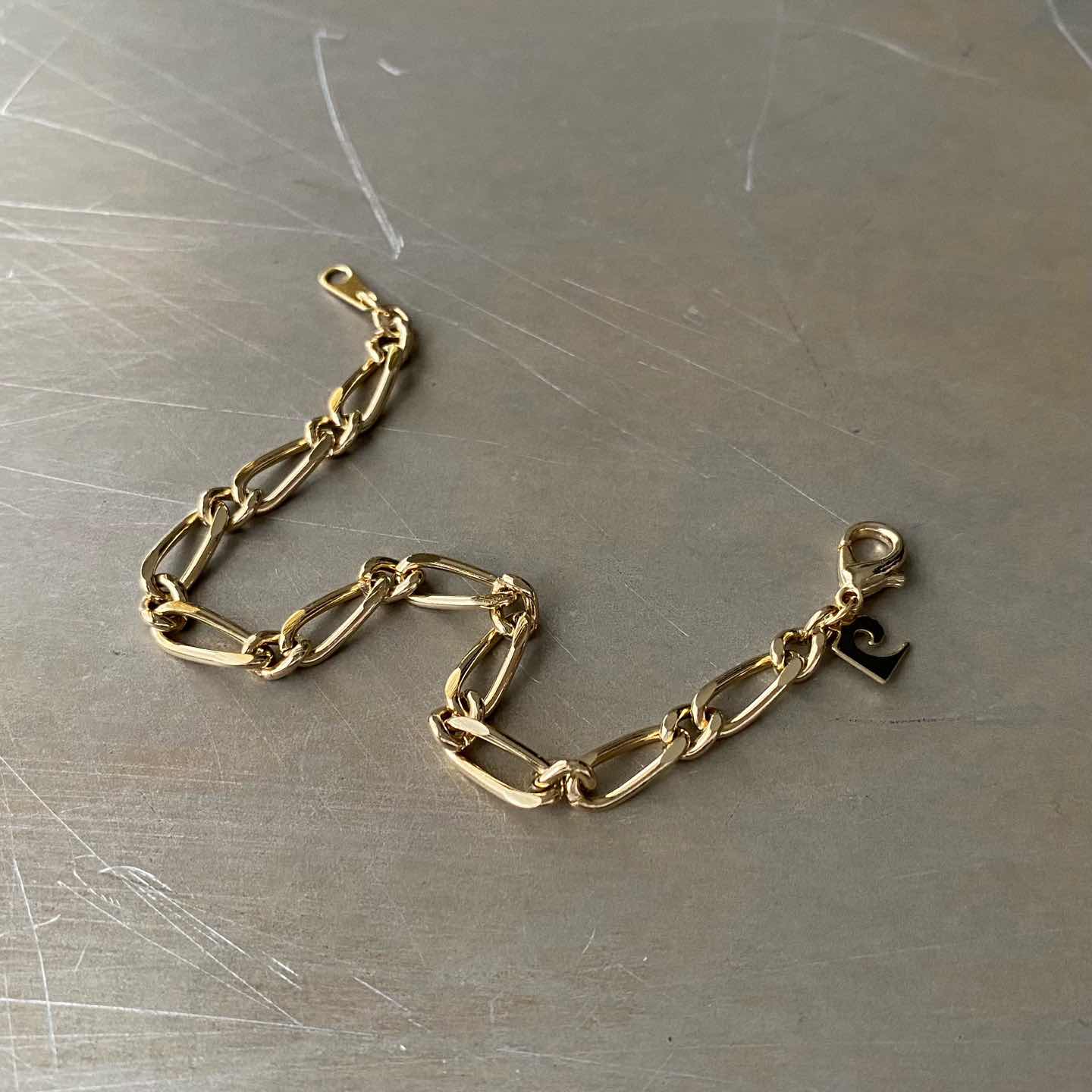 「Pierre Cardin」のUSAユーズドブレスレットです。シンプルなチェーンにさりげなくブランドロゴのパーツが揺らめくお洒落なデザイン。デイリーユースにぴったりなスタイリングを問わずお使いいただけるアイテムです。 □Materials メタル(ゴールドメッキ) □Size 全長 約17.5㎝ 幅 約5㎜ 7g □Brand Pierre Cardin □Condition 【A】 使用感の少ない良好な状態です。中古品であることをご理解のうえお買い求めください。ご購入前に必ずショッピングガイドのご確認をお願いいたします。 【S】未使用 【A】未使用に近い 【B】やや使用感あり 【C】使用感あり Item No.3523