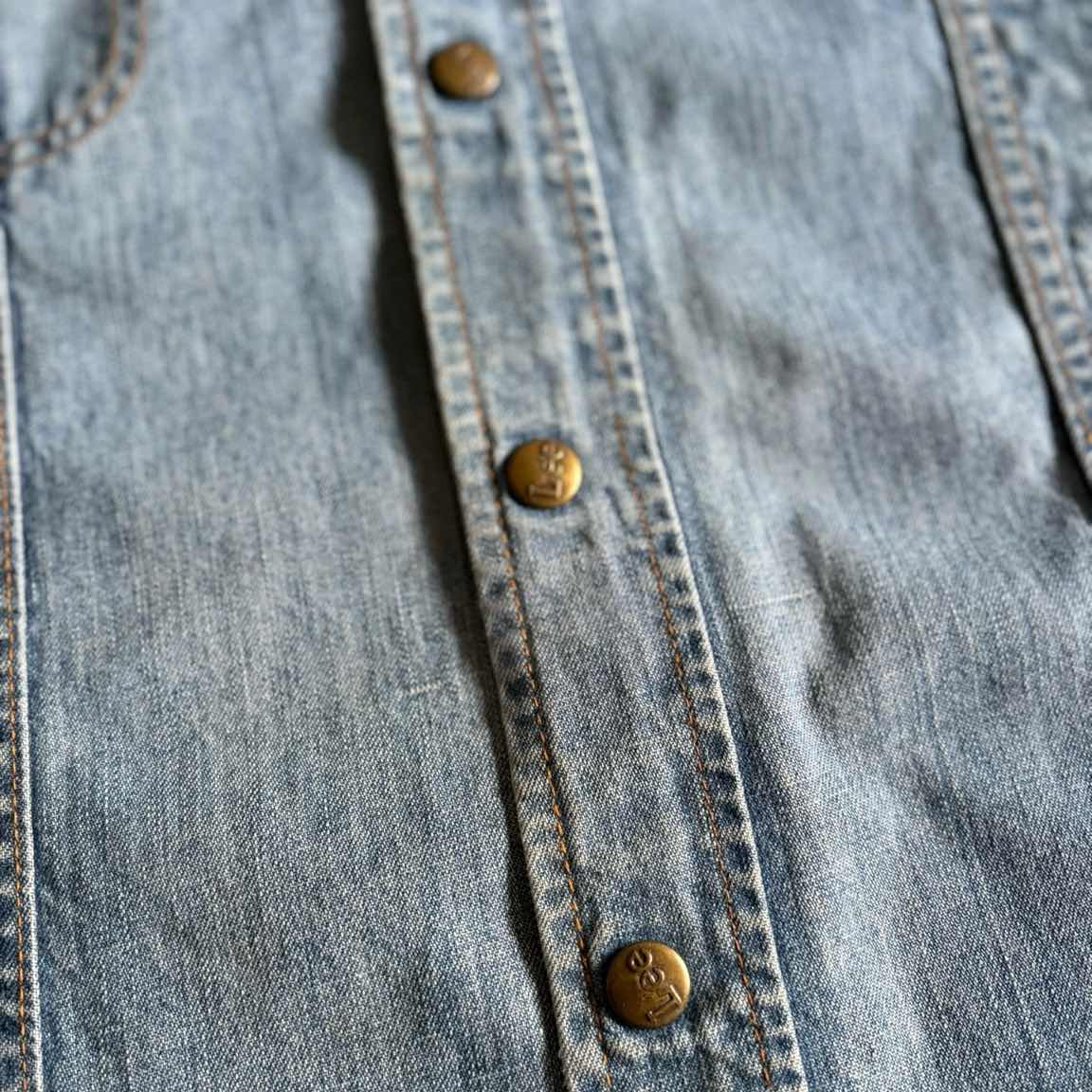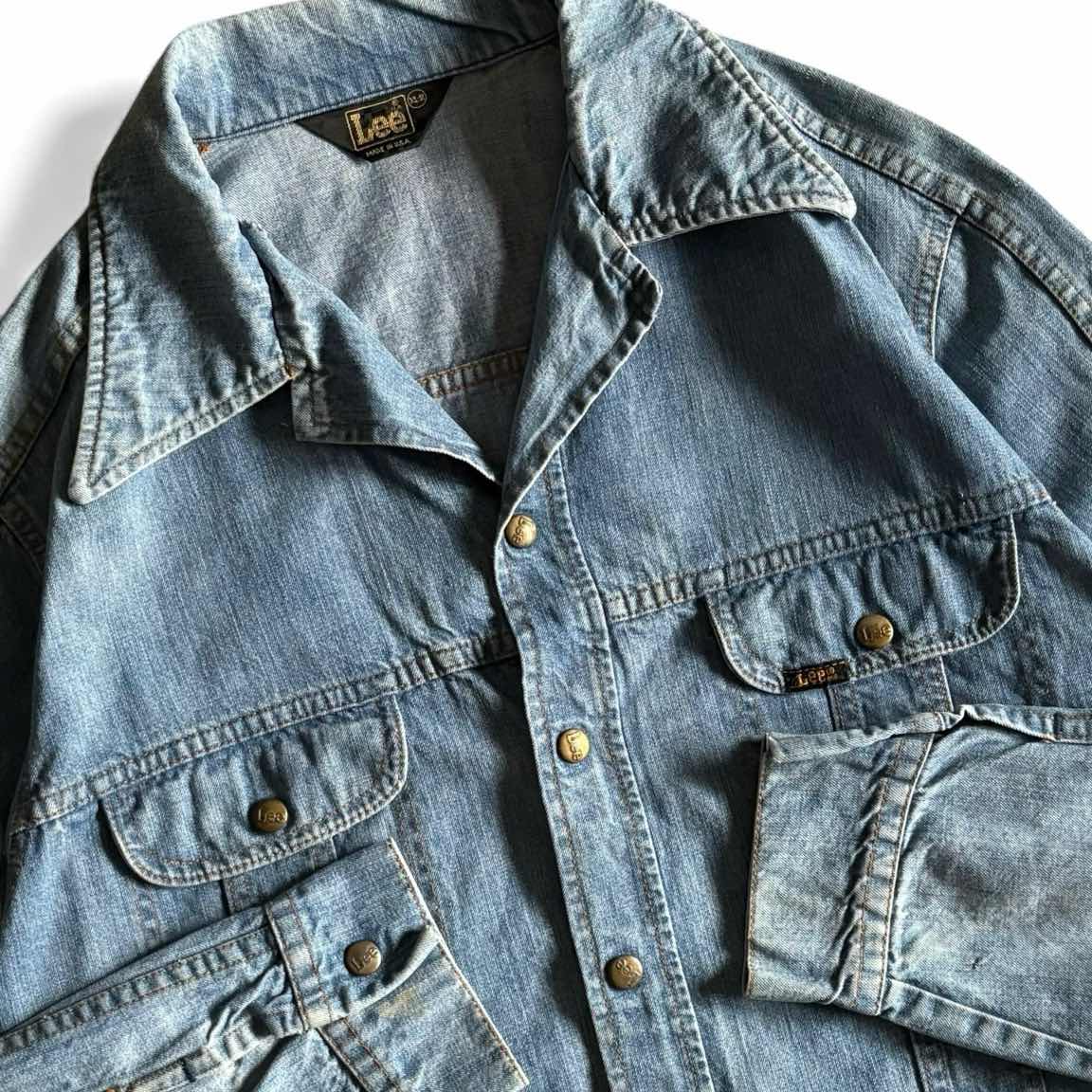 ○商品説明 70s USA製 Lee 70年代アメリカ製のLee。 開襟タイプで襟が大きく尖っているデザインが 特徴な一枚。 1970年代のファッションを象徴するディテールです。 両胸にフラップ付きのボタンポケット、 左胸ポケットのフラップ横には、Leeのピスネームが デザインされております。 ボタンにはLee刻印入りのオリジナルメタルボタンが使用されています。 気になった方は是非。 ○サイズ 表記XL 平置き ・肩幅46cm ・身幅63cm ・袖丈62cm ・着丈76cm ○商品の状態B A:使用感がほとんどなく、汚れやシミもなし B:多少使用感はあるが、汚れやシミも少ない C:使用感があり、汚れやシミがある D:使用感があり、大きな汚れや破れあり ○色 ブルー #70s#USA製#Lee#リー#デニムシャツ#ジャケット