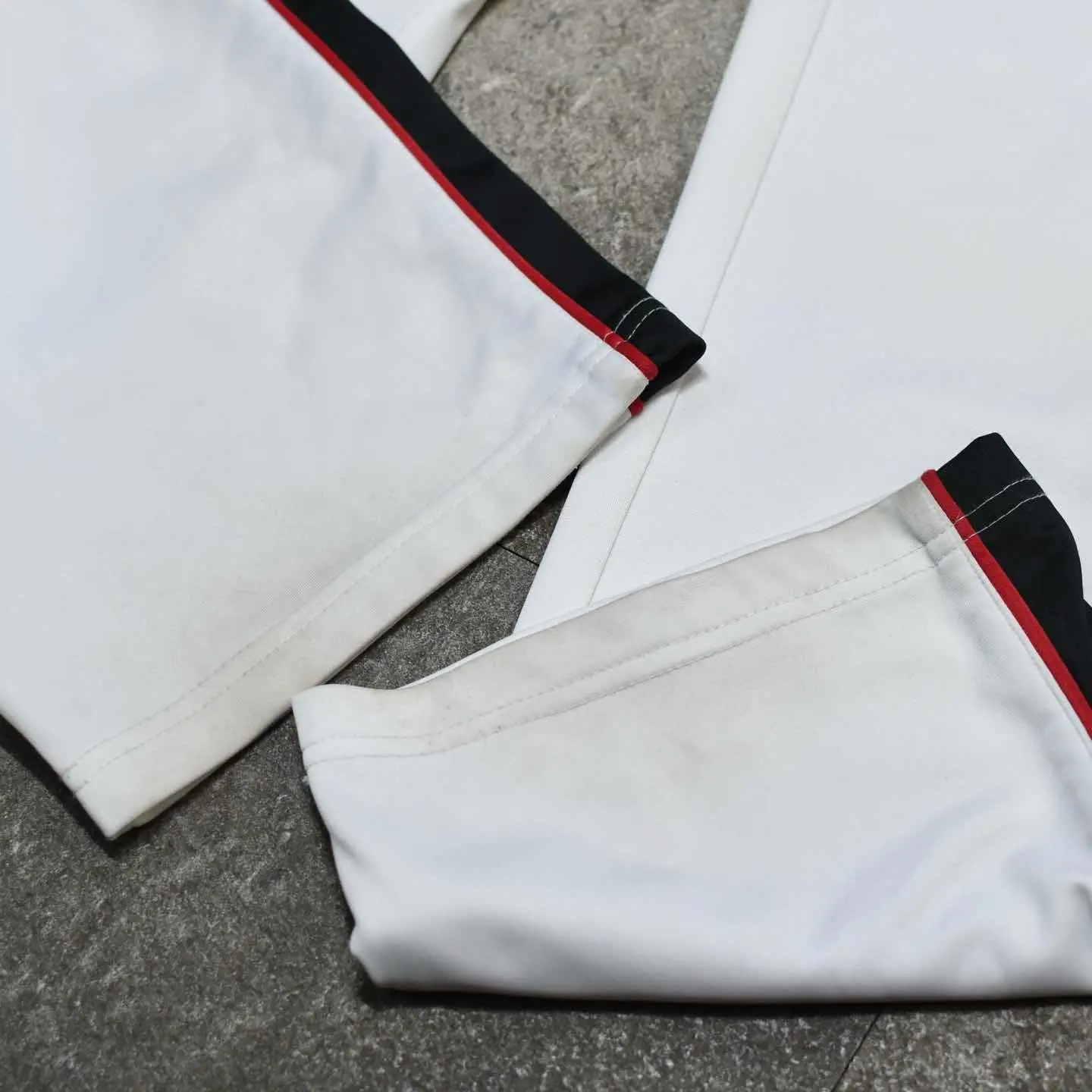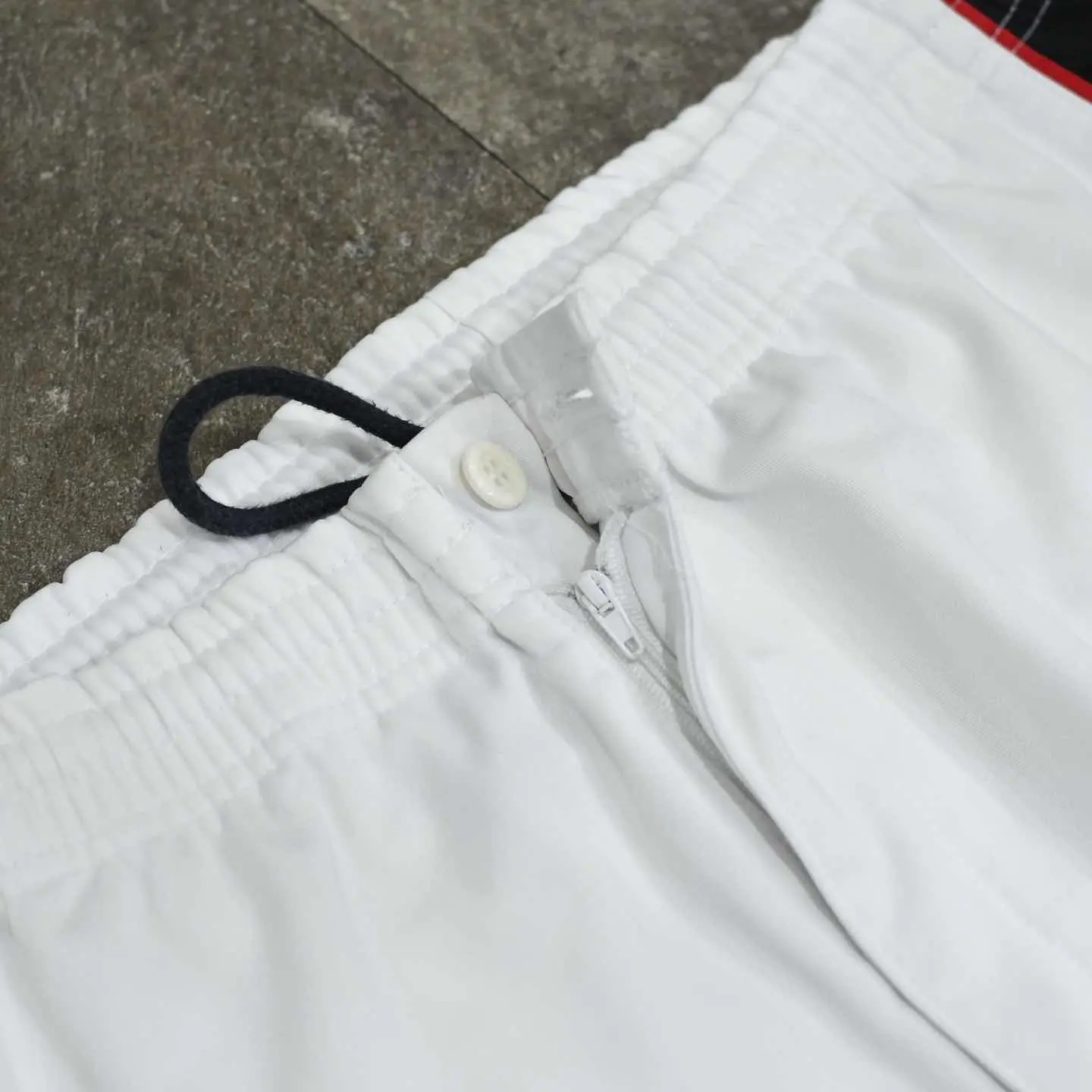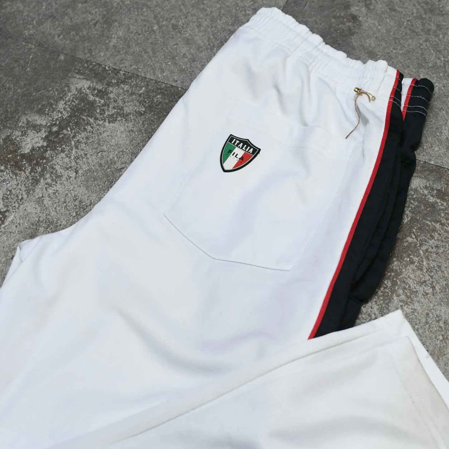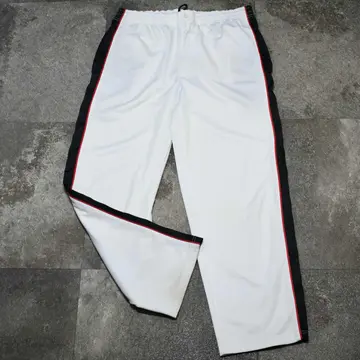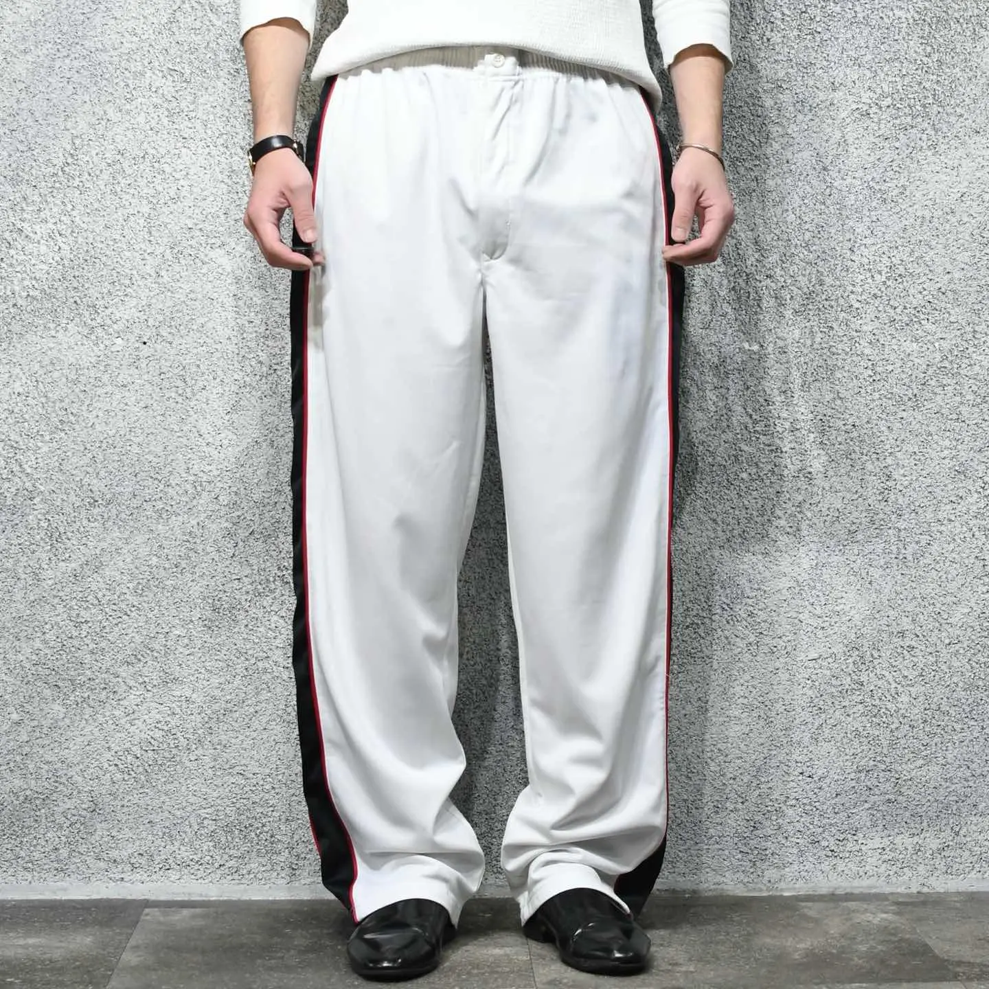 SIZE:- ウエスト~112cm(ドローコード付き) 総丈107cm 股下78cm わたり37cm 裾幅24cm fabric/質感よりpoly 着用画像 177cm/64kg イタリアのスポーツウェアブランドが手掛けた、 イタリアらしい色使いなトラックパンツ。 トラックパンツで白、パンツで白となると、 どこか汚れそうで心配になりますが、 前の持ち主が裾を引きずってくれたおかげで、 振り切って雑にも穿ける白トラック。 太めのシルエットで、フロントにはスラックスなど 他のパンツ同様の前立てがあり、トラックパンツでは 比較的珍しい作りなのも惹かれました。 裏地はフリース生地で、寒い季節に活躍する トラックパンツとして、コートや レザージャケットなどと合わせて外したいなと。 ※裾上げ等のレングス直しにつきましては、 購入前に、必ずご連絡お願い致します。 ※撮影状況により、実物と多少色が異なる 場合がございます。 ※古着を取り扱っているため、気づかない汚れや ほつれがある場合がございます。 予めご了承ください。 ※サイズは着用感で選んでおり、 表記サイズは説明欄の最初に記載しております。 old vintage ヴィンテージ used 80's 90's POLO RALPH LAUREN Eddie Bauer OLD GAP LANDS' END ランズエンド LLBean エルエルビーン オールドギャップ エディーバウアー ラルフローレン ブルックスブラザーズ Brooks Brothers 白 ホワイト などがお好きな方 #vintage #old #used #90s #80s #古着 #ヴィンテージ #LLBean #EddieBauer #oldgap #LANDSEND #NAUTICA #ラルフローレン #POLORALPHLAUREN ##BrooksBrothers #トラックパンツ #ワイドパンツ #イージーパンツ 12000