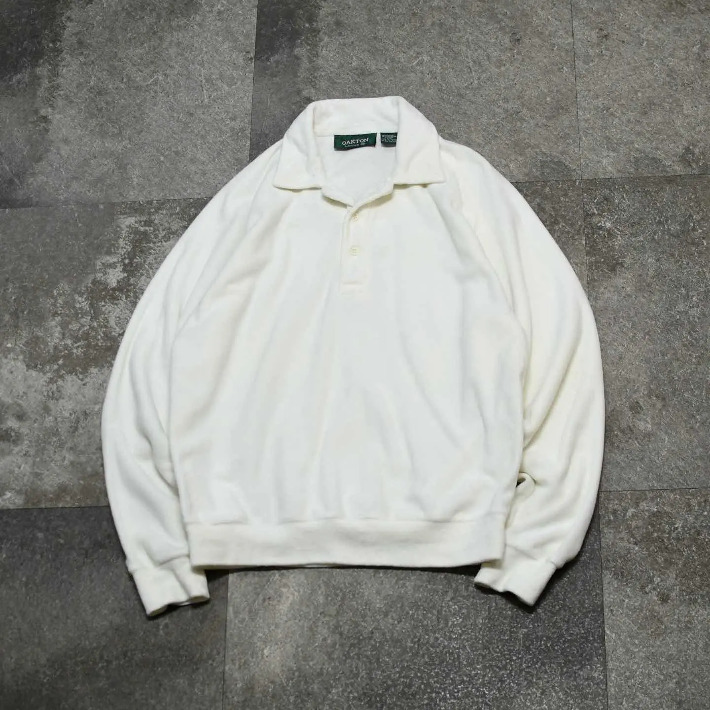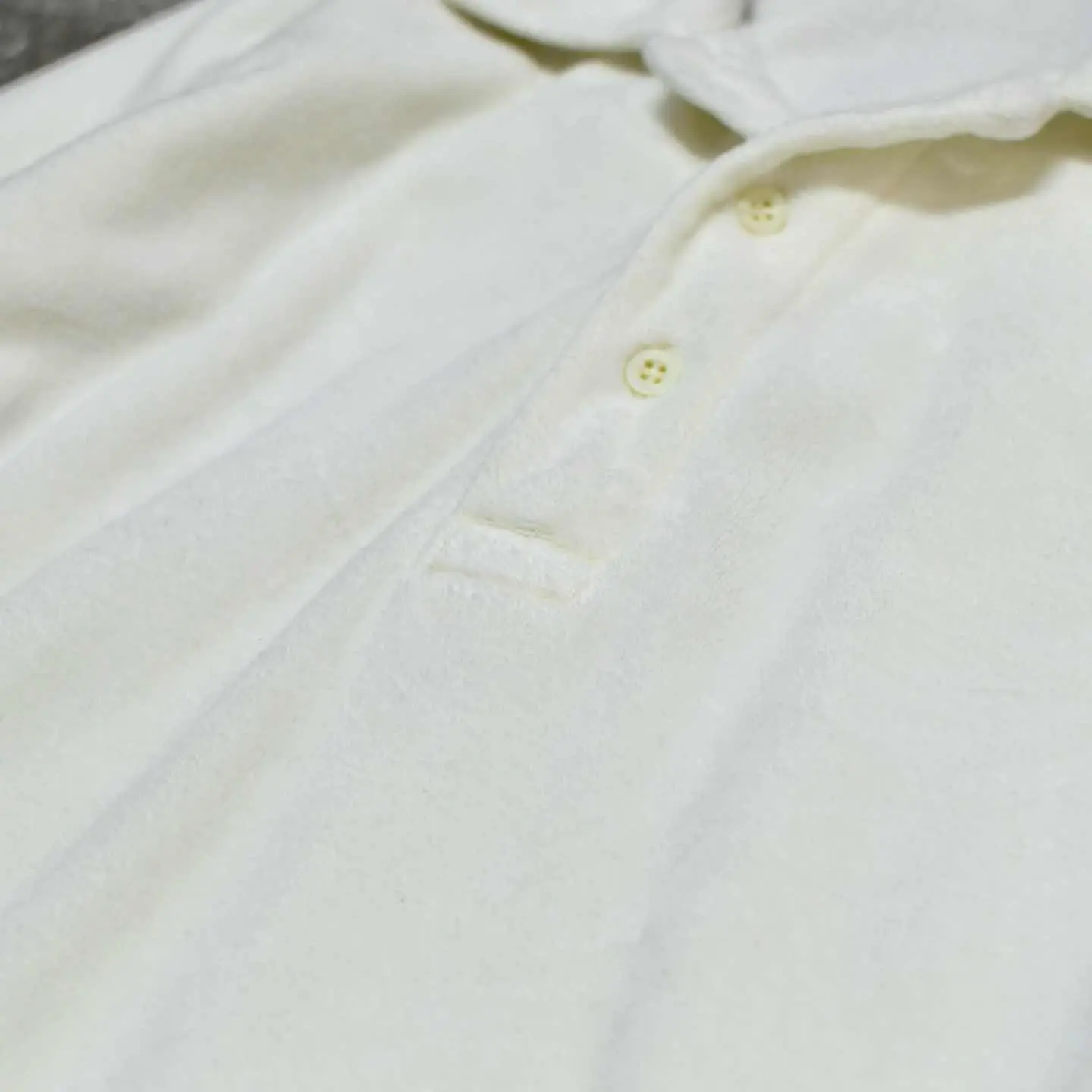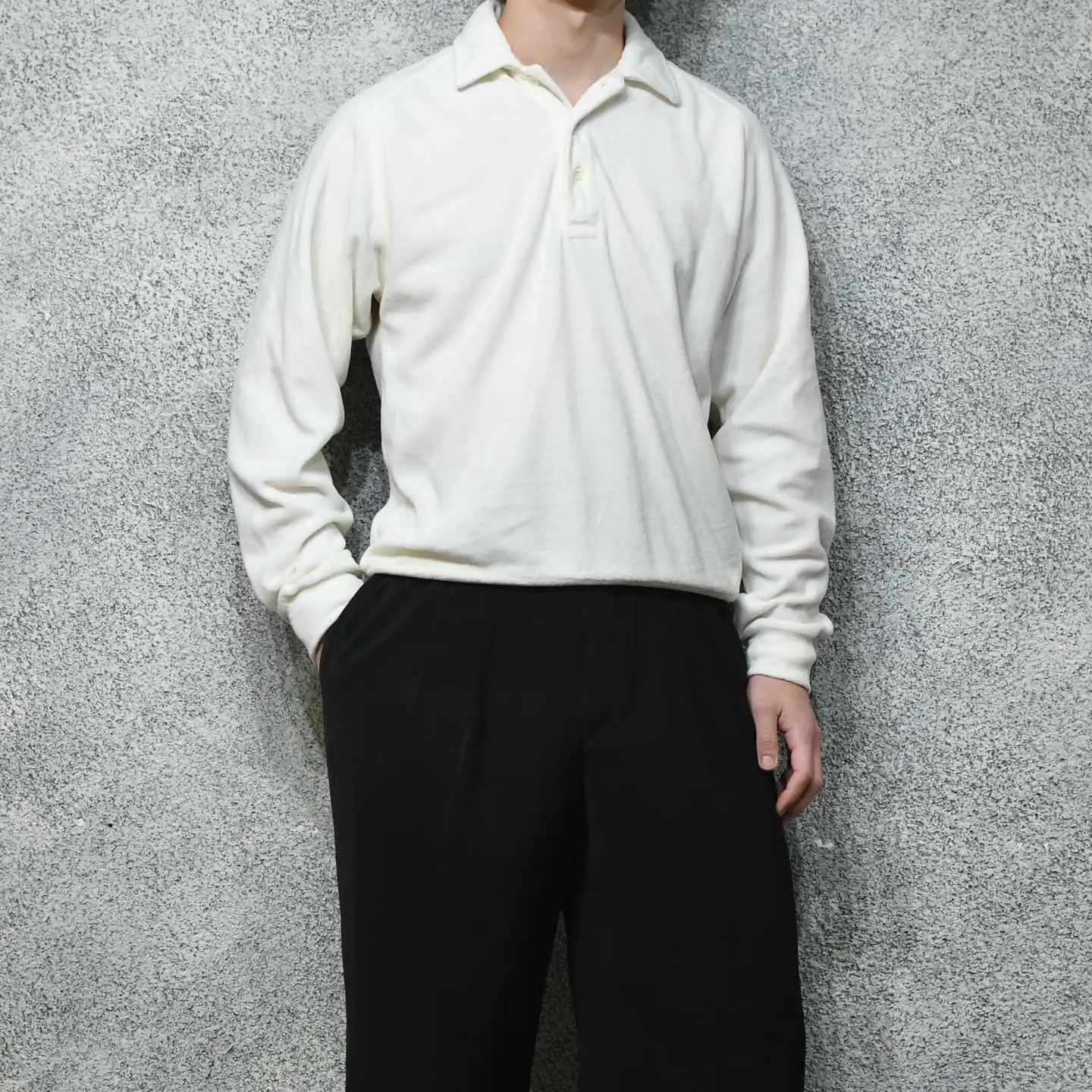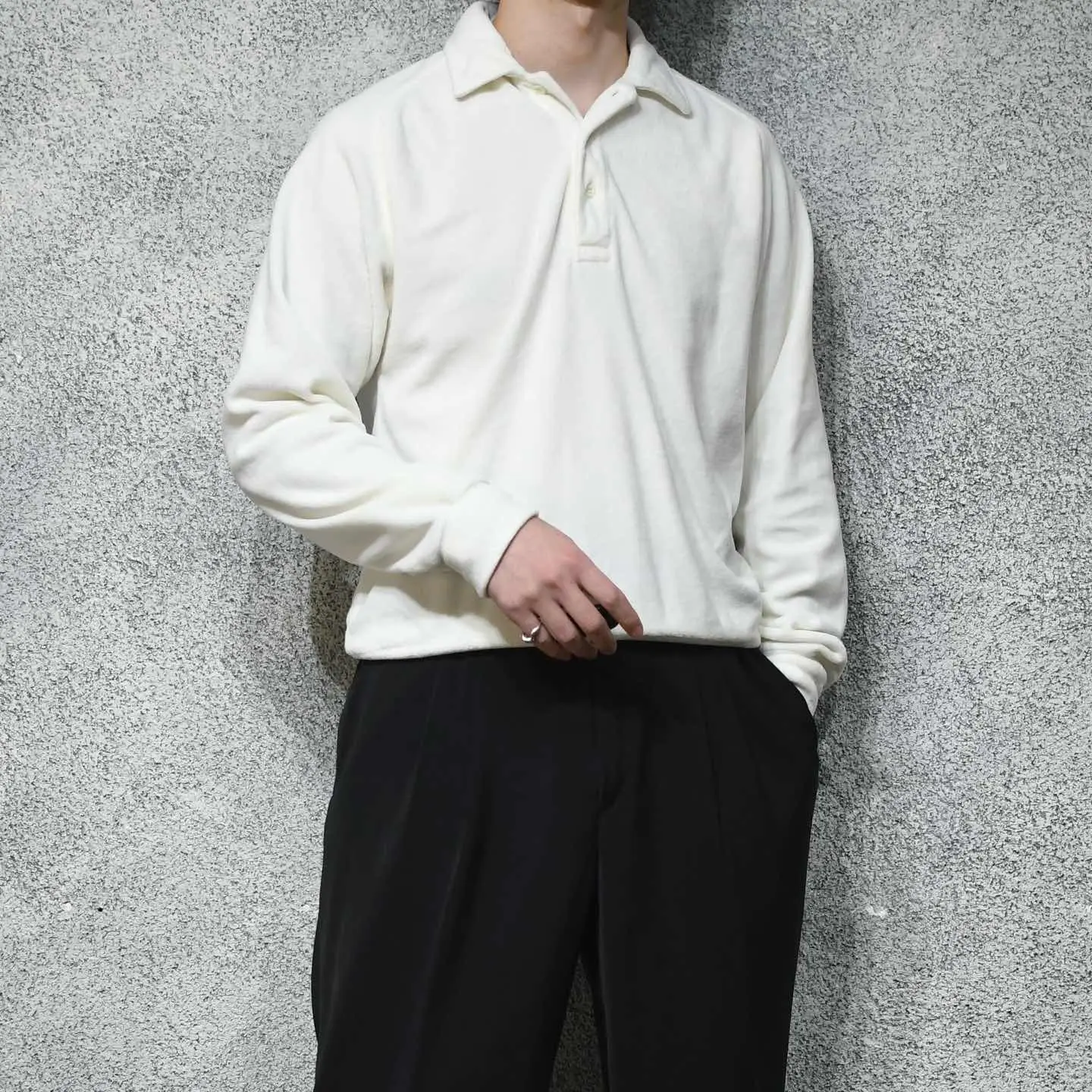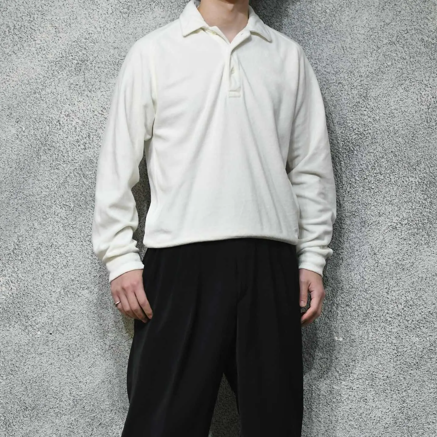 SIZE:M 着丈65cm 身幅58cm 裄丈95cm fabric/cotton・poly 着用画像 177cm/64kg ふわっとしたベロア特有の肌触りの良さと、 ポロシャツでありながら裾に付くリブで、 腰元に溜まる丸みのあるシルエット。 個人的にもポロシャツの中で最も好きな作り、、 畏まった印象のあるポロシャツというカテゴリーに、 ベロア生地を落とし込むことで遊び心のある1着へ 昇華したアイテム。 インナーとしても扱いやすいサイズ感なのも◎ 妖艶さと汎用性。推しです。 ※撮影状況により、実物と多少色が異なる場合が ございます。 ※古着を取り扱っているため、気づかない汚れや ほつれ等がある場合がございます。 予めご了承ください。 ※サイズは着用感で選んでおり、 表記サイズではございません。 表記サイズは説明欄の最初に記載しております。 古着 オーバーサイズ old vintage ヴィンテージ used 80's 90's アメリカ古着 ユーロ古着 POLO RALPH LAUREN Eddie Bauer OLD GAP LANDS' END ランズエンド LLBean エルエルビーン オールドギャップ エディーバウアー ラルフローレン ブルックスブラザーズ Brooks Brothers などがお好きな方 #vintage #オーバーサイズ #old #used #90s #80s #古着 #ヴィンテージ #アメリカ古着 #ユーロ古着 #LLBean #エルエルビーン #EddieBauer #エディーバウアー #oldgap #オールドギャップ #LANDSEND #ランズエンド #NAUTICA #ノーティカ #ラルフローレン #POLORALPHLAUREN #ブルックスブラザーズ #BrooksBrothers #ポロシャツ #ベロア #プルオーバー