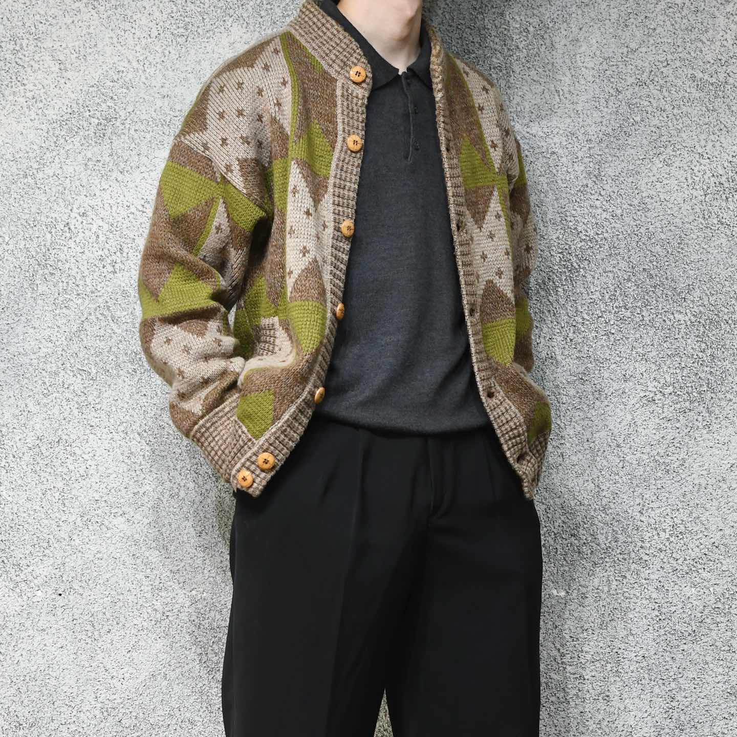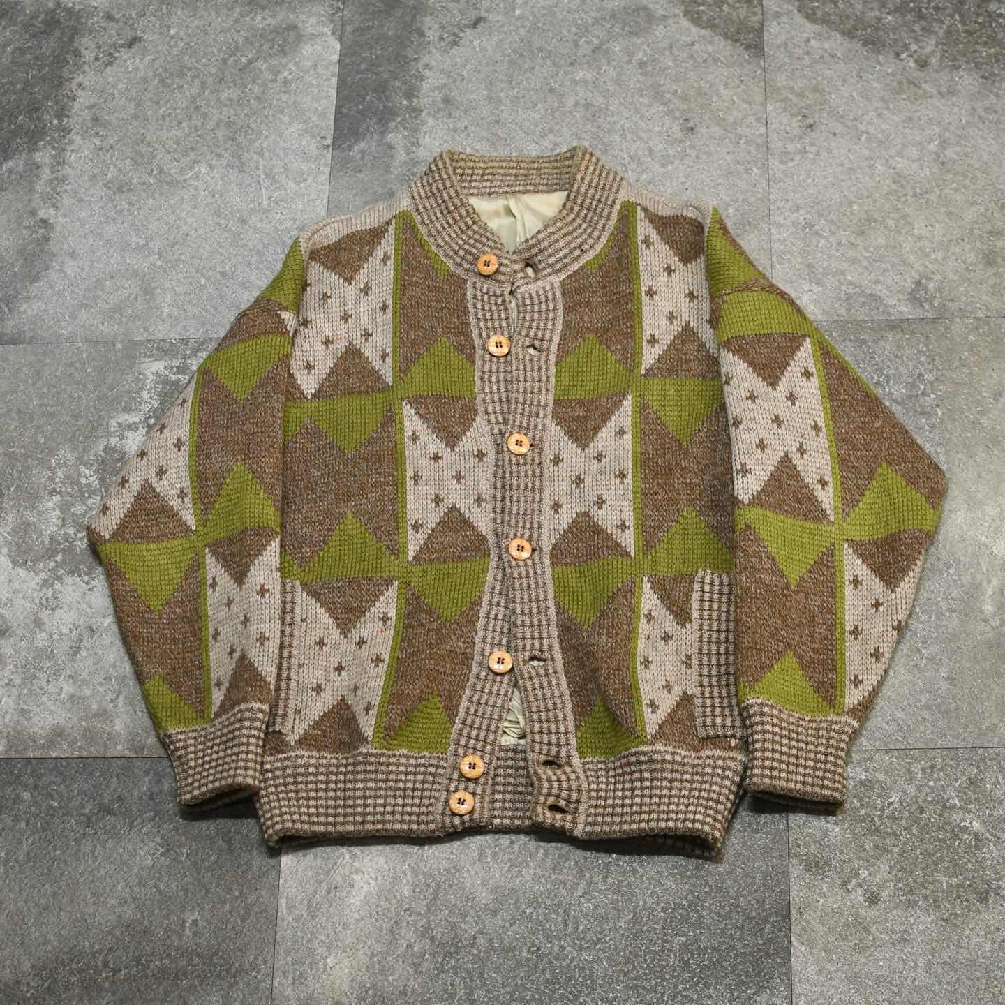 古着 カーディガン ニット セーター グリーン 緑 コットンニット