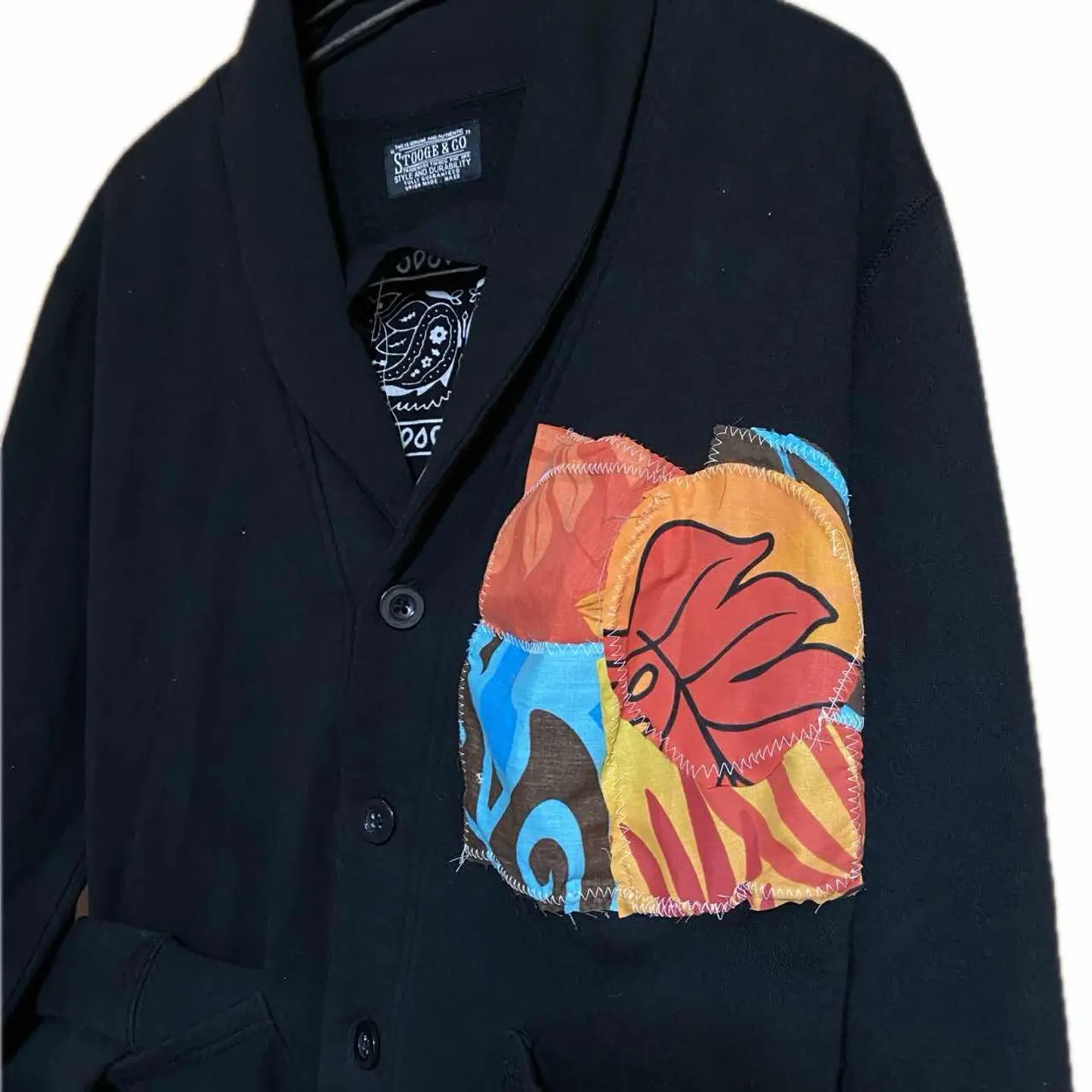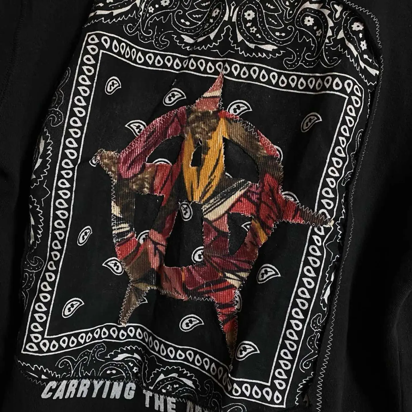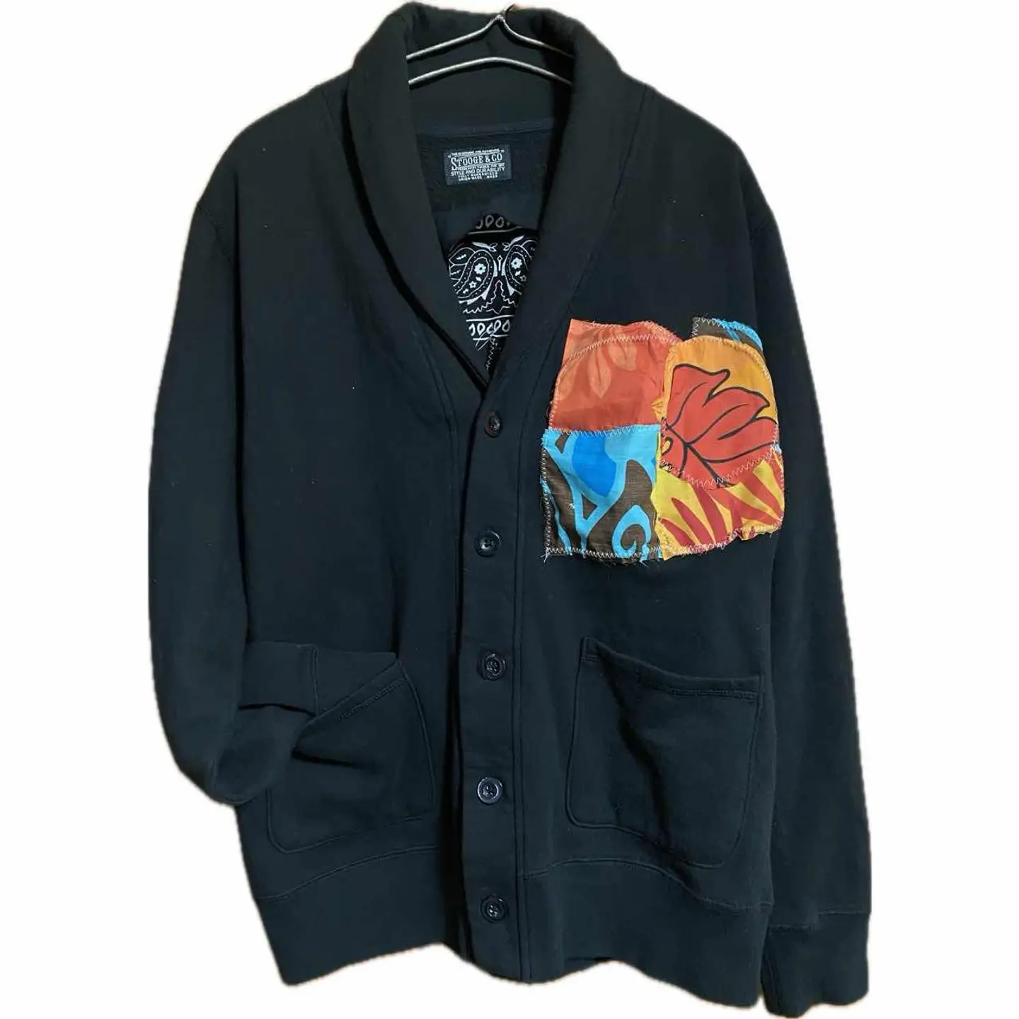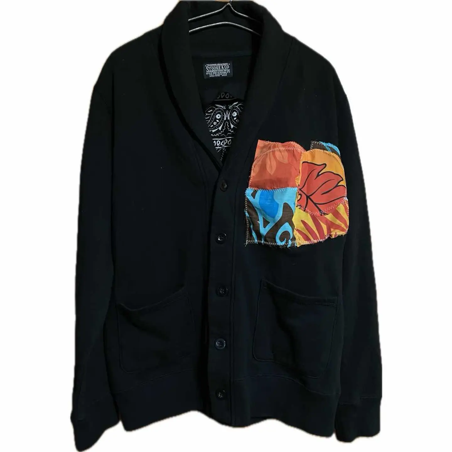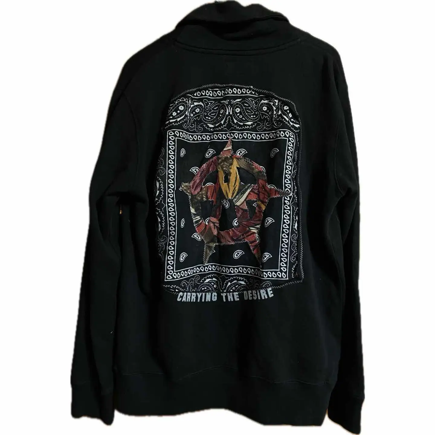 •Brand:remake •data:00s使用 •point: 程よい、防寒性をやぼったくなく決めれるのが魅力さらに上からジャケットを羽織ってもショール破壊力があっておしゃれに決まります アイスタイルレベル 普通に個性を継ぎ足すことにより、表現力とおしゃれ感をだすリメイクです。 バックにバンダナを縫い付け、さらにアナーキー反骨精神の象徴マークをアフリカンバティックを使い作り、縫い付け フロントにハートショックアートしました。 コーディネートを参考にしていただければ良いのですが、デニムパンツに白Tそれにさらっと羽織るだけでバックが確実におしゃれさを見せつけれます。さらにフロントを見せたい時などはデニムシャツをインナーに仕込むとかっこいいと思います。 ▷color◁ ブラック ※ブラウザで異なる場合ありますがかなり実物には、近づけてます、 ▷size◁ 平置き片面採寸【㎝表記】 表記size 着丈/66 身幅/54 肩幅/50 袖丈 /64 DSは袖はハンガー採寸 ※多少の誤差は理解下さい 170/Mジャスト体型の私が着て、✔️参考に ジャスト オーバーサイズ✔︎ ビックサイズ 【素材】 ヘビー裏起毛スウェット 【状態】 よい、 検品、洗濯、検品で、3回チェックして発送しますので、ご安心して、お買い求め下さい!! #アンチスタイン #リメイク #古着 #アナーキー